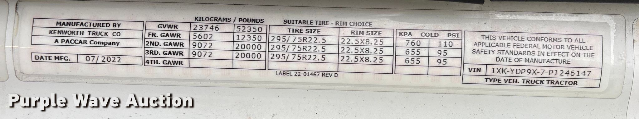 - VIN: 1XKYDP9X7PJ246147
