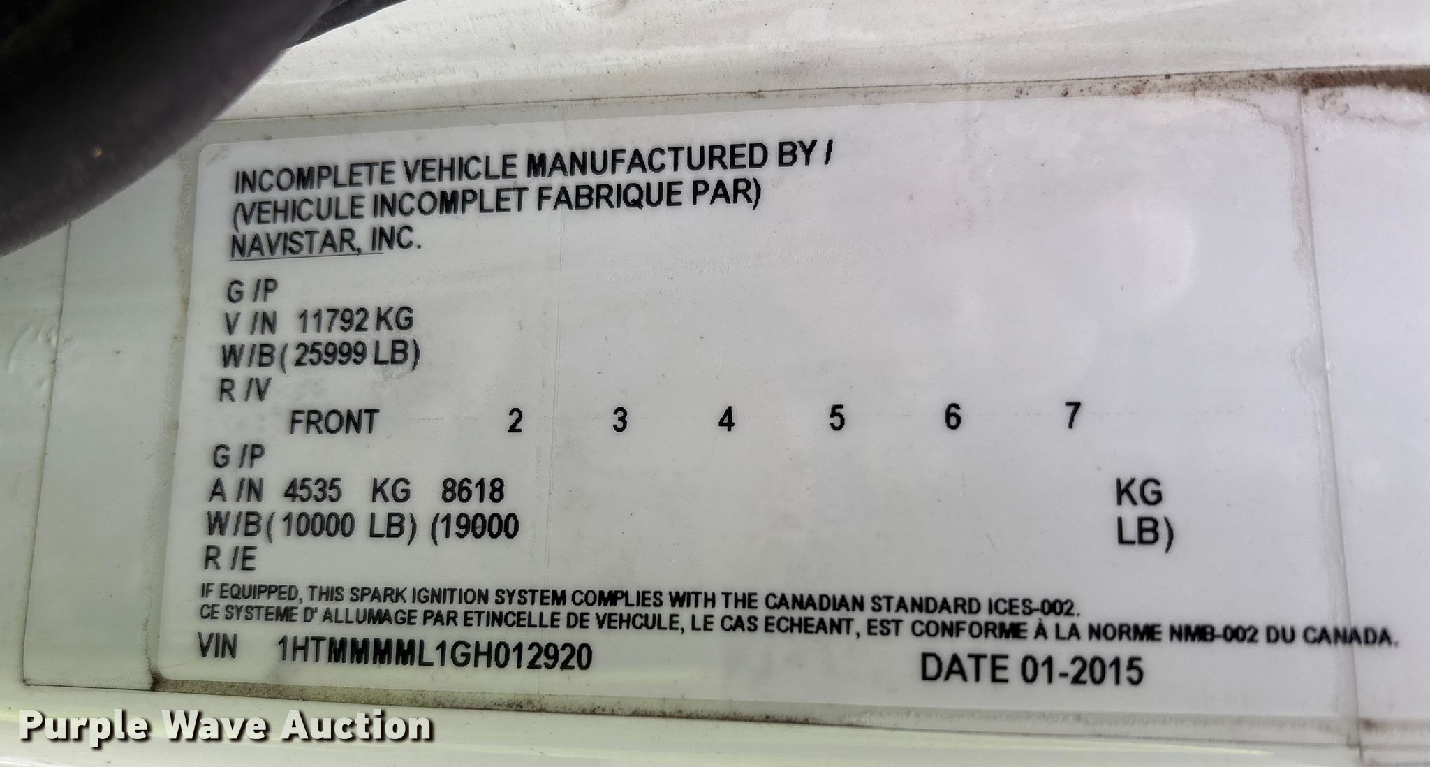 Purple Wave is selling a used Box Truck in Michigan. This item is a 2016 International 4300 box truck with the following: Miles: Unknown, VIN: 1HTMMMML1GH012920, Unit #: 96167795