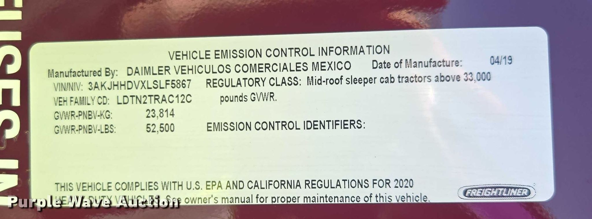 Take a look at this used 2020 Freightliner Cascadia semi truck being sold on March 19th, 2026 in the Thursday March 19 Truck and Trailer Auction made by Freightliner. Take a look at all of the item information below or take a look at similar auctions for Trucks.