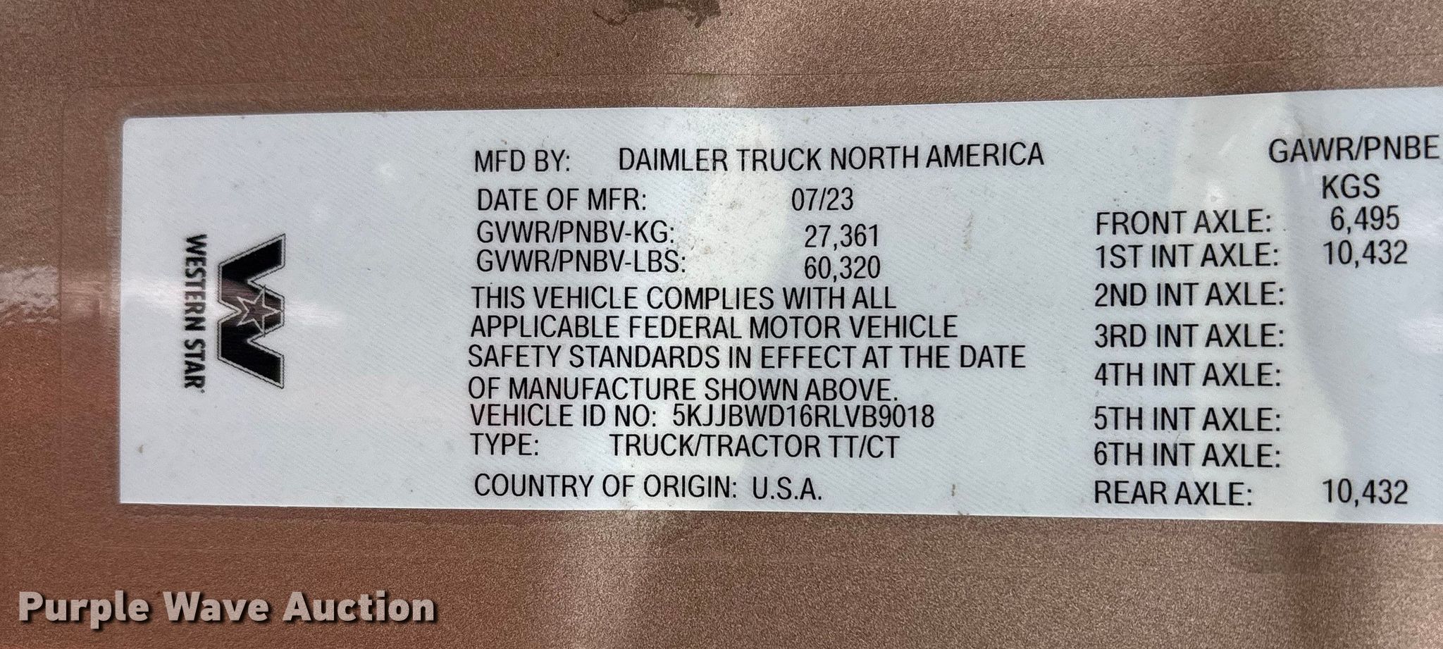 Purple Wave is selling a used Truck Tractor in Massachusetts. This item is a 2024 Western Star 49X semi truck with the following: Miles: 169,471 on odometer, VIN: 5KJJBWD16RLVB9018, Unit #: 73582535