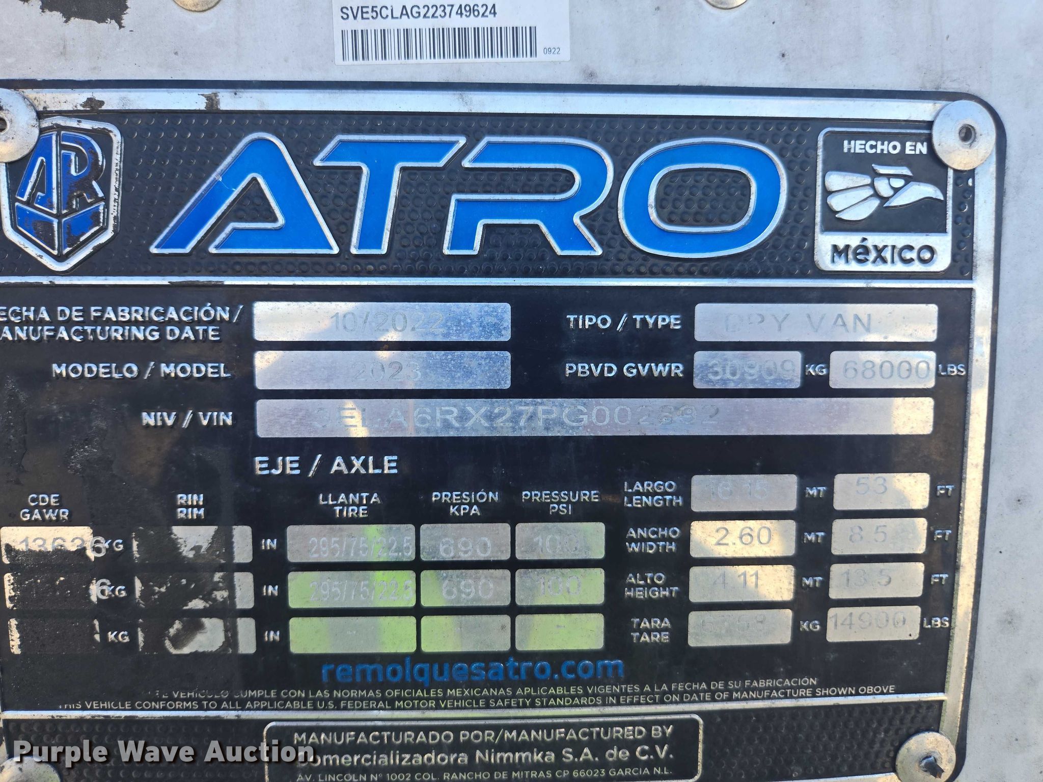 Take a look at this used 2023 Atro dry van trailer being sold on March 19th, 2026 in the Thursday March 19 Truck and Trailer Auction made by Atro. Take a look at all of the item information below or take a look at similar auctions for Trailers.