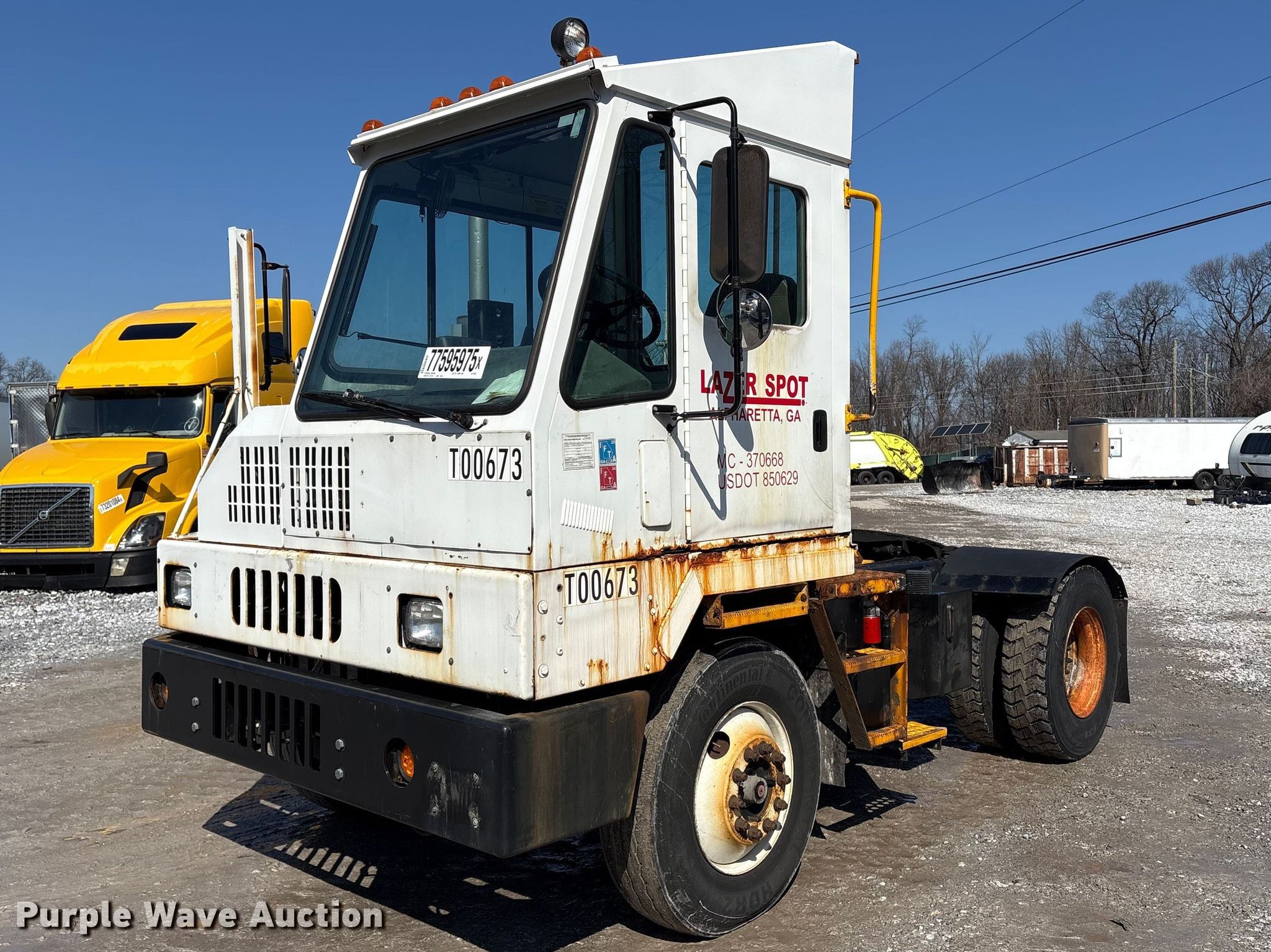 Purple Wave is selling a used Yard Truck in Pennsylvania. This item is a 2004 Kalmar Ottawa yard truck with the following: Miles: 27,289 on odometer, Hours: 19,452 on meter, VIN: 11VA813E54A000673, Unit #: 77595975
