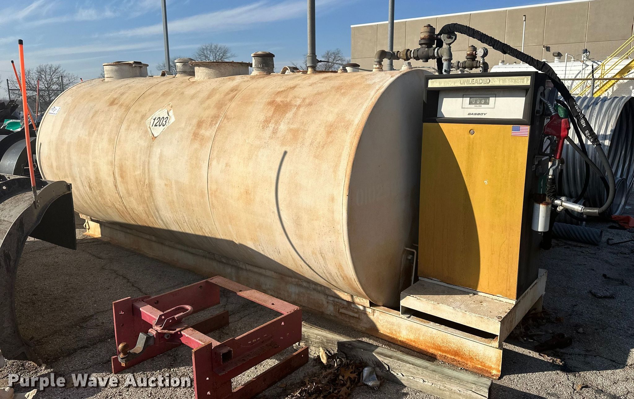 Purple Wave is selling a used Fuel and Lube in Kansas. This item is a Fuel tank with the following: KDOT ID: 0102599, Skid mounted, Gasboy 9152A L pump, Serial: 483646, Tank dimensions, Diameter: 66", Length: 13'3", Capacity: 2,000 gallons, Overall length: 16', Previously held unleaded fuel