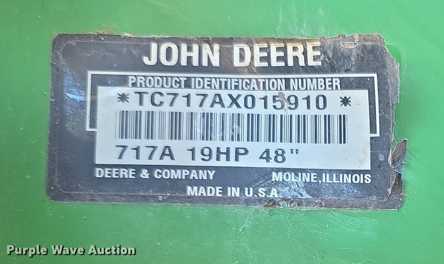 Purple Wave is selling a used Lawn Mower in Kansas. This item is a 2005 John Deere Z-Trak 717A ZTR lawn mower with the following: Hours: 753 on meter, Cutting width: 48", Serial: TC717AX018910, KDOT ID: 409-1016
