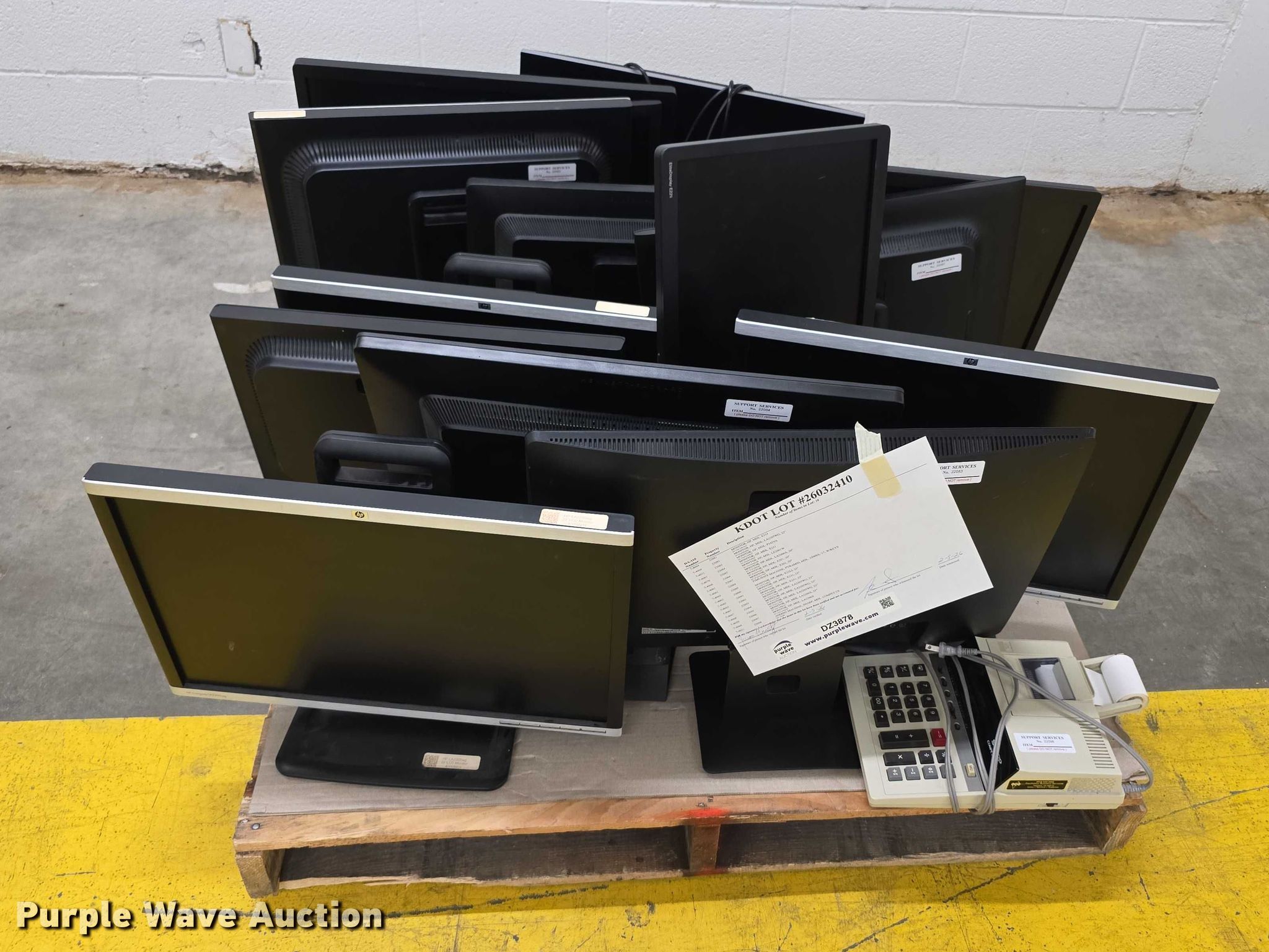 Purple Wave is selling a used Electronics in Kansas. This item is a Electronics with the following: (16) monitors, Adding machine, Time/date machine, KDOT ID: 26032410