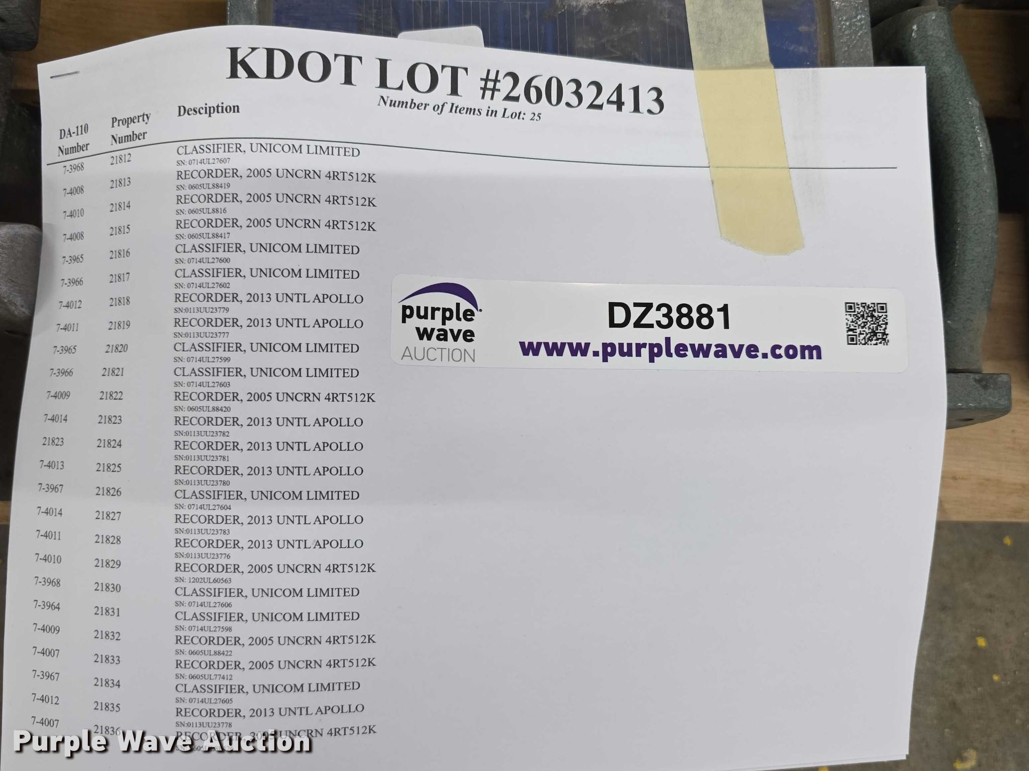 Purple Wave is selling a used Electronics in Kansas. This item is a Electronics with the following: (9) Unicom Limited classifiers, (16) recorders, KDOT ID: 26032413