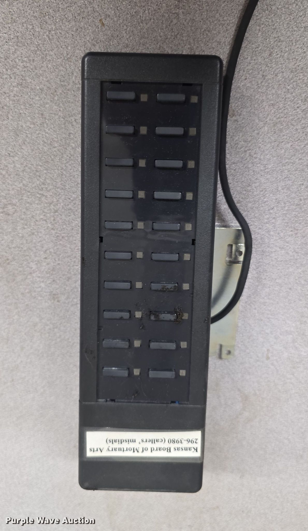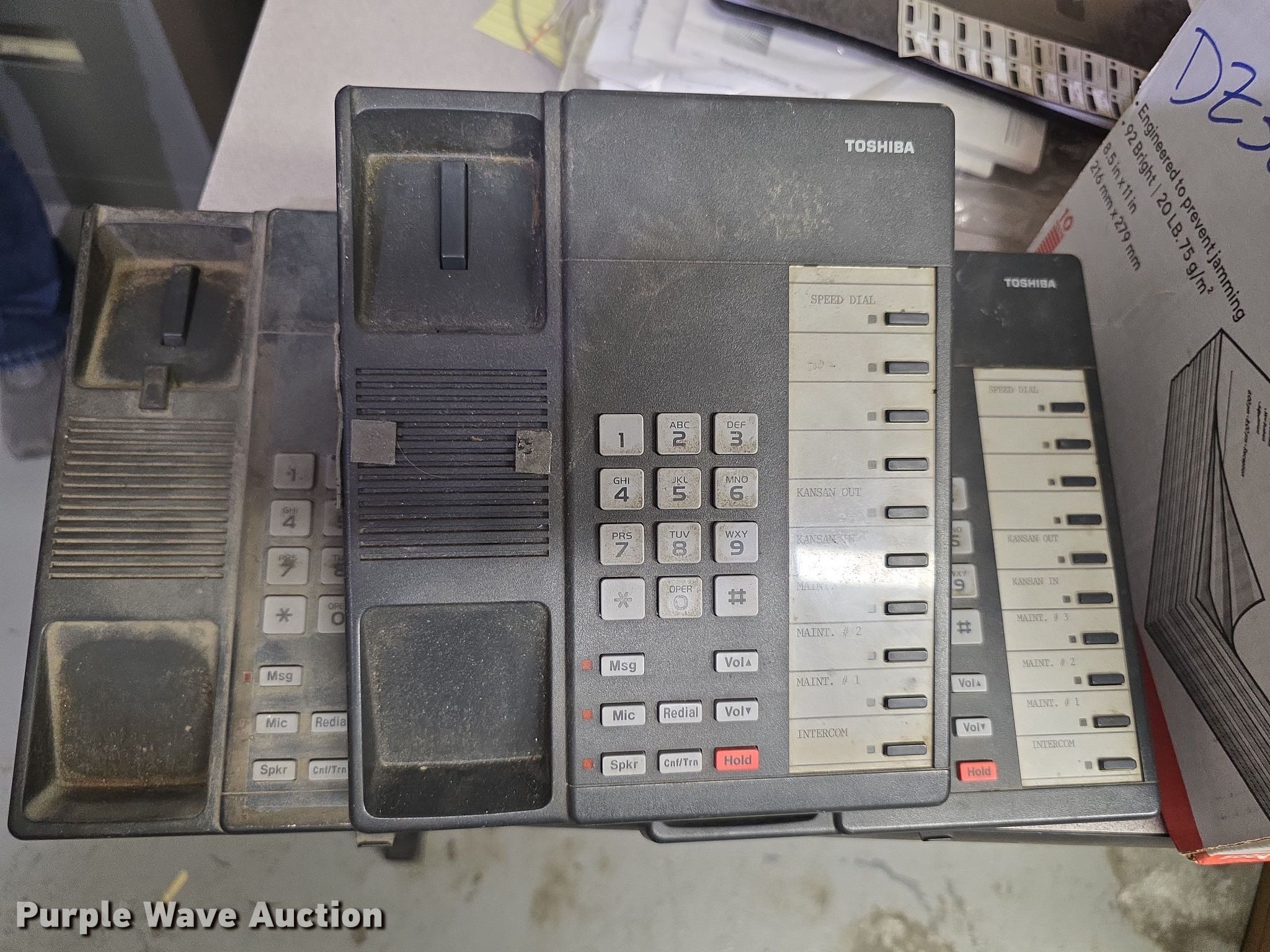 Purple Wave is selling a used Electronics in Kansas. This item is a Telecom equipment with the following: Phones, Cordless phones, Side cars, Mother board, Answering machine, KDOT ID: 261020, 261019, 261012, 261010, 261014, 261009, 261011, 261021, 2601013, 261017, 261007, 261008, 261018, 261015, 261016