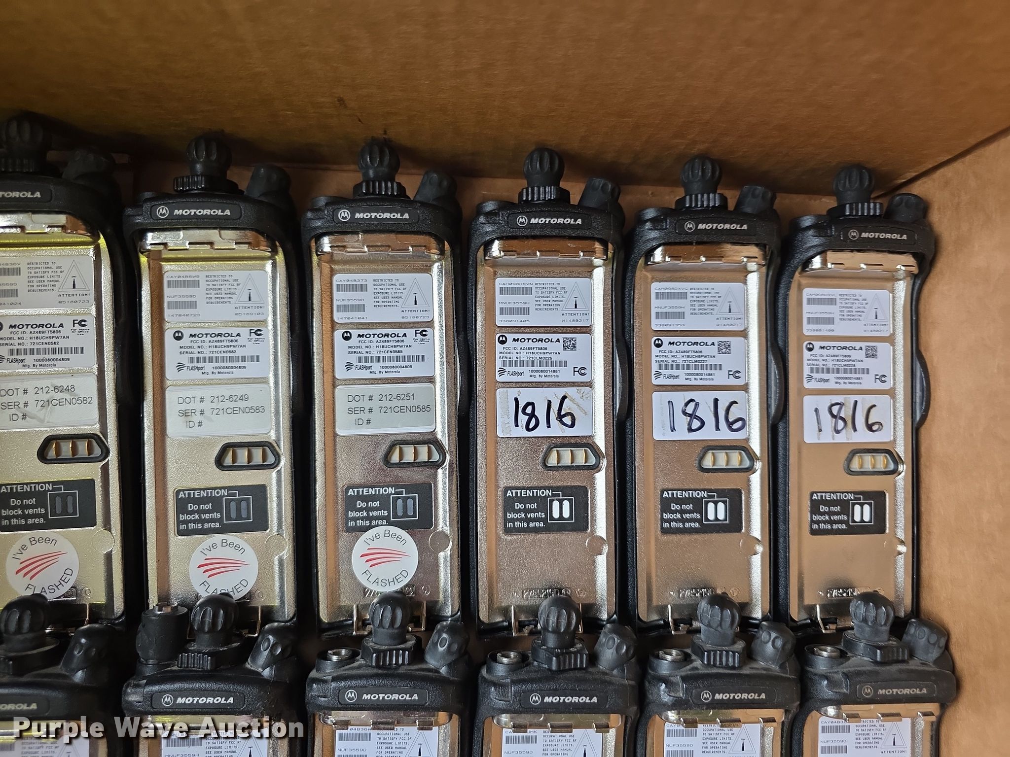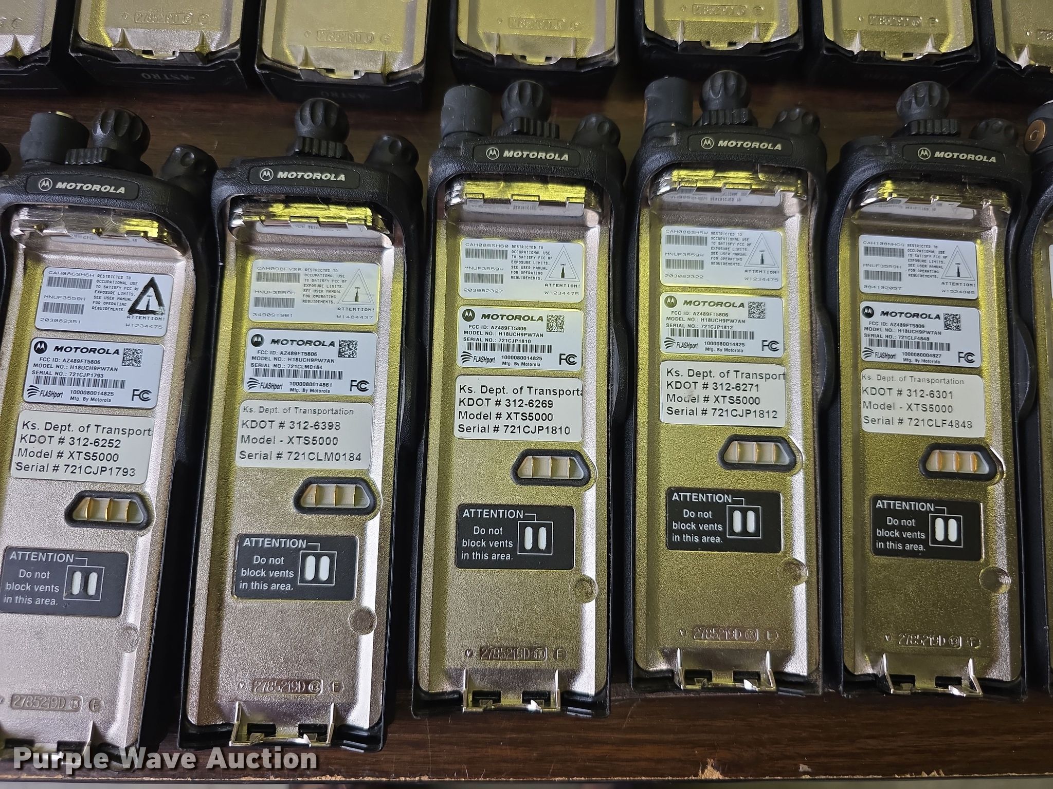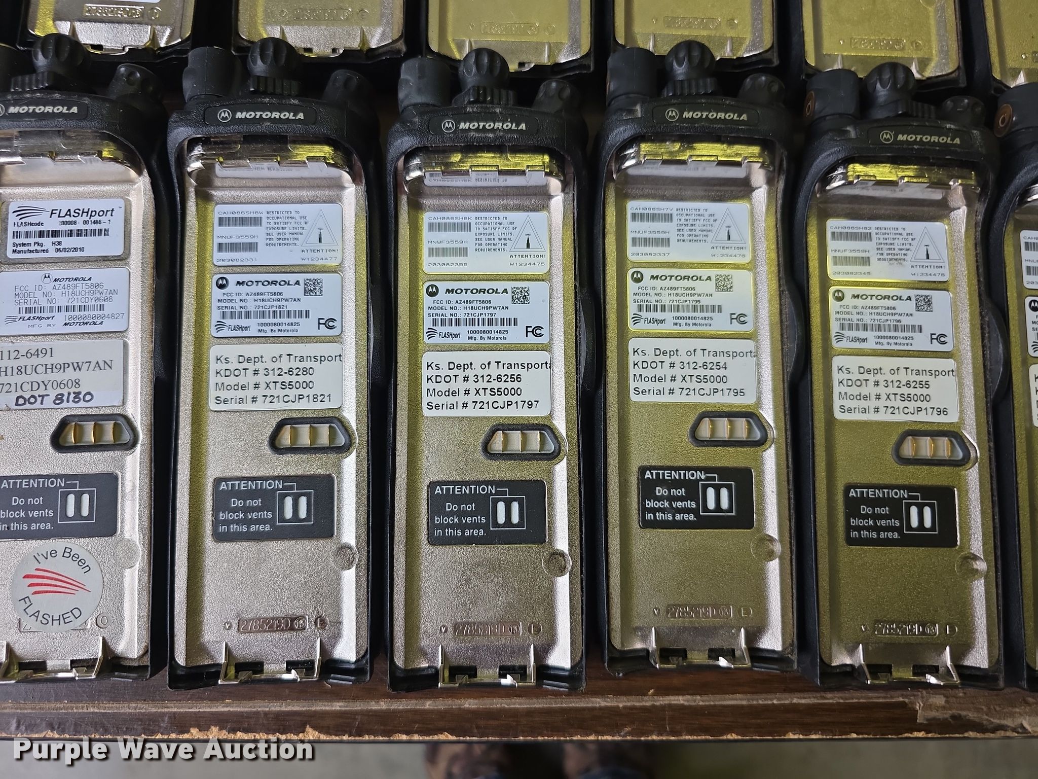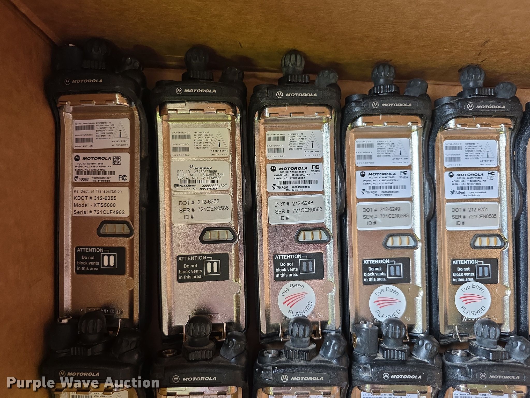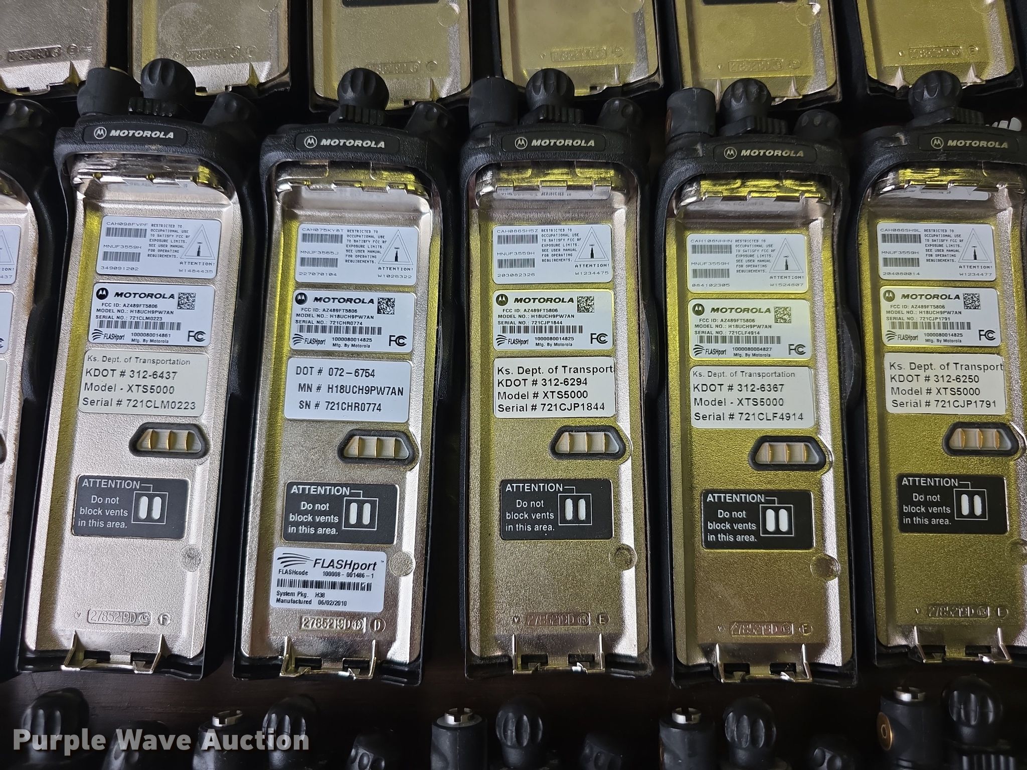 Purple Wave is selling a used Electronics in Kansas. This item is a Approximately 105 Motorola XTS5000 radios with the following: KDOT ID: 1816, 0726754, 1126491, 1126606, 1126607, 1126608, 1126619, 1126620, 1126621, 2126245, 2126246, 2126247, 2126248, 2126249, 2126251, 2126252, 2126253, 2126254, 2126387, 2126415, 3126246, 3126249, 3126250, 3126251, 3126252, 3126254, 3126255, 3126256, 3126257, 3126258, 3126259, 3126260, 3126261, 3126263, 3126264, 3126265, 3126266, 3126267, 3126268, 3126269, 3126270, 3126271, 3126273, 3126279, 3126280, 3126281, 3126285, 3126286, 3126288, 3126290, 3126291, 3126294, 3126295, 3126296, 3126297, 3126298, 3126301, 3126302, 3126305, 3126306, 3126307, 3126314, 3126316, 3126317, 3126319, 3126320, 3126321, 3126322, 3126323, 3126324, 3126325, 3126336, 3126340, 3126352, 3126354, 3126355, 3126356, 3126357, 3126358, 3126361, 3126364, 3126366, 3126367, 3126389, 3126392, 3126393, 3126394, 3126398, 3126406, 3126408, 3126409, 3126410, 3126411, 3126414, 3126415, 3126416, 3126418, 3126427, 3126432, 3126434, 3126436, 3126437, 3126248