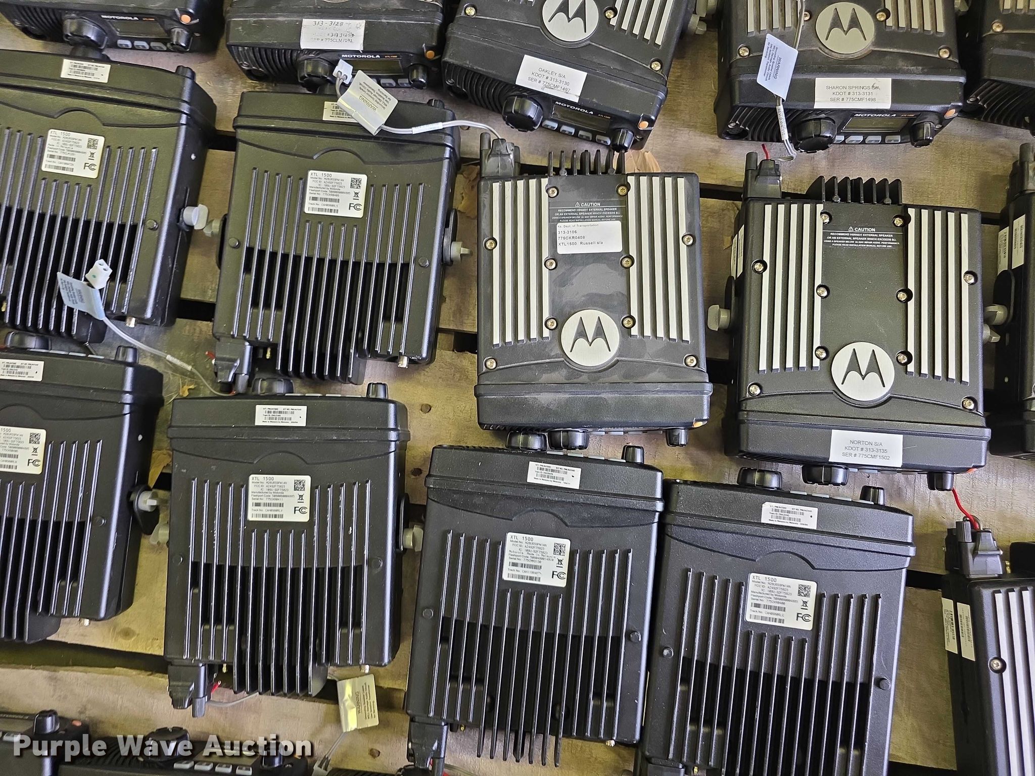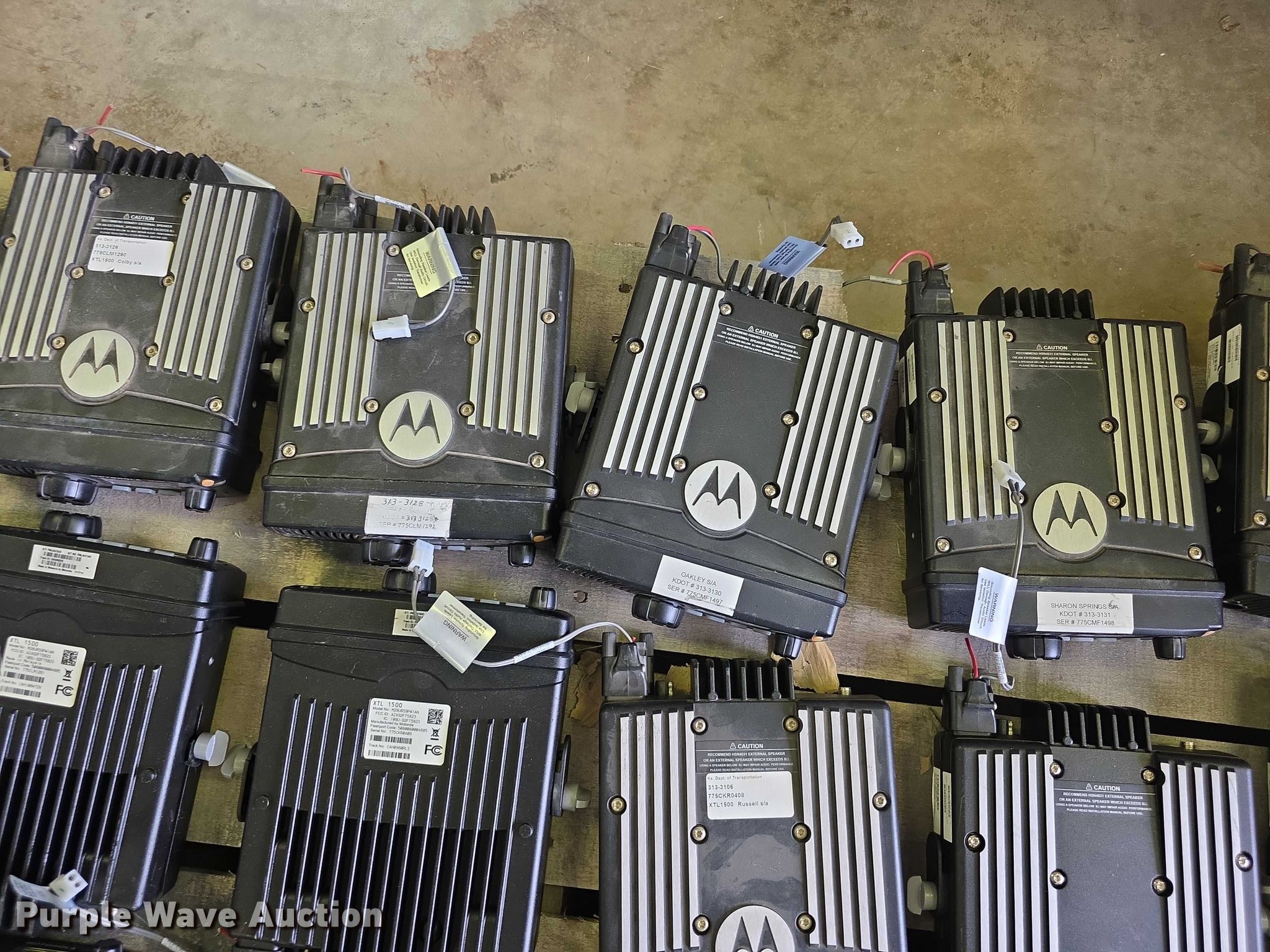Purple Wave is selling a used Electronics in Kansas. This item is a (47) Motorola XTL1500 radios with the following: KDOT ID: 2133062, 2133063, 2133064, 2133065, 2133066, 2133069, 2133067, 2133068, 2133070, 2133071, 2133072, 2133073, 2133075, 2133136, 2133137, 2133138, 2133139, 2133140, 2133141, 2133142, 2133143, 2133144, 2133145, 2133146, 2133147, 2133149, 3133098, 3133103, 3133104, 3133105, 3133106, 3133107, 3133108, 3133109, 3133124, 3133125, 3133126, 3133127, 3133128, 3133130, 3133131, 3133133, 3133134, 3133135, 3133136, 3133154, 3133155