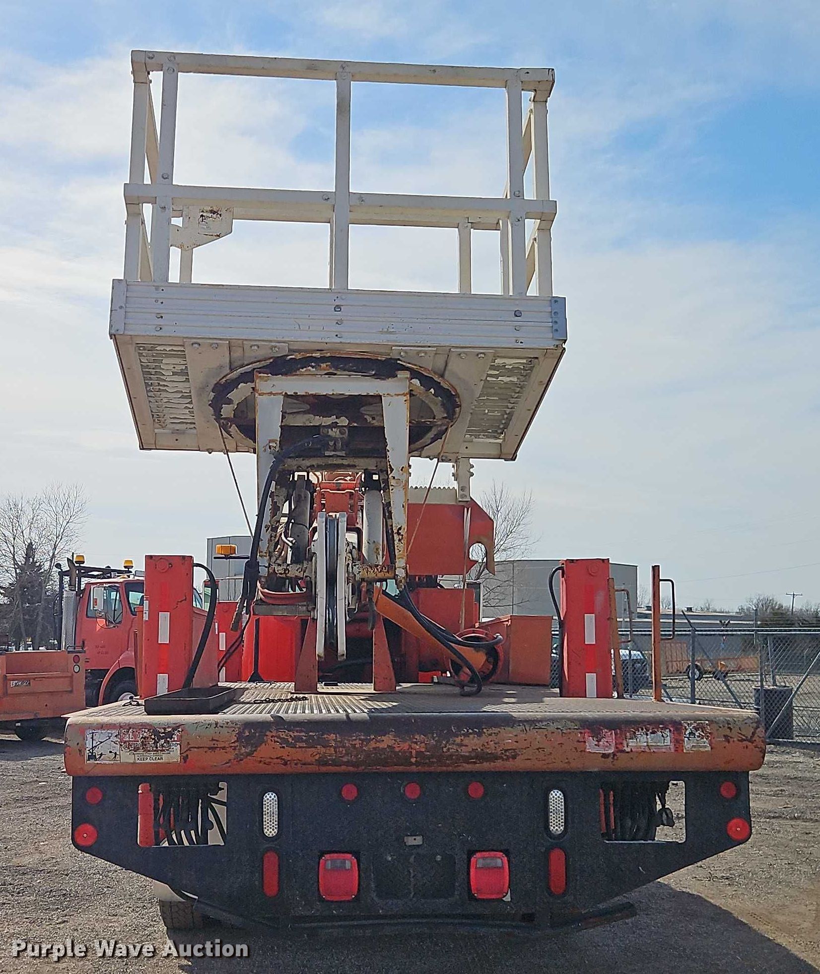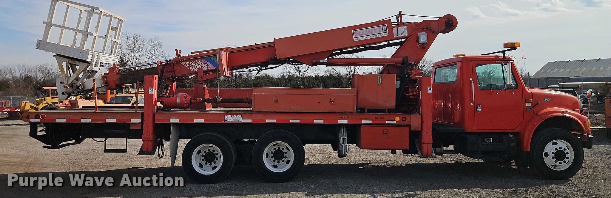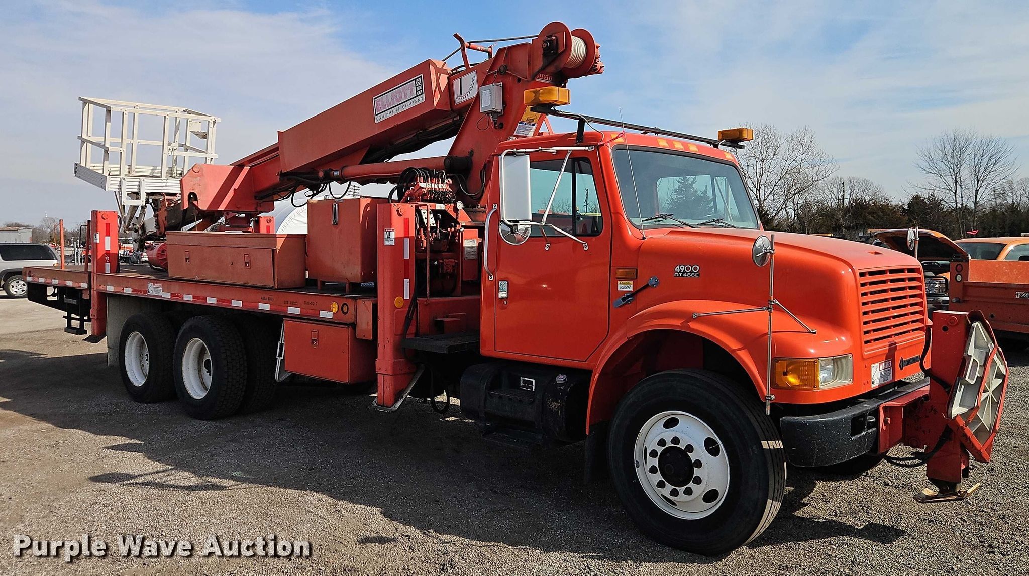1998 International F4900 digger derrick truck. Miles: 65,681 on odometer, Hours: 242 on meter, Hours: Actual unknown, VIN: 1HTSHAAR9WH548693, KDOT ID: 506-5017. Engine International International DT466E, Displacement: 7.64L, Cylinders: 6, Fuel type: Diesel. Transmission Allison, Automatic. Chassis Axles: Tandem, Suspension: Spring over walking beam, Brakes: Air, PTO, Wet kit, GVWR: NaN lbs, Wheelbase: 236". Interior Heat, Cruise control, Auxiliary controls. Features Bed Length: 25', Width: 100", Height: 55", Boom 1998 Elliott ECI-3-60D-HH, Serial: EH1940, Maximum lift capacity: 600 lbs, Maximum lift height: 60.56', Boom type: Telescopic, Man basket, Boom controls Platform, Remote control, Auger Diameter: 15".. Tires Front: 295/75R22.5, Rear: 275/80R22.5. Notes Dash warning indicator: PDL. Titles will be distributed after confirmation of payment and removal. Kansas title. Title distribution may be delayed up to 30 days from verification of funds. Kansas Department of Transportation - Chanute. Chanute, KS 66720