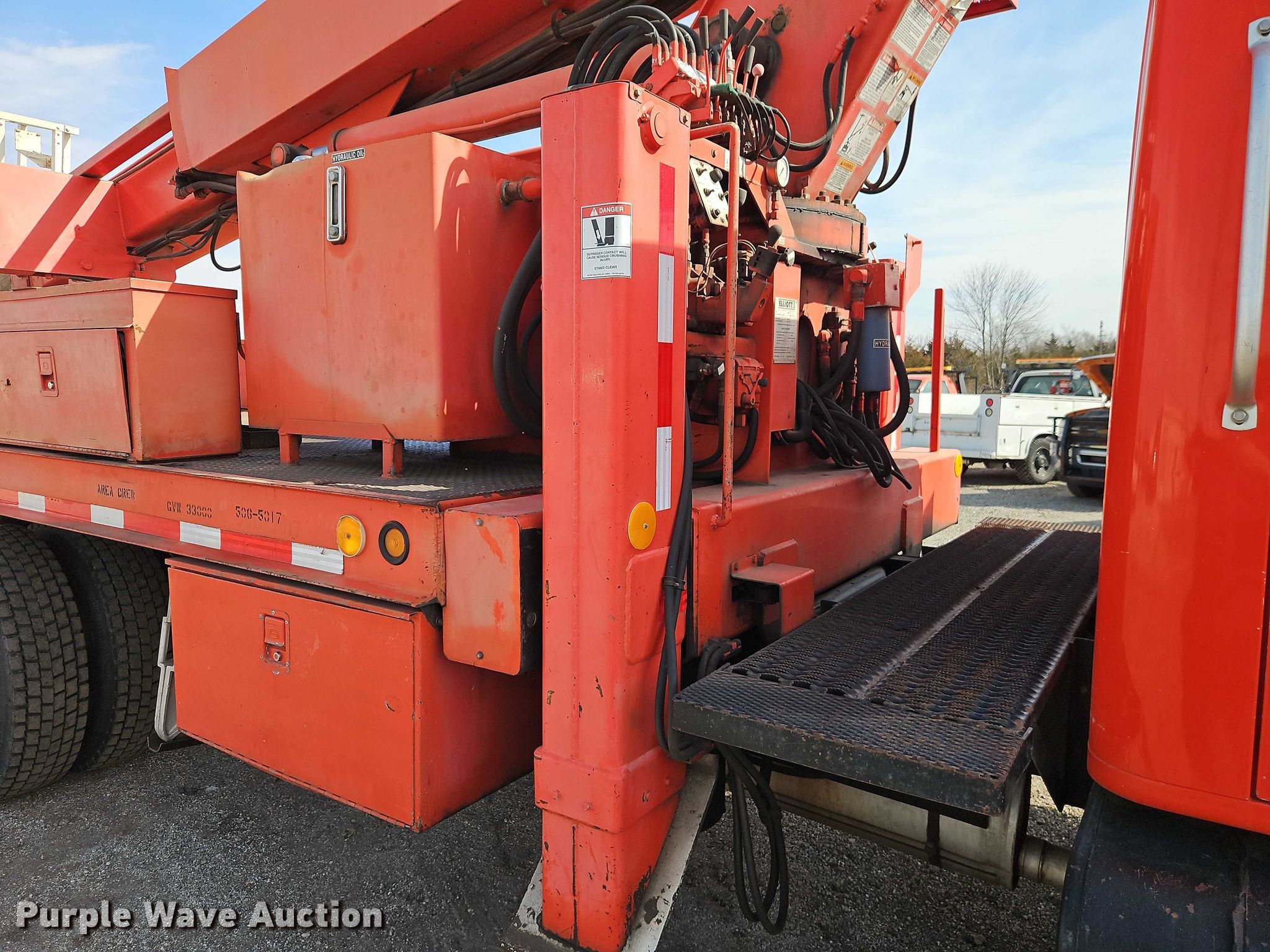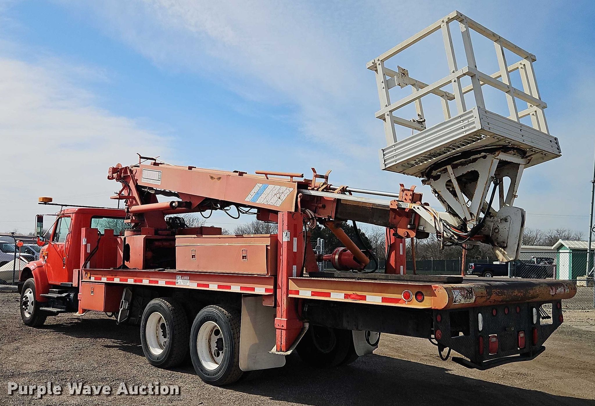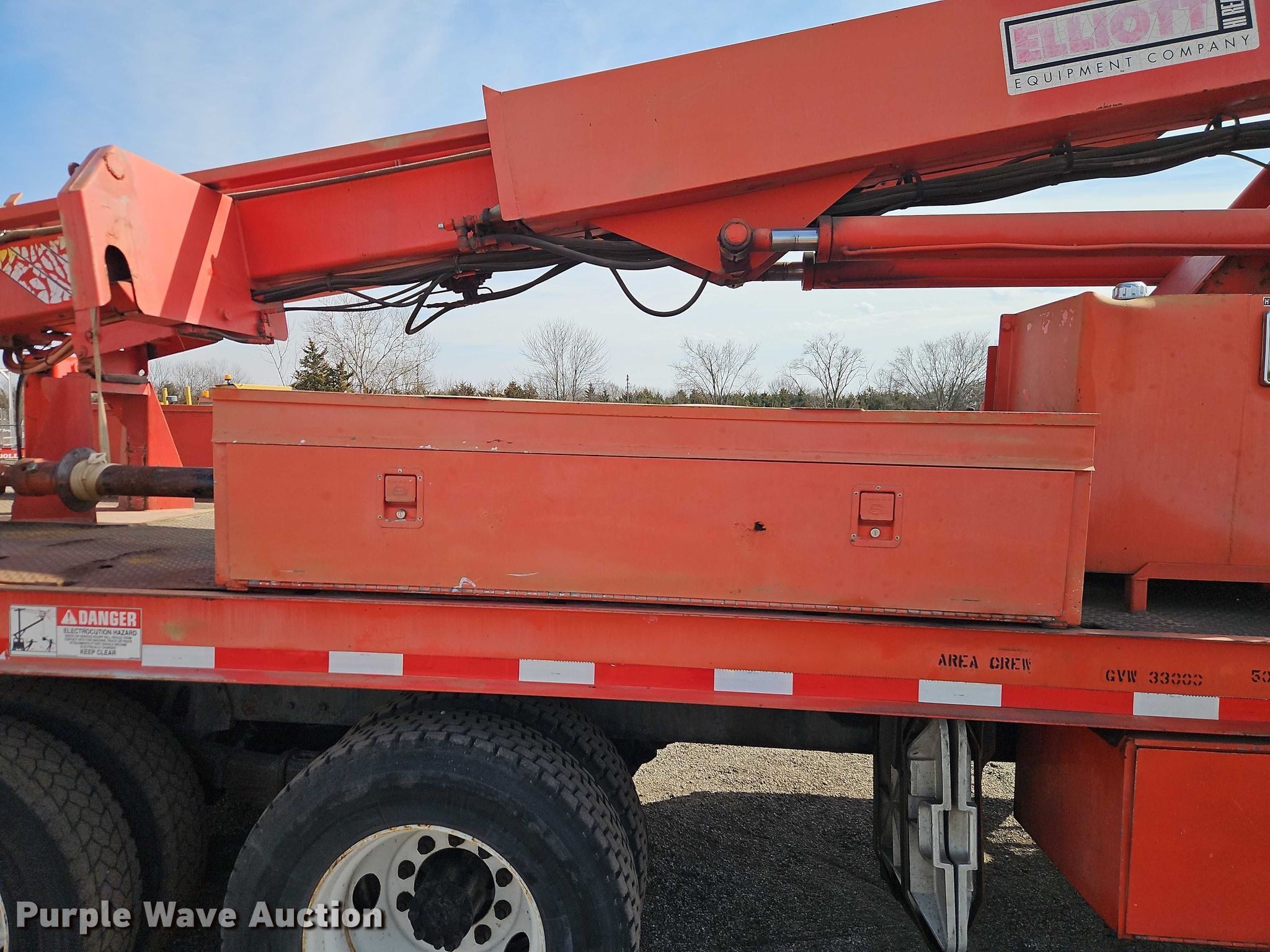 1998 International F4900 digger derrick truck. Miles: 65,681 on odometer, Hours: 242 on meter, Hours: Actual unknown, VIN: 1HTSHAAR9WH548693, KDOT ID: 506-5017. Engine International International DT466E, Displacement: 7.64L, Cylinders: 6, Fuel type: Diesel. Transmission Allison, Automatic. Chassis Axles: Tandem, Suspension: Spring over walking beam, Brakes: Air, PTO, Wet kit, GVWR: NaN lbs, Wheelbase: 236". Interior Heat, Cruise control, Auxiliary controls. Features Bed Length: 25', Width: 100", Height: 55", Boom 1998 Elliott ECI-3-60D-HH, Serial: EH1940, Maximum lift capacity: 600 lbs, Maximum lift height: 60.56', Boom type: Telescopic, Man basket, Boom controls Platform, Remote control, Auger Diameter: 15".. Tires Front: 295/75R22.5, Rear: 275/80R22.5. Notes Dash warning indicator: PDL. Titles will be distributed after confirmation of payment and removal. Kansas title. Title distribution may be delayed up to 30 days from verification of funds. Kansas Department of Transportation - Chanute. Chanute, KS 66720