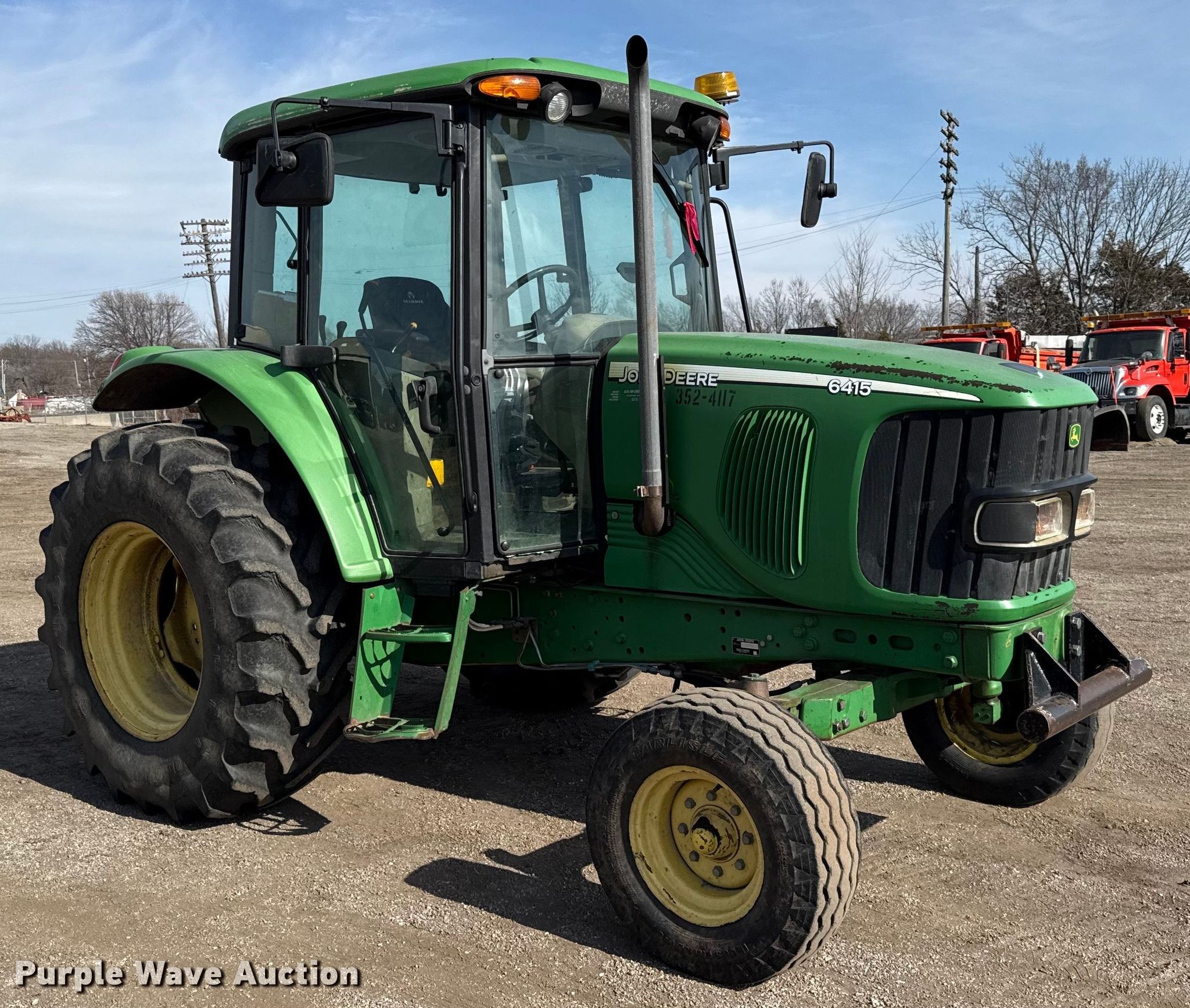 Purple Wave is selling a used Tractor in Kansas. This item is a John Deere 6415 tractor with the following: Hours: 5,602 on meter, Serial: L06415B542159, KDOT ID: 352-4117