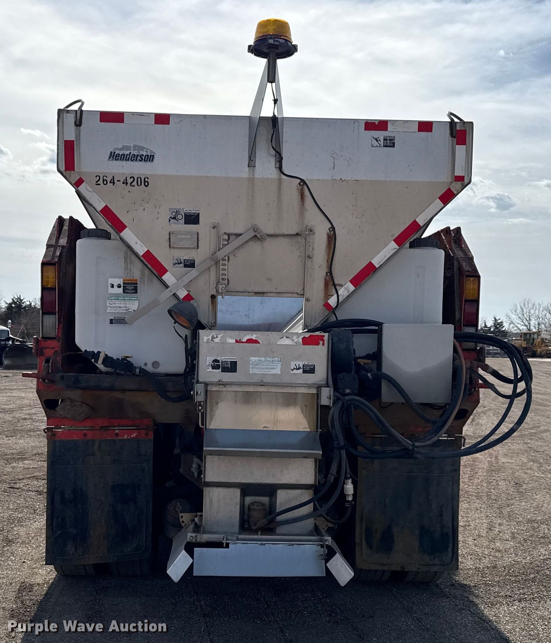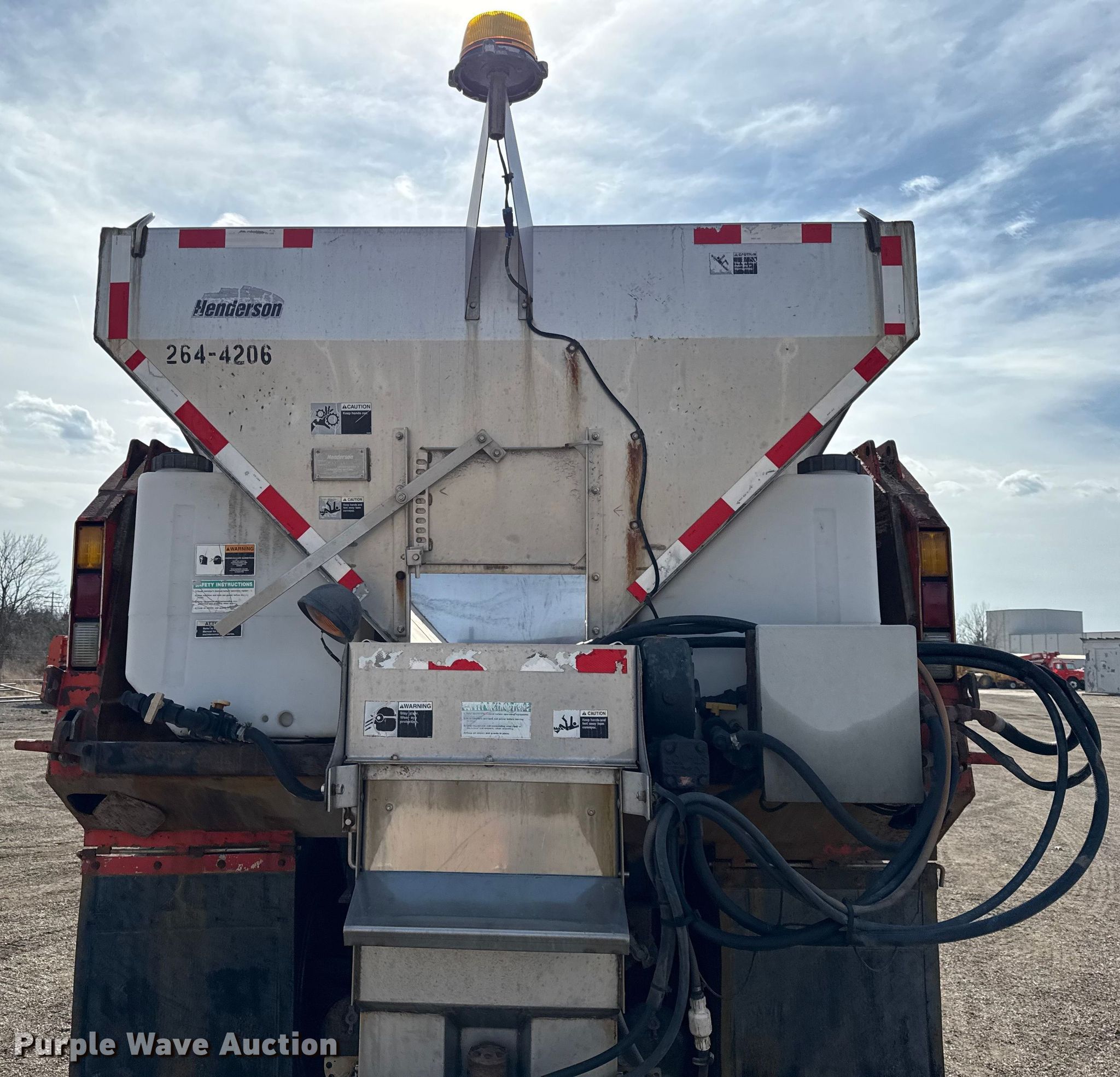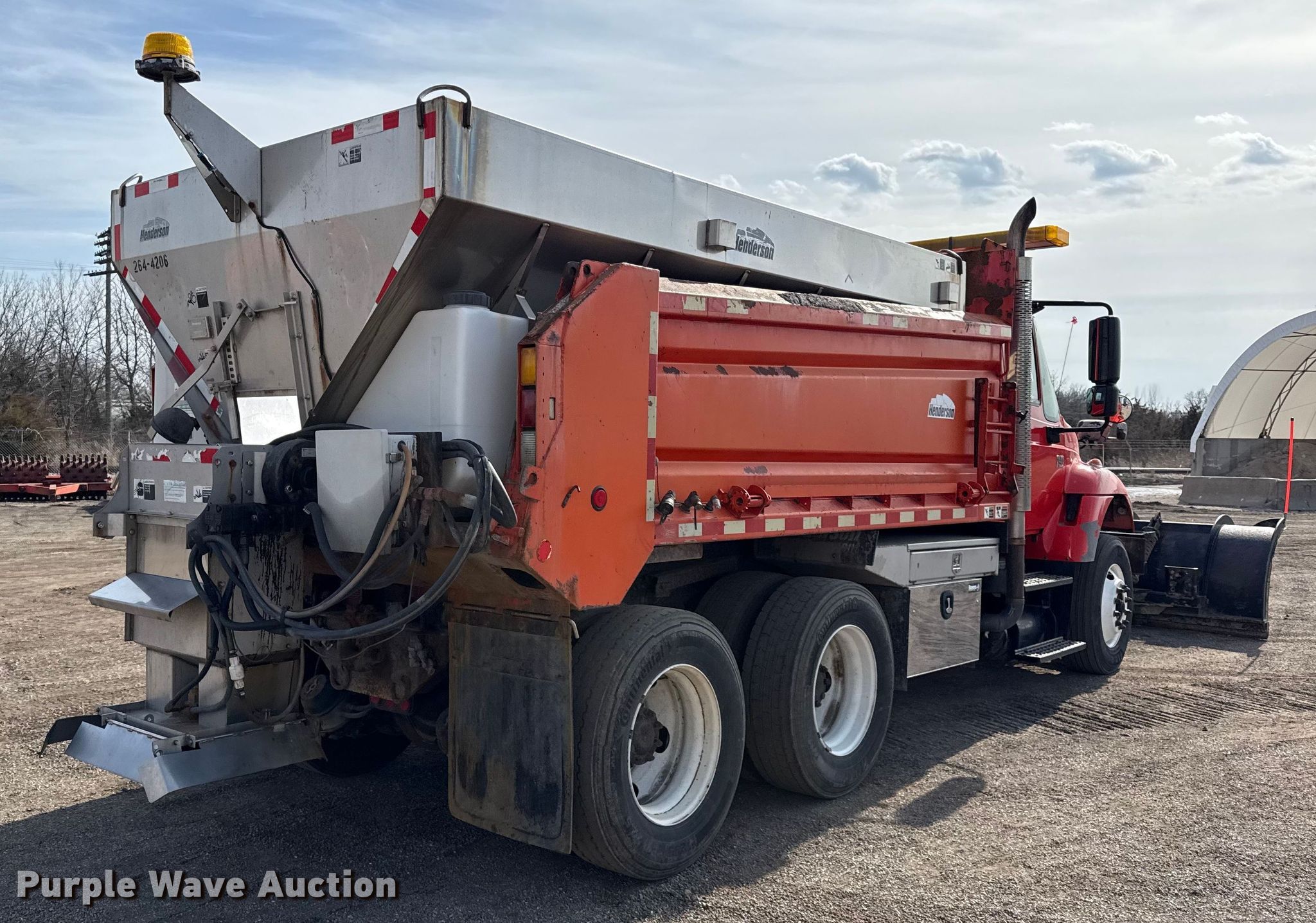 2007 International 7400 dump truck. Miles: 214,755 on odometer, Hours: 11,750 on meter, VIN: 1HTWHAAR37J443286, KDOT ID: 264-4067. Engine International DT466, Displacement: 7.6L, Cylinders: 6, Fuel type: Diesel. Transmission Allison, Automatic. Chassis Axles: Tandem, Differential lock: Inter-axle, Suspension: Spring over walking beam, Brakes: Air, Front mount PTO. Interior AC, Heat, Cruise control. Features Bed Dump bed, Henderson, Length: 13' 6", Width: 96", Side height: 32", Bed type: Steel, Ram: Single, End gate: Air operated, Spreader Henderson, Plow Henderson, Width: 132", Wing plow Henderson, Width: 96". Tires Size: 295/75R22.5. Notes Driver side mirror broken, Rust damage. Titles will be distributed after confirmation of payment and removal. Kansas title. Title distribution may be delayed up to 30 days from verification of funds. Kansas Department of Transportation - Chanute. Chanute, KS 66720