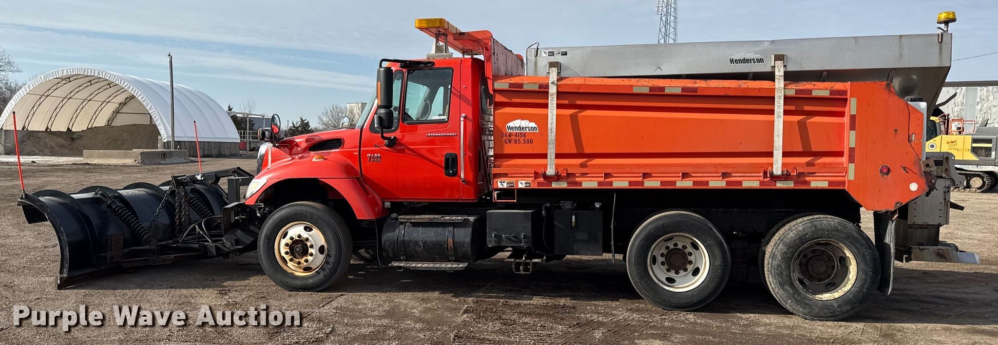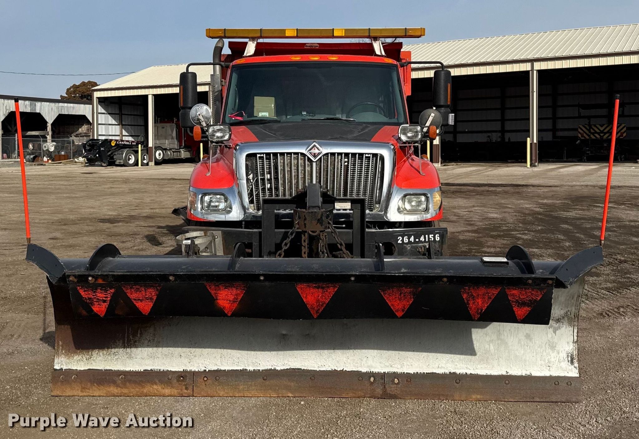 2007 International 7400 dump truck. Miles: 205,249 on odometer, Hours: 12,018 on meter, VIN: 1HTWHAAR17J391589, KDOT ID: 264-4156. Engine International DT466, Displacement: 7.6L, Cylinders: 6, Fuel type: Diesel. Transmission Allison, Automatic. Chassis Axles: Tandem, Differential lock: Inter-axle, Suspension: Spring over walking beam, Brakes: Air, Front mount PTO, GVWR: NaN lbs. Interior AC, Heat, Cruise control. Features Bed Dump bed, Henderson 13.5XKDOT109427, Serial: MK1-1836, Length: 13' 6", Width: 96", Side height: 32", Bed type: Steel, Ram: Single, End gate: Air operated, Spreader Henderson, Plow Henderson, Width: 132", Wing plow Width: 96". Tires Size: 295/75R22.5. Notes Rust damage. Titles will be distributed after confirmation of payment and removal. Kansas title. Title distribution may be delayed up to 30 days from verification of funds. Kansas Department of Transportation - Chanute. Chanute, KS 66720