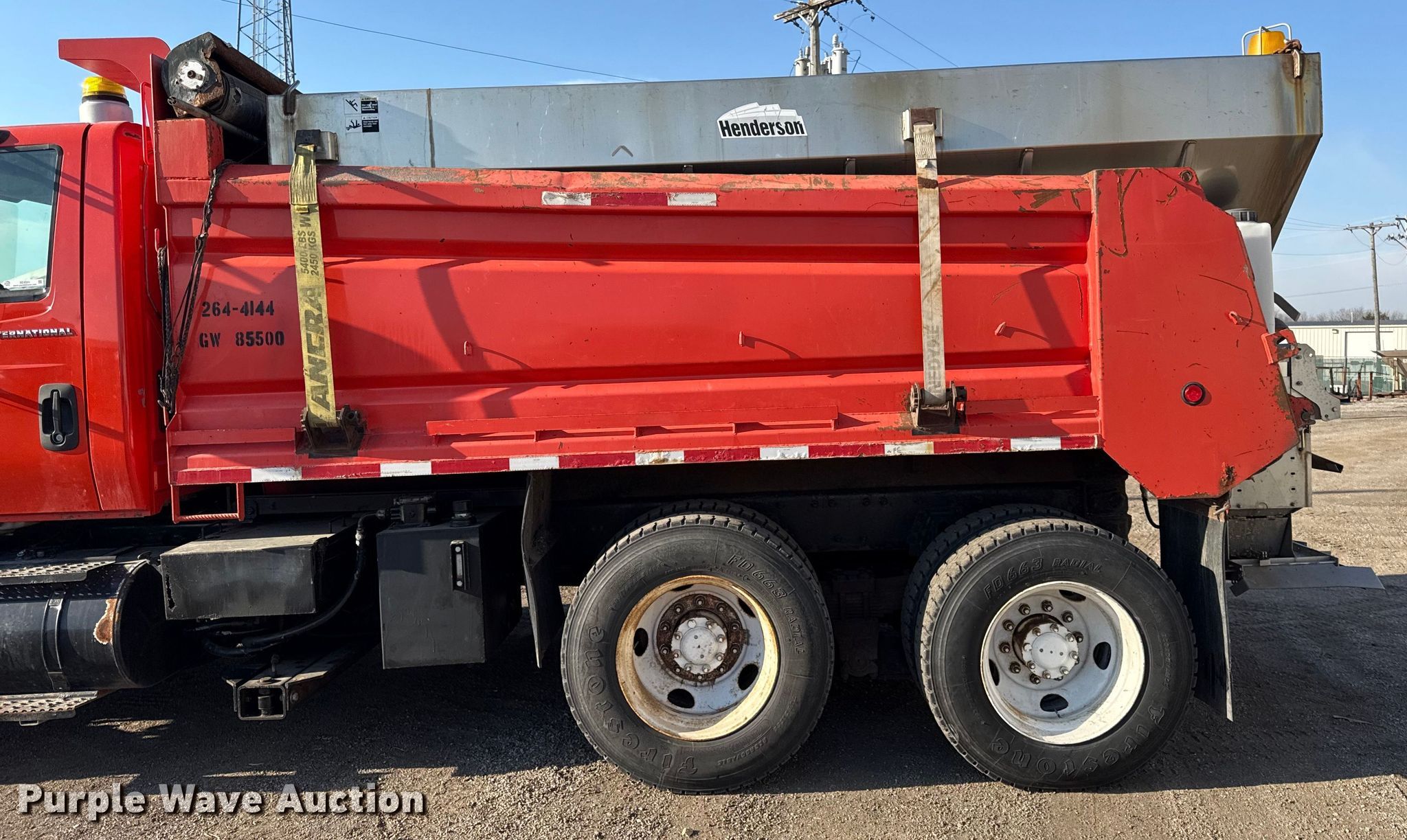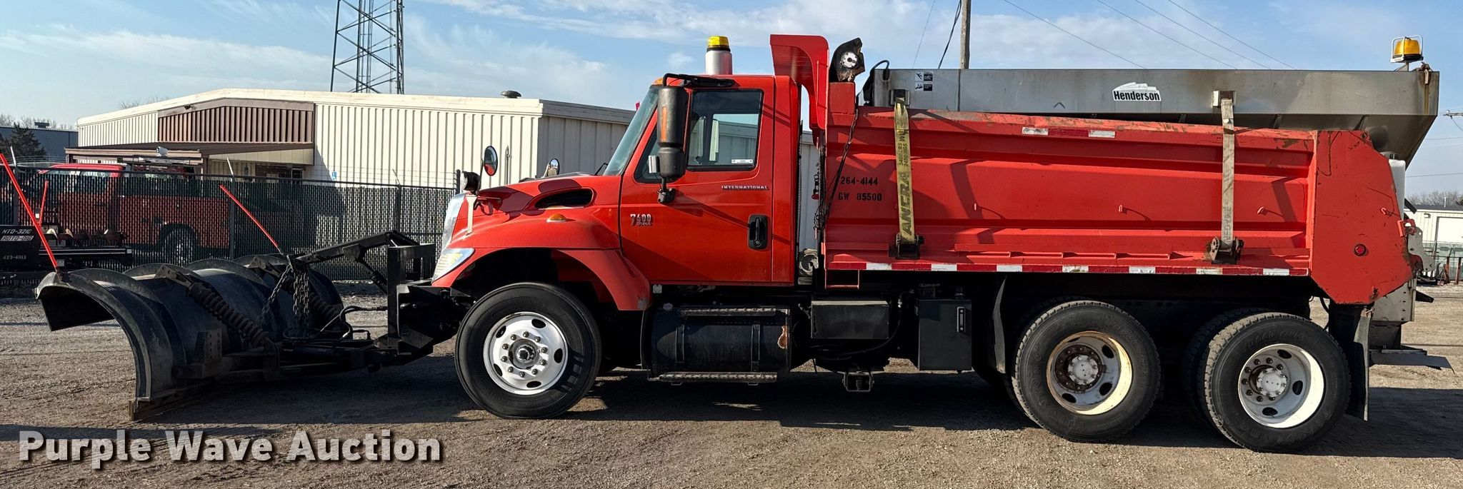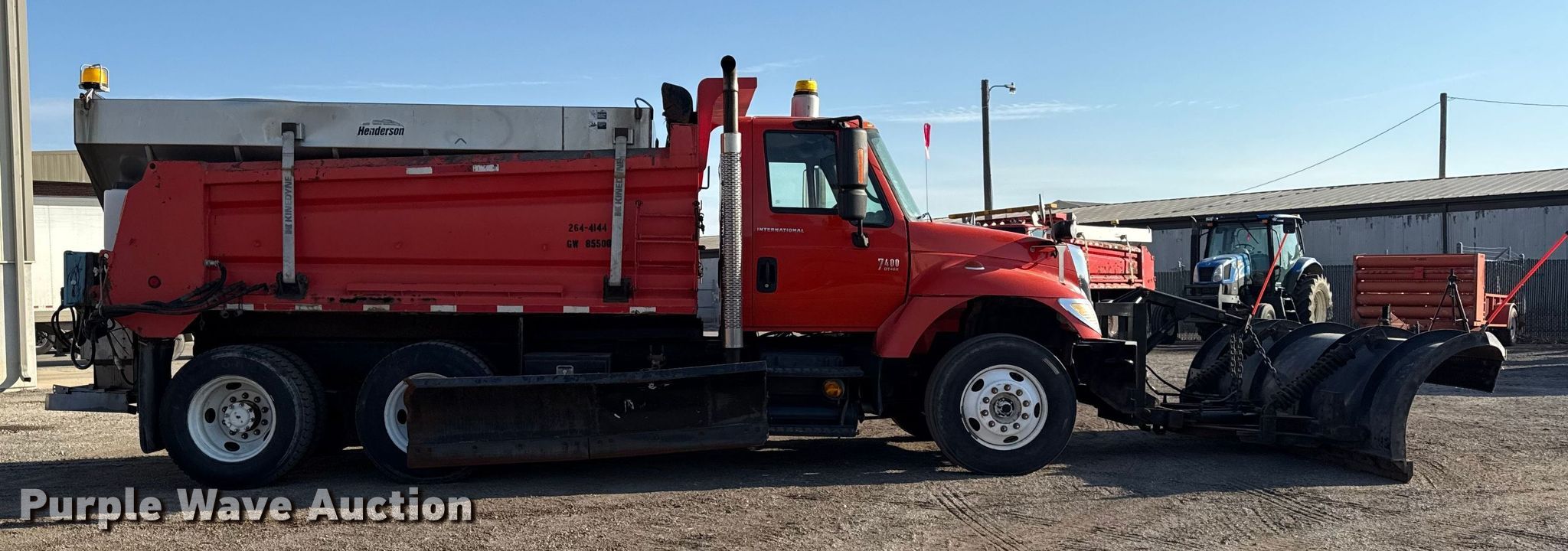 2005 International 7400 dump truck. Miles: 195,647 on odometer, Hours: 9,991 on meter, VIN: 1HTWHAAR65J139060, KDOT ID: 264-4144. Engine International DT466, Displacement: 7.64L, Cylinders: 6, Fuel type: Diesel. Transmission Allison, Automatic. Chassis Axles: Tandem, Differential lock: Inter-axle, Suspension: Spring over walking beam, Brakes: Air, Front mount PTO. Interior AC, Heat, Cruise control. Features Bed Dump bed, Henderson, Length: 13' 6", Width: 96", Side height: 32", Bed type: Steel, Roll tarp, Ram: Single, End gate: Air operated, Spreader Henderson, Plow Henderson, Width: 132", Wing plow Henderson, Width: 96". Tires Size: 295/75R22.5. Notes Dash warning indicator: Check engine, Check AC, Possible rust damage. Titles will be distributed after confirmation of payment and removal. Kansas title. Title distribution may be delayed up to 30 days from verification of funds. Kansas Department of Transportation - Chanute. Chanute, KS 66720