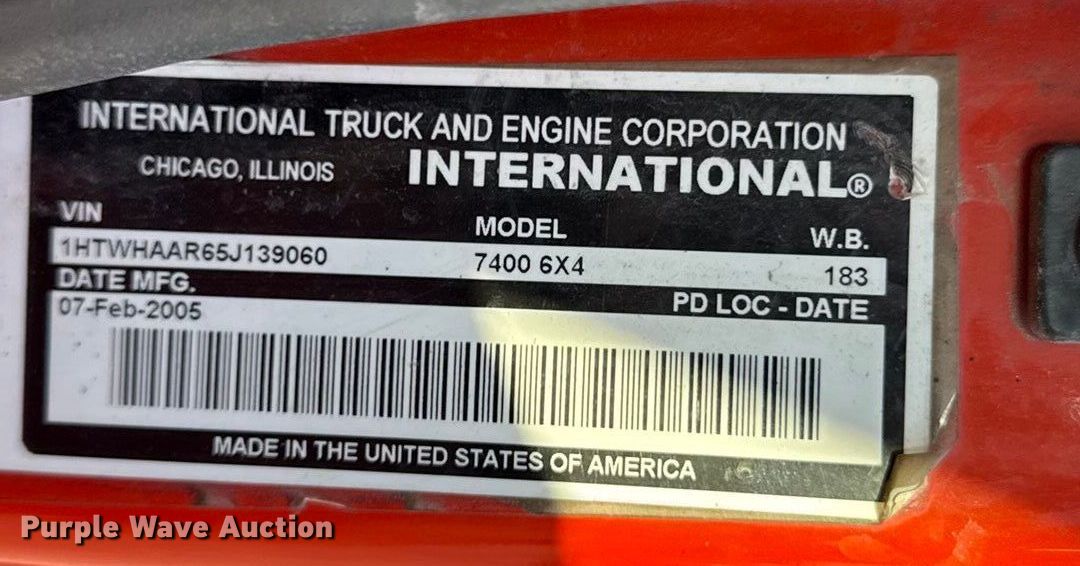 Purple Wave is selling a used Construction Dump Truck in Kansas. This item is a 2005 International 7400 dump truck with the following: Miles: 195,647 on odometer, Hours: 9,991 on meter, VIN: 1HTWHAAR65J139060, KDOT ID: 264-4144