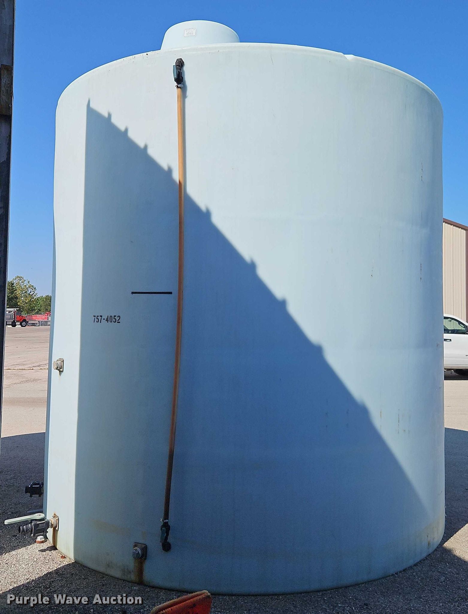 Purple Wave is selling a used Tanks in Kansas. This item is a Salt brine poly storage tank with the following: KDOT ID: 757-4052, Capacity: 10,000 gallons