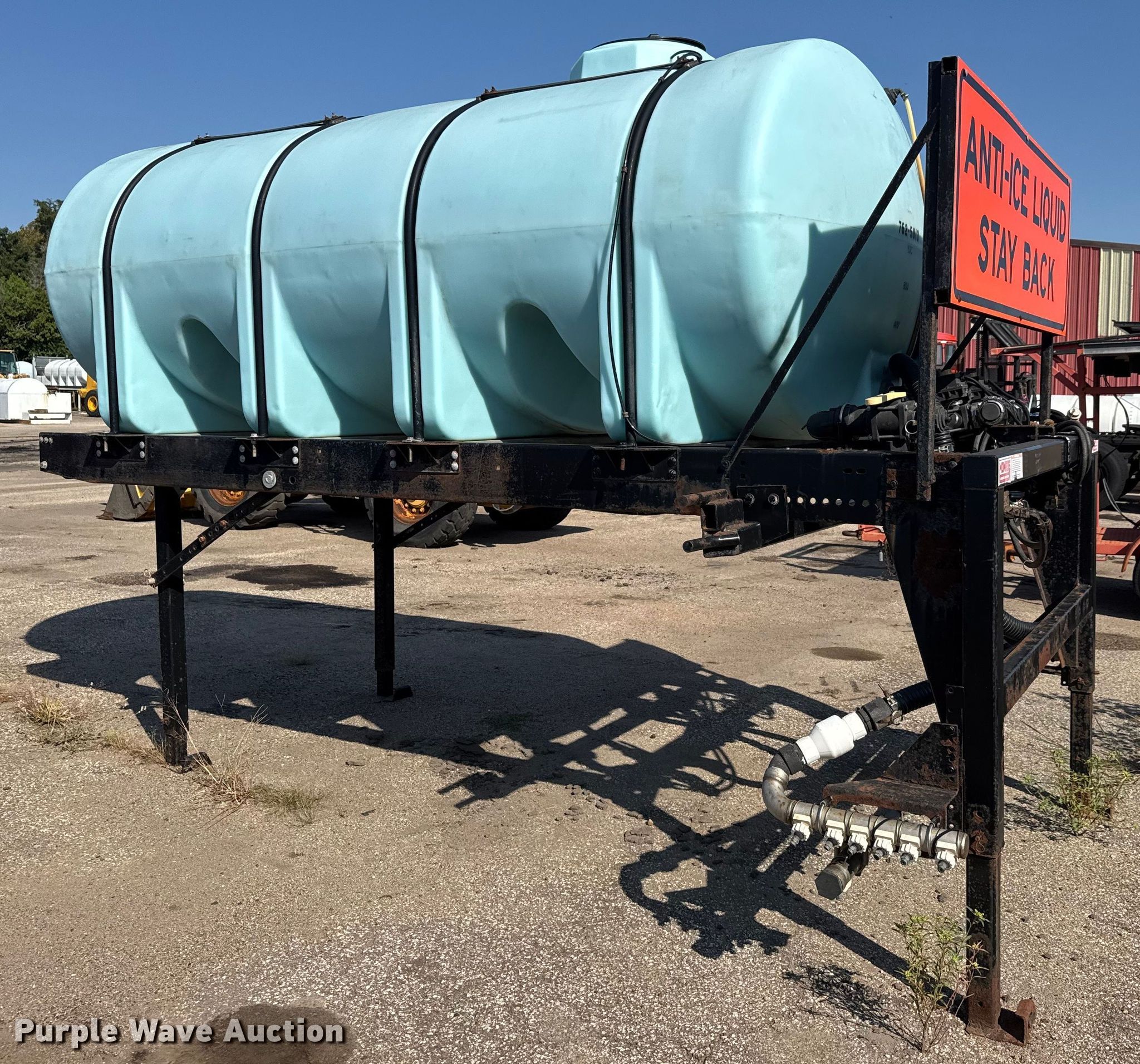 Purple Wave is selling a used Tanks in Kansas. This item is a Monroe brine tank with the following: KDOT ID: 762-5013, Capacity: 1,600 gallons, Frame rush damage, Tank has exceeded designed life as liquid storage tank, Similar tanks have been known to fail