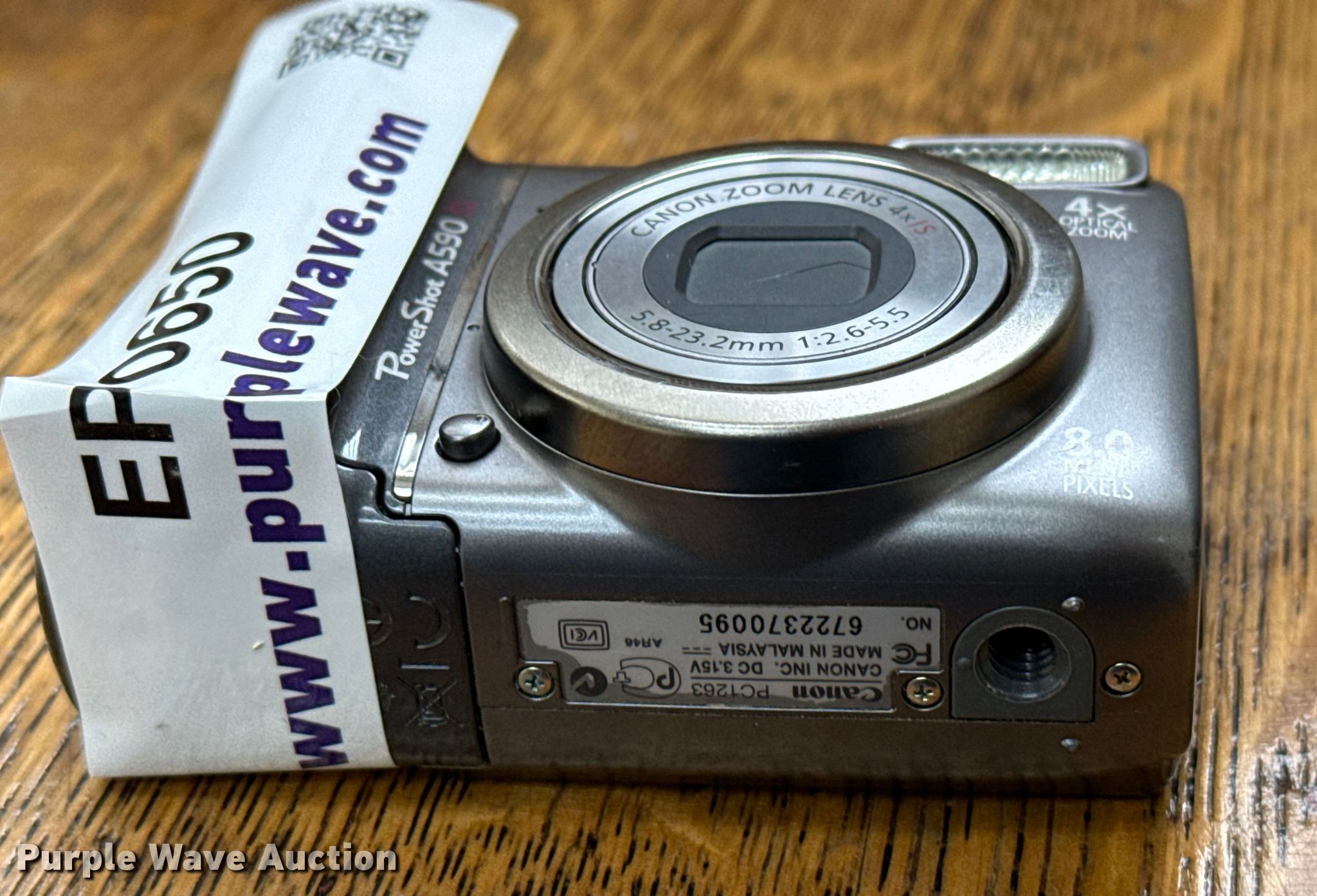 Purple Wave is selling a used Electronics in Kansas. This item is a Canon Power Shot A590 IS camera with the following: KDOT ID: 060403, Serial: 6722370095