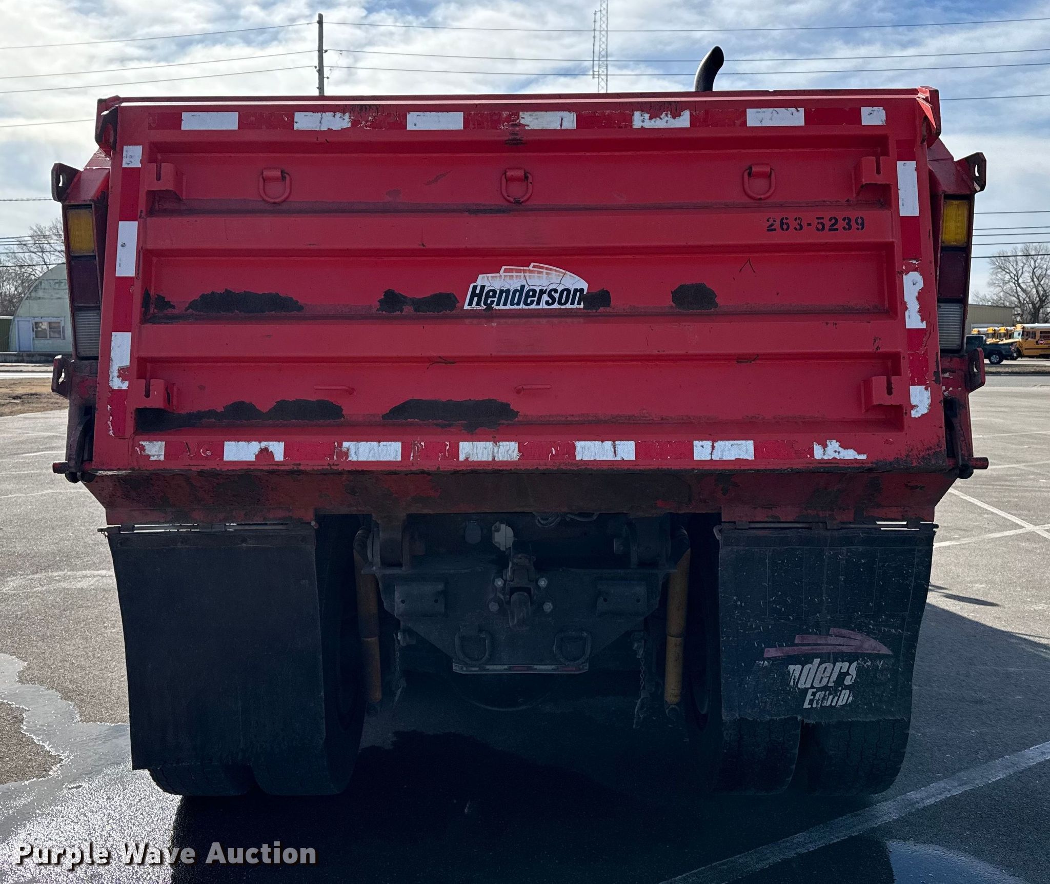 2009 Sterling L7500 Series dump truck. Miles: 161,283 on odometer, Hours: 2,097 on meter, VIN: 2FZHATBS79AAK1886, KDOT ID: 263-5239. Engine Cummins ISC, Displacement: 8.3L, Cylinders: 6, Fuel type: Diesel. Transmission Automatic. Chassis Axles: Tandem, Differential lock: Inter-axle, Suspension: Spring over walking beam, Brakes: Air, Front mount PTO. Interior AC, Heat, Cruise control. Features Bed Dump bed, Henderson, Length: 14', Width: 96", Bed type: Steel, Roll tarp, Ram: Single, End gate: Air operated, Plow Henderson, Width: 144". Tires Front: 315/80R22.5, Rear: 275/80R22.5. Titles will be distributed after confirmation of payment and removal. Kansas title. Title distribution may be delayed up to 30 days from verification of funds. Kansas Department of Transportation-Shop. Hutchinson, KS 67504