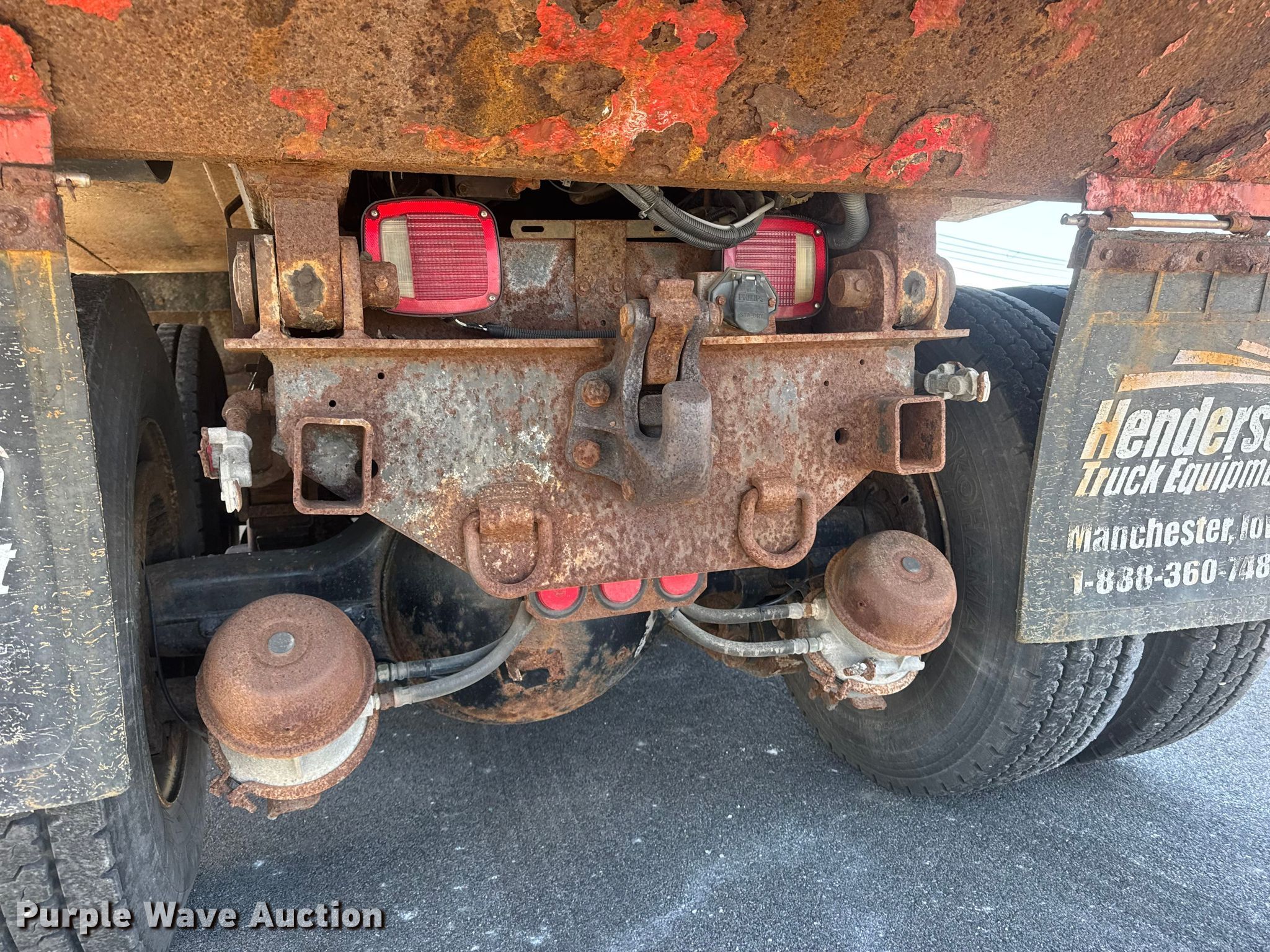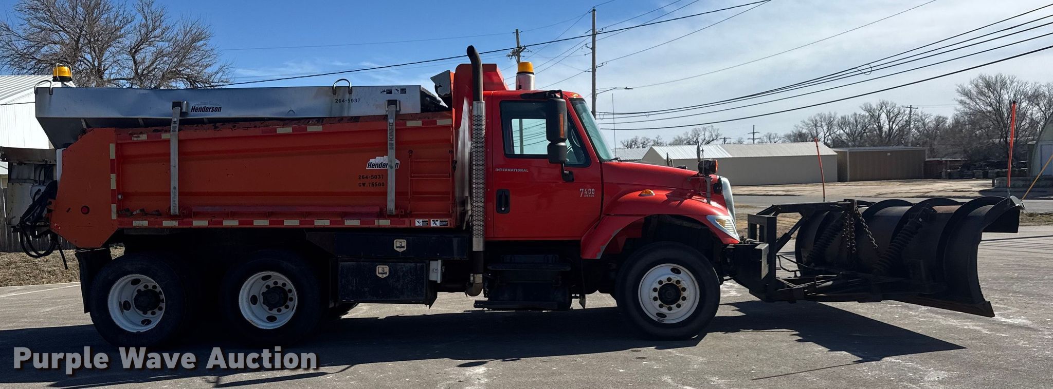 2007 International 7400 dump truck. Miles: 169,185 on odometer, Hours: 8,875 on meter, VIN: 1HTWHAAR87J443266, KDOT ID: 264-5037. Engine International DT466, Displacement: 7.64L, Cylinders: 6, Fuel type: Diesel. Transmission Allison, Automatic. Chassis Axles: Tandem, Differential lock: Inter-axle, Suspension: Spring over walking beam, Brakes: Air, Front mount PTO, GVWR: 53,220 lbs, Wheelbase: 465". Interior AC, Heat, Heated mirrors, Cruise control. Features Bed Dump bed, Henderson 13.5XKDOTXHX2577, Serial: MK1-18938, Length: 13' 6", Width: 96", Side height: 46" to 38", Bed type: Steel, Roll tarp, Ram: Single, End gate: Air operated, Spreader Henderson FSHX13XKDOTXHX25280, Plow Henderson 11X42XKDOTXHX25275, Width: 132". Tires Size: 295/75R22.5. Notes Rust damage, Windshield chipped or cracked, Hydraulic control system issues, Non-operational spreader control system. Titles will be distributed after confirmation of payment and removal. Kansas title. Title distribution may be delayed up to 30 days from verification of funds. Kansas Department of Transportation-Shop. Hutchinson, KS 67504