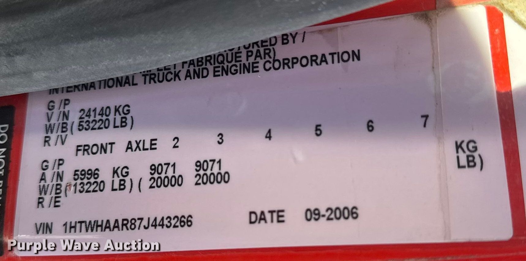 Purple Wave is selling a used Construction Dump Truck in Kansas. This item is a 2007 International 7400 dump truck with the following: Miles: 169,185 on odometer, Hours: 8,875 on meter, VIN: 1HTWHAAR87J443266, KDOT ID: 264-5037