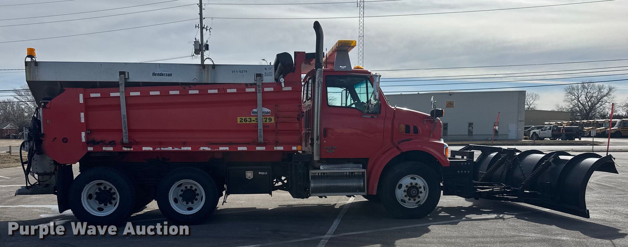 2009 Sterling L7500 Series dump truck. Miles: 184,983 on odometer, Hours: 9,339 on meter, VIN: 2FZHATBS19AAK1902, KDOT ID: 263-5279. Engine Cummins ISC 330, Serial: 4993366, Displacement: 8.3L SOHC, Cylinders: 6, Fuel type: Diesel. Transmission Allison, Automatic. Chassis Axles: Tandem, Differential lock: Inter-axle, Suspension: Spring over walking beam, Brakes: Air, Front mount PTO, GVWR: 56,000 lbs. Interior AC, Heat, Heated mirrors, Cruise control. Features Bed Dump bed, Henderson 14x44xMKE, Serial: MKE-22815, Length: 14', Width: 96", Side height: 38" to 46", Bed type: Steel, Roll tarp, Ram: Single, End gate: Air operated, Plow Henderson, Width: 144", Wing plow Width: 96". Tires Size: 295/75R22.5. Notes Possible charging system issues, Hydraulic control system issues, Rust damage. Titles will be distributed after confirmation of payment and removal. Kansas title. Title distribution may be delayed up to 30 days from verification of funds. Kansas Department of Transportation-Shop. Hutchinson, KS 67504