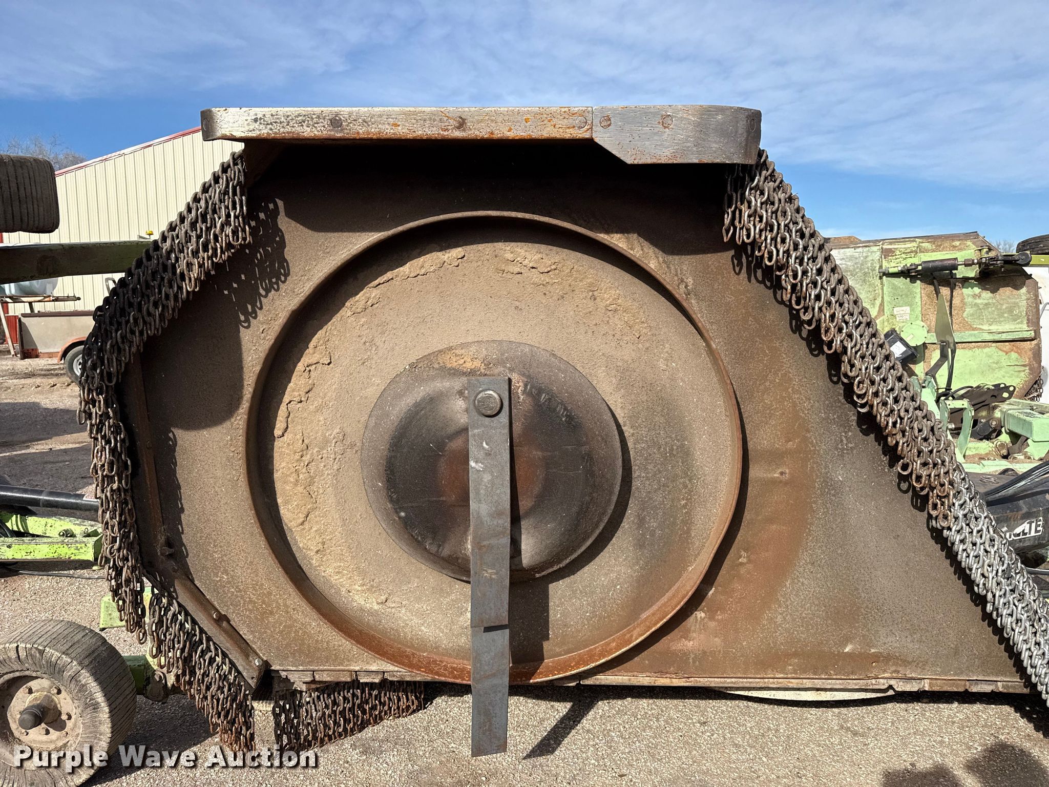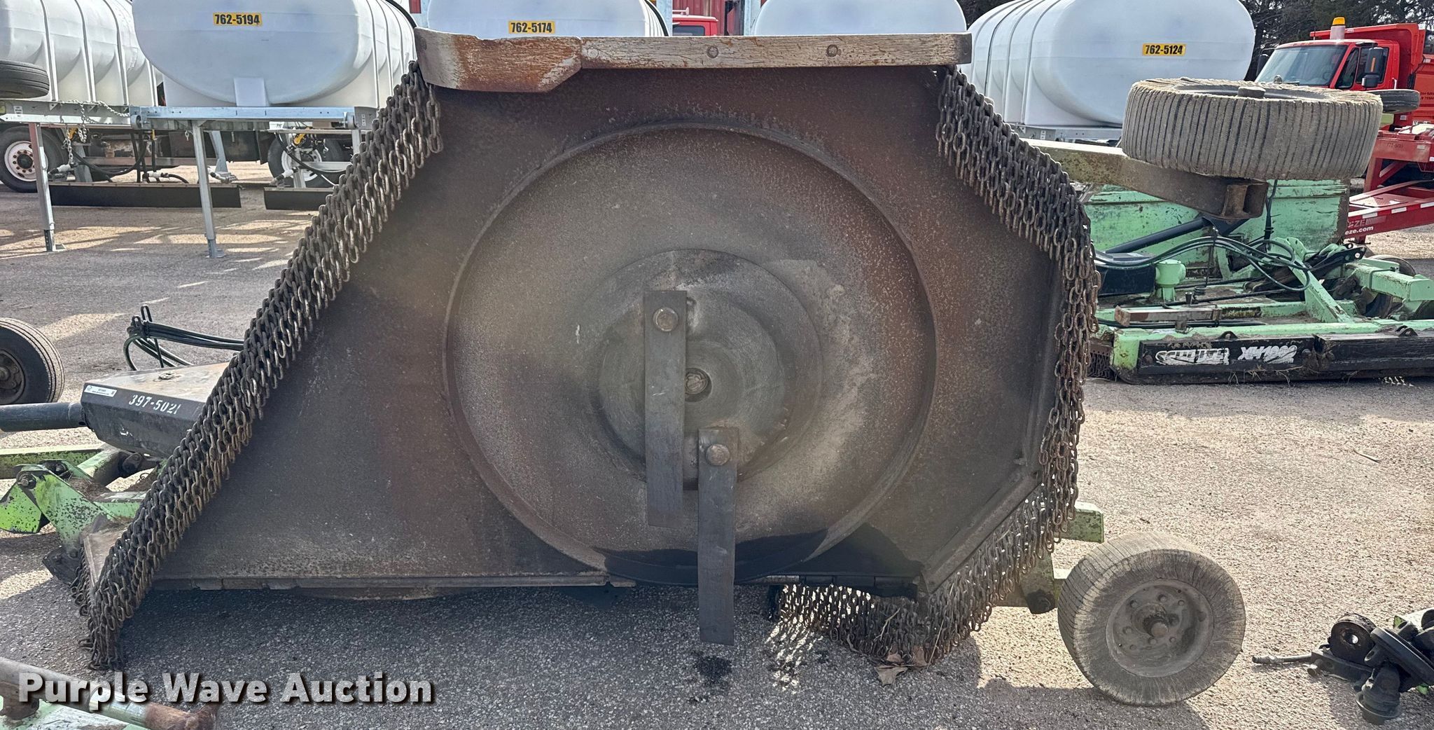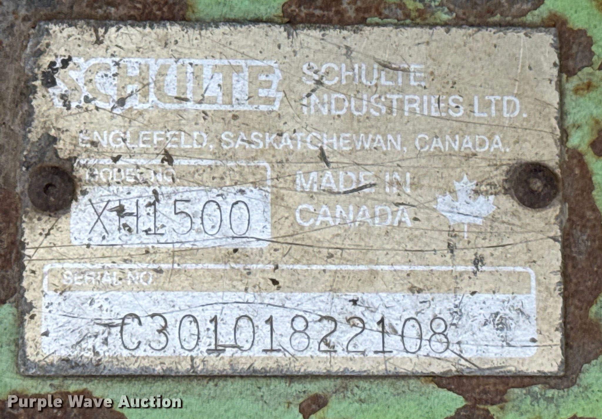2001 Schulte XH1500 batwing rotary mower. Serial: C30101822108, KDOT ID: 397-5021. Features Width: 15', Hydraulic lift, Hydraulic fold, PTO: 540. Tires Solid. Notes Hydraulic cylinders leak. Kansas Department of Transportation-Shop. Hutchinson, KS 67504