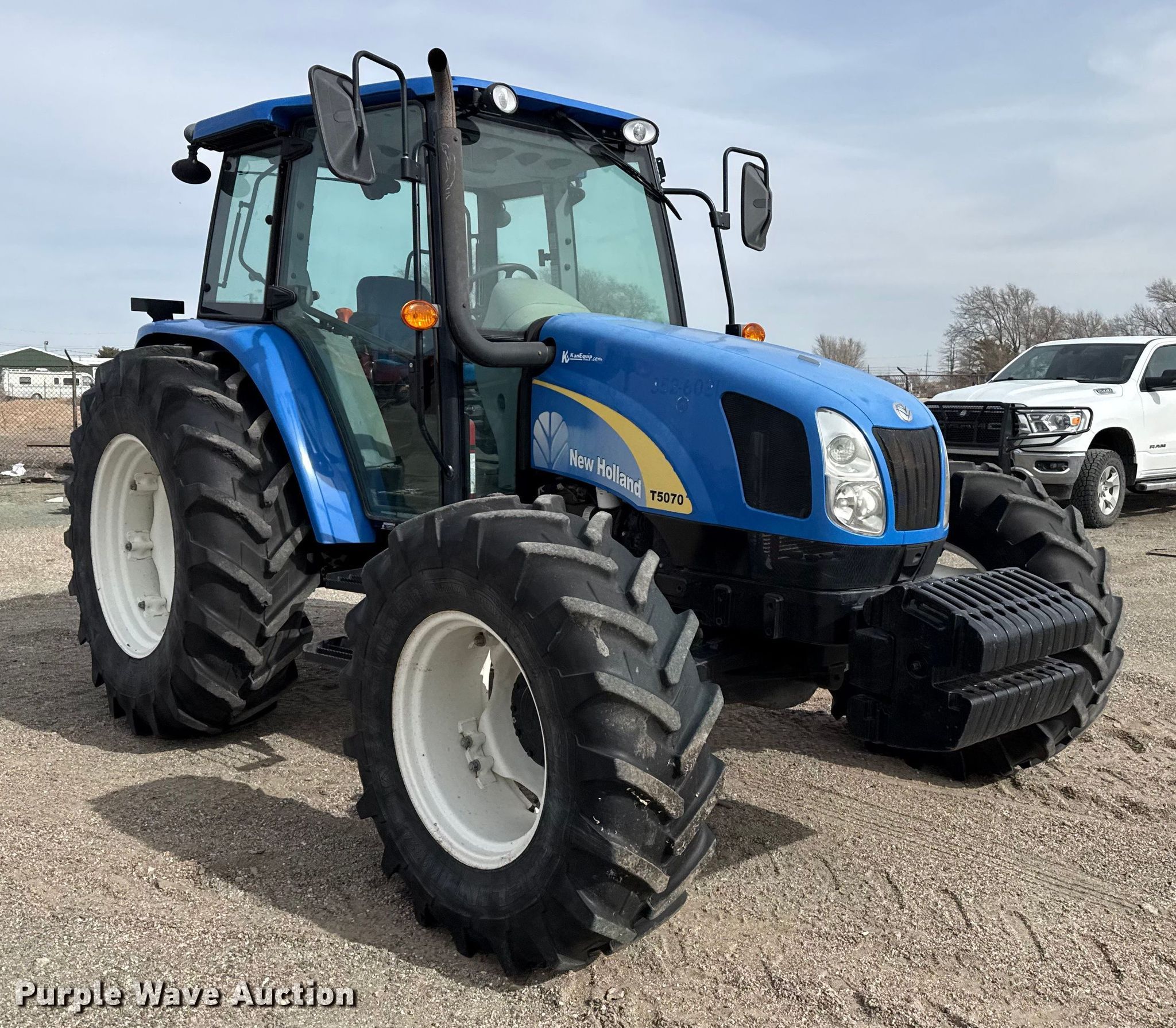 Purple Wave is selling a used Tractor in Kansas. This item is a 2011 New Holland T5070 MFWD tractor with the following: Hours: 2,652 on meter, Serial: ZBJH08812, KDOT ID: 352-6021