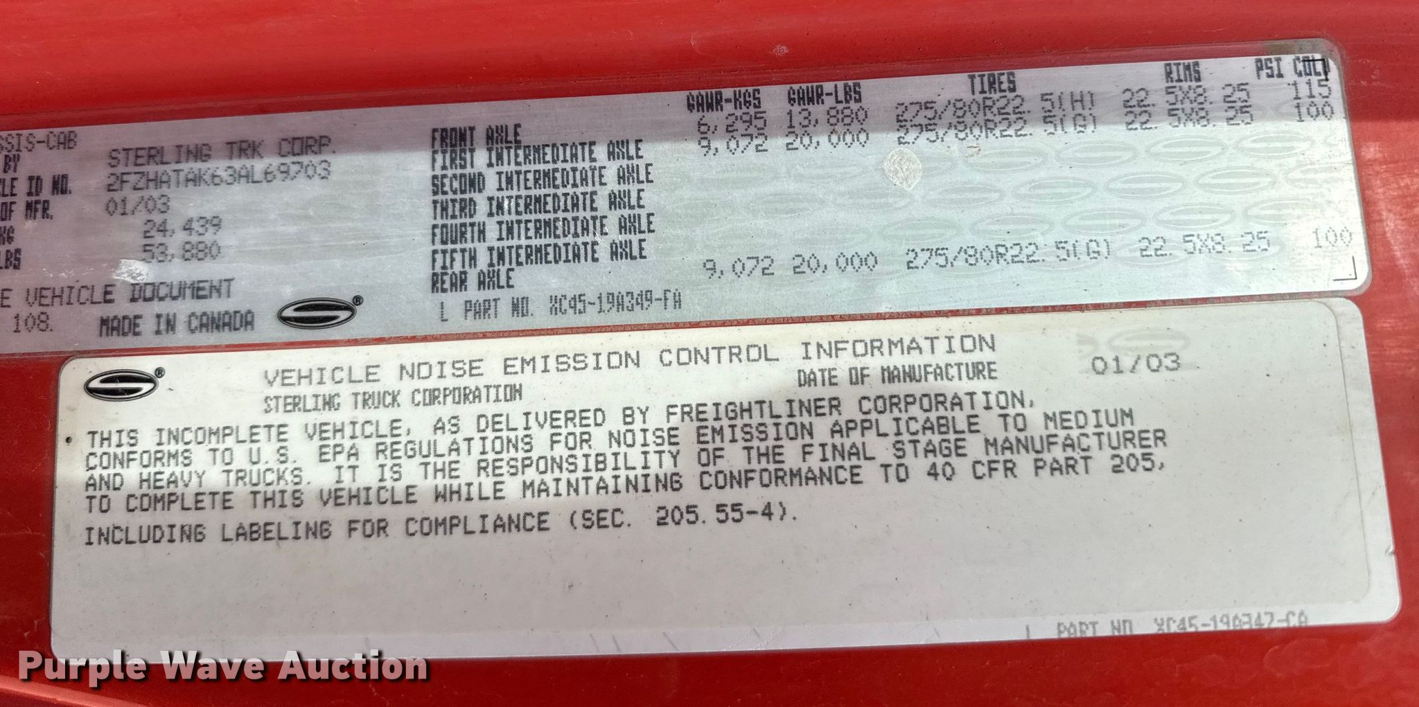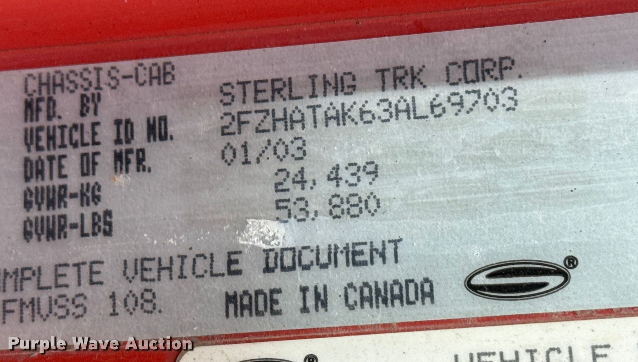 Purple Wave is selling a used Construction Dump Truck in Kansas. This item is a 2003 Sterling 7500 dump truck with the following: Miles: 149,956 on odometer, VIN: 2FZHATAK63AL69703, KDOT ID: 263-6012