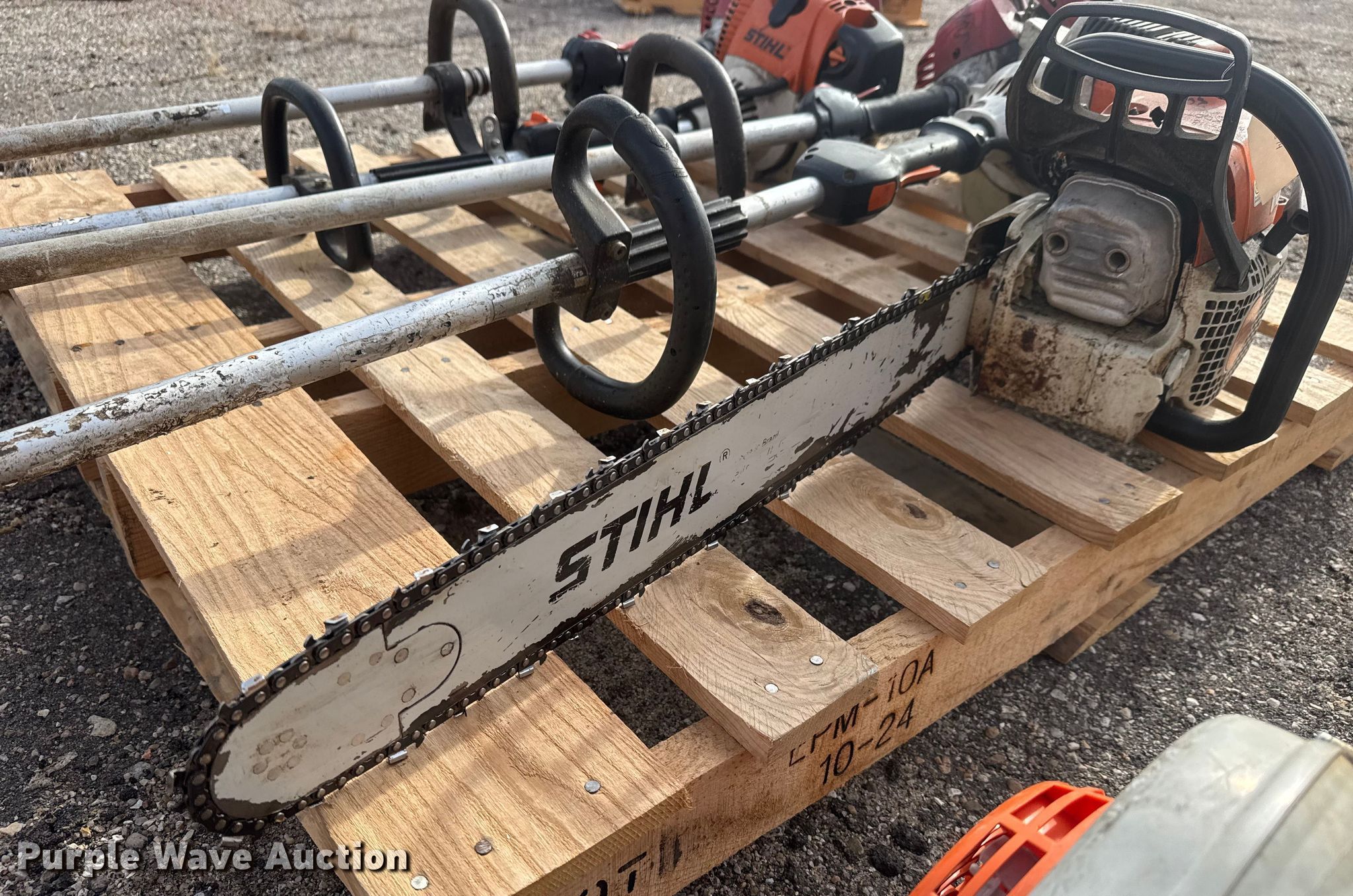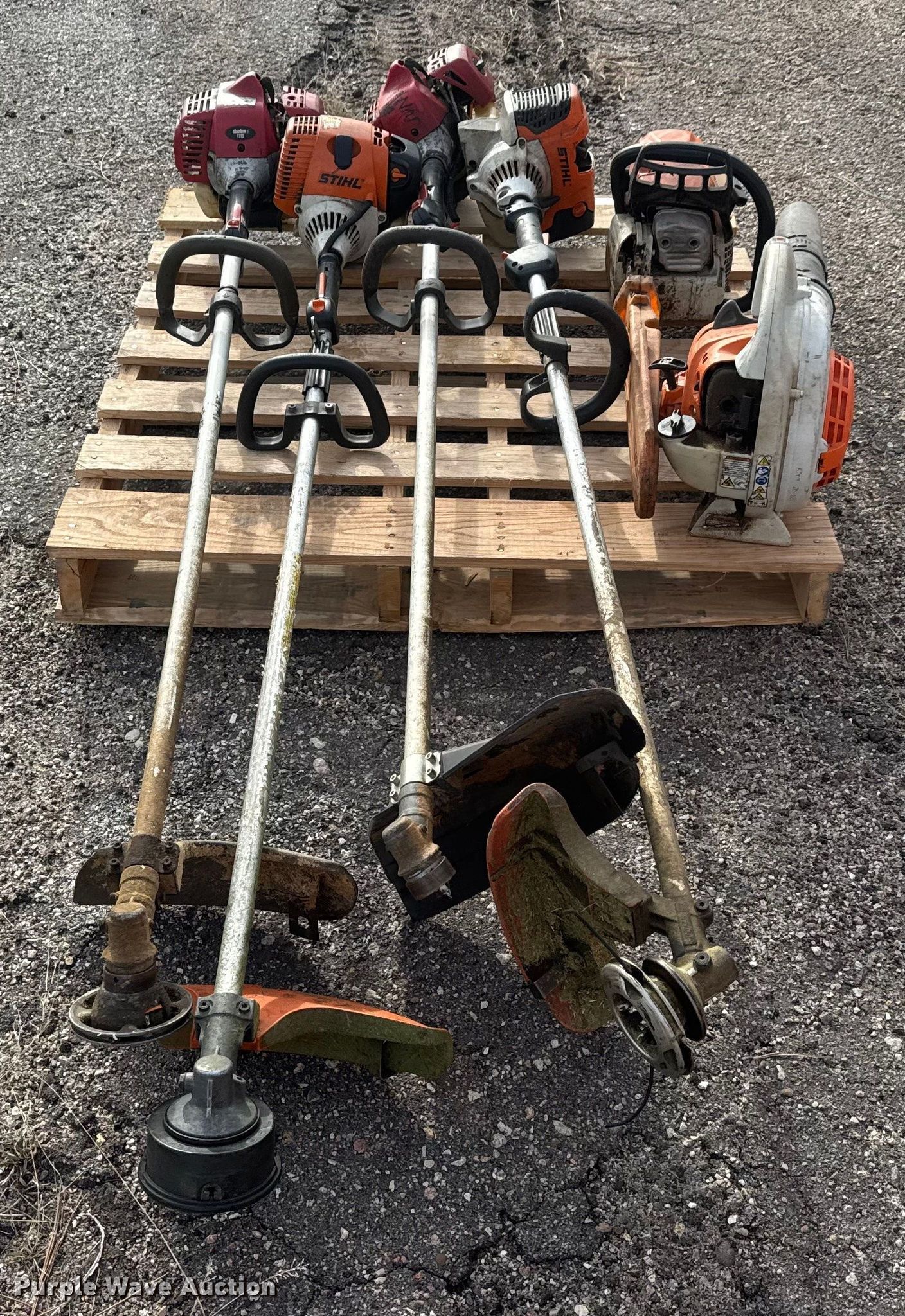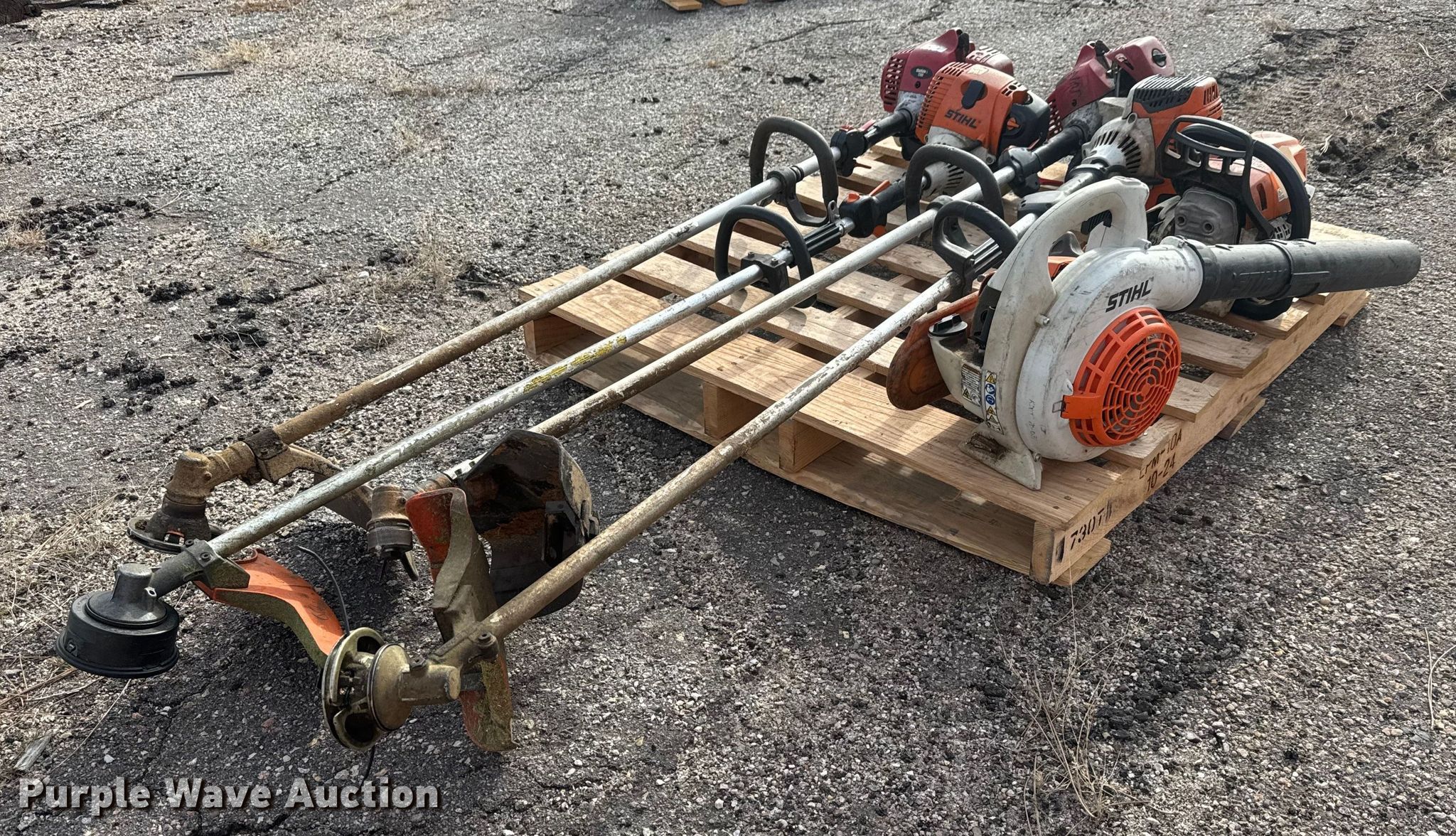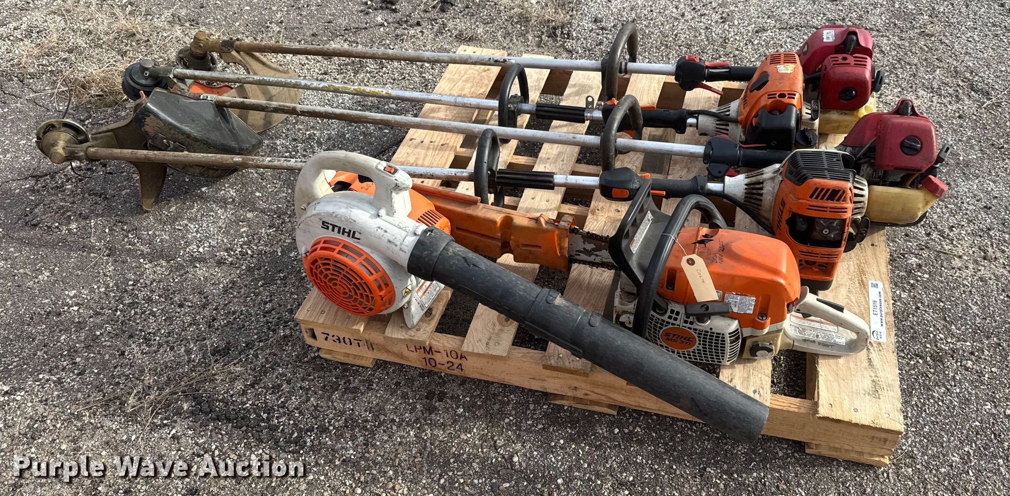 Purple Wave is selling a used Lawn and Garden in Kansas. This item is a Lawn equipment with the following: KDOT ID: 50674, Stihl MS 311 chainsaw, Stihl BG56C leaf blower, (2) Stihl string trimmers, (2) Shindaiwa string trimmers