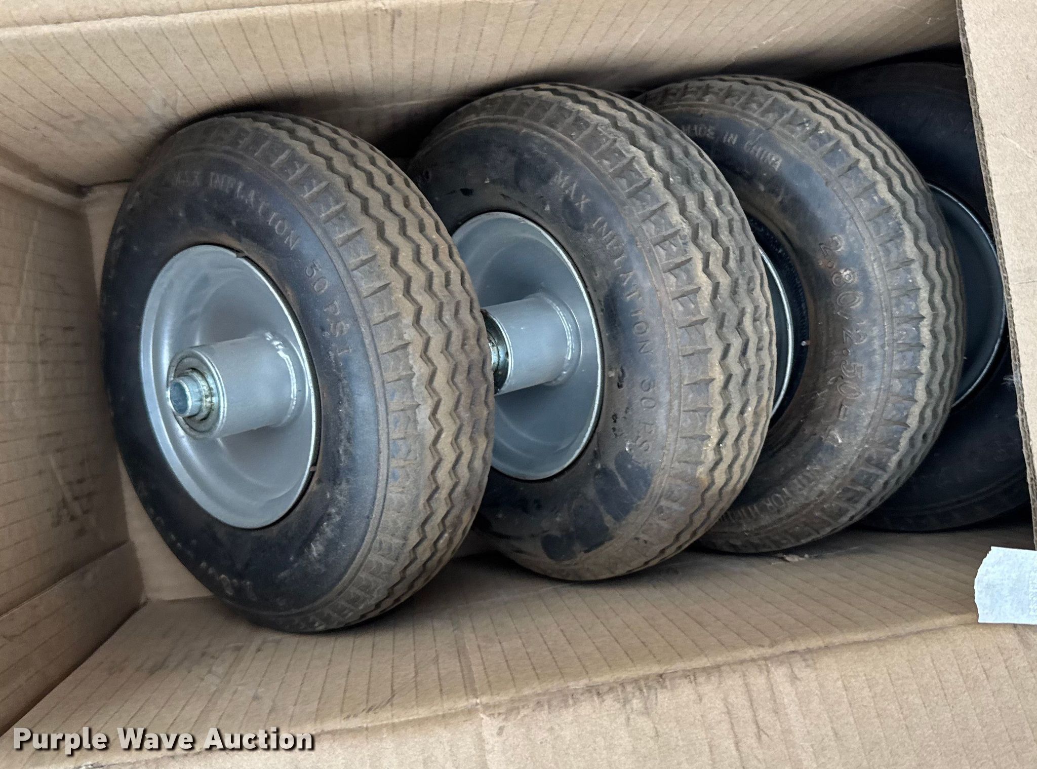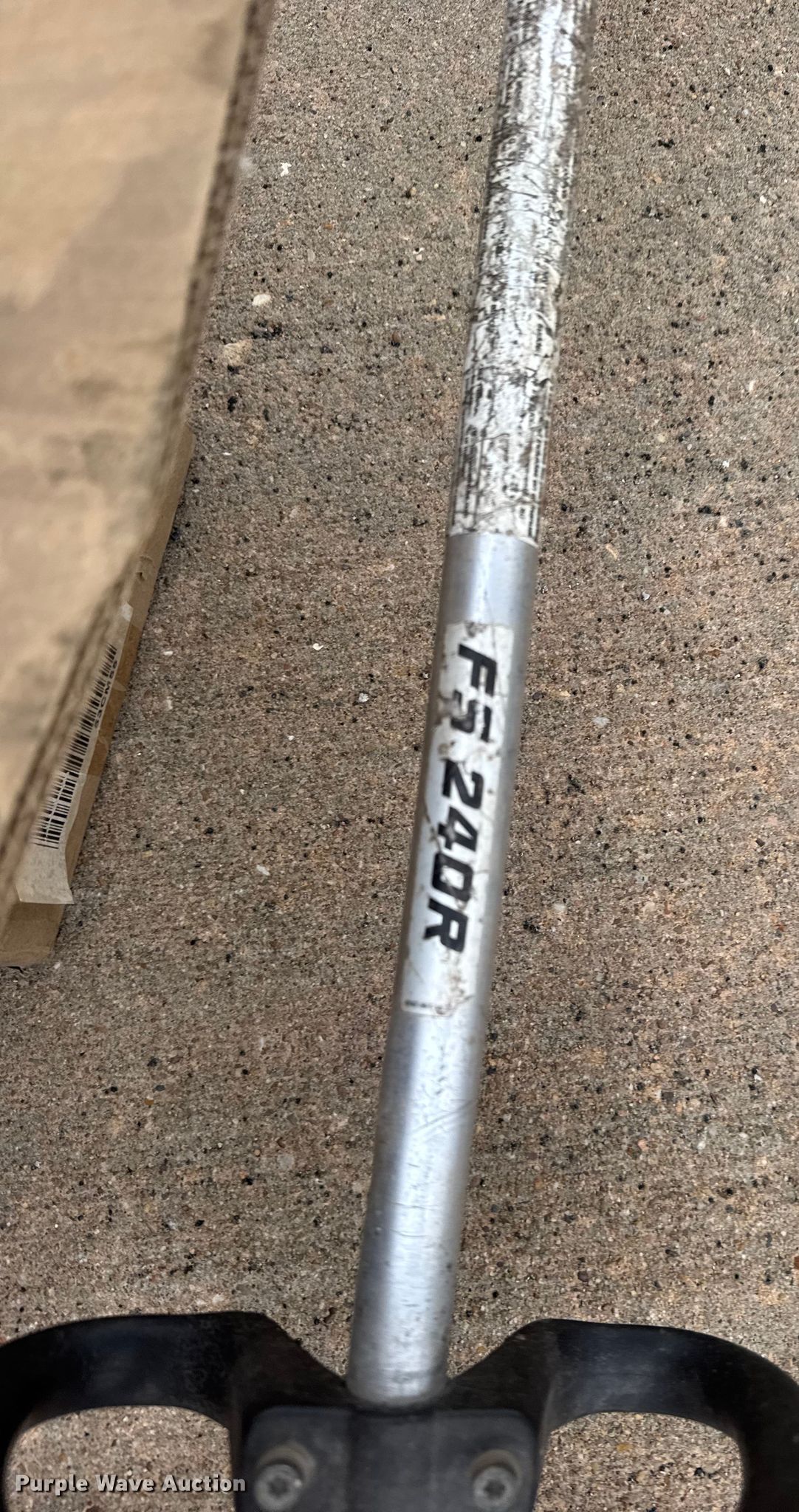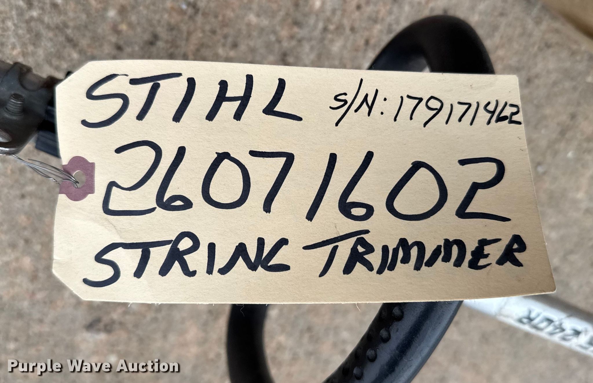Purple Wave is selling a used Lawn and Garden in Kansas. This item is a Lawn and garden equipment with the following: KDOT ID: 2610315, 26071602, 2610316, (2) 18x9.50-8 mower tires, Unused, (4) 2.80x2.50-4 mower tires and wheels, Stihl FS240R sting trimmer, Parts missing, Non-operational