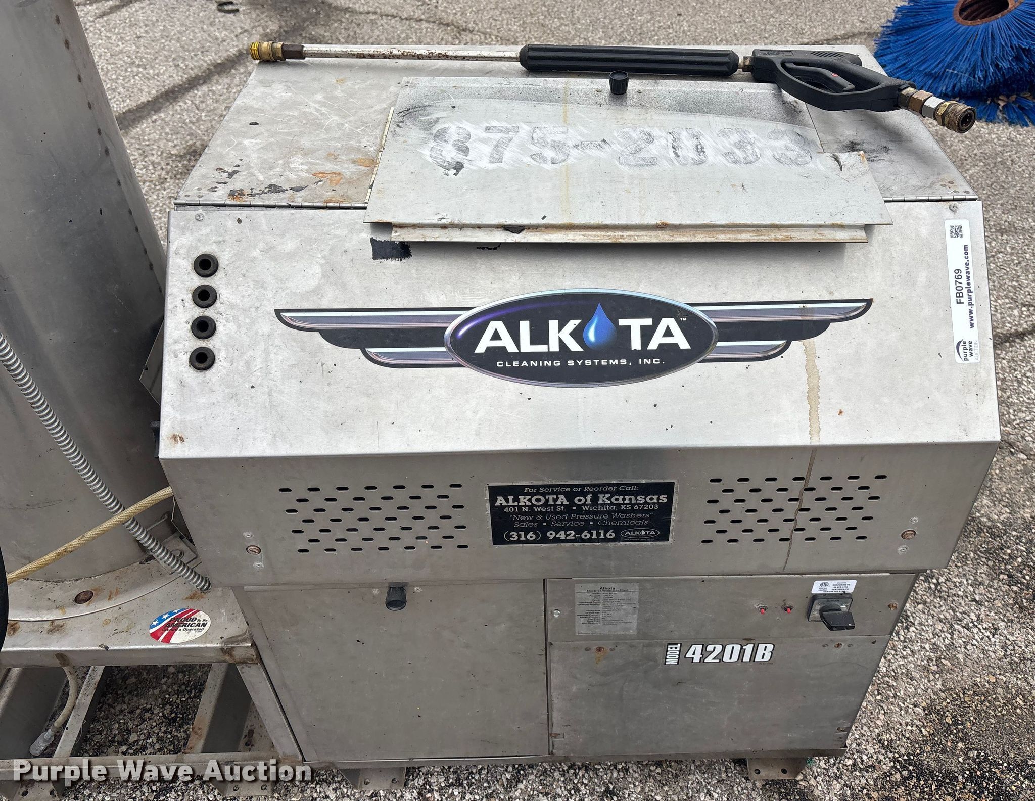 Purple Wave is selling a used Pressure Washer in Kansas. This item is a 2012 Alkota 4201 NGUL pressure washer with the following: Serial: 269874, KDOT ID: 875-2033