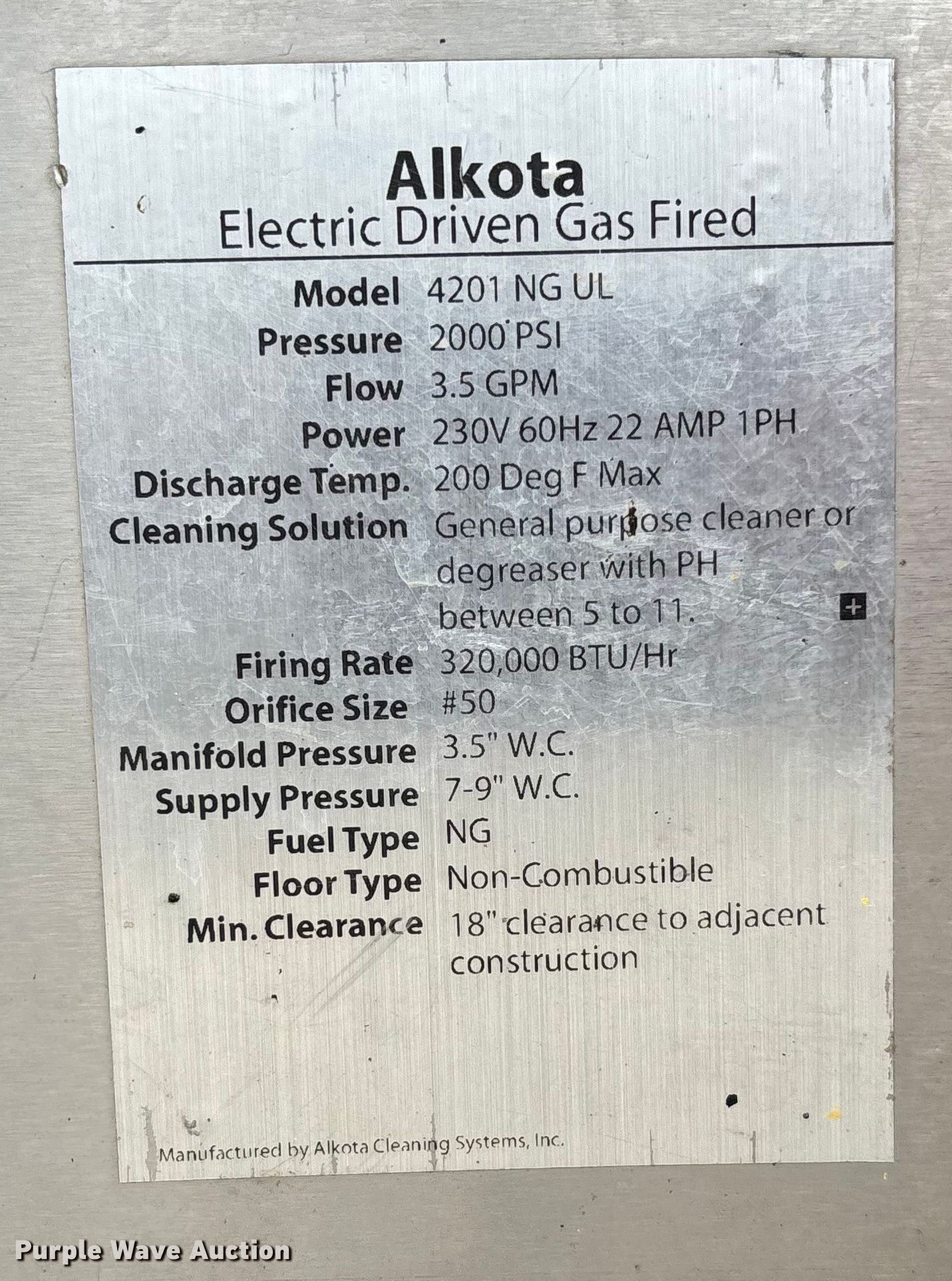 This 2012 Alkota 4201 NGUL pressure washer will sell to the highest bidder regardless of price.