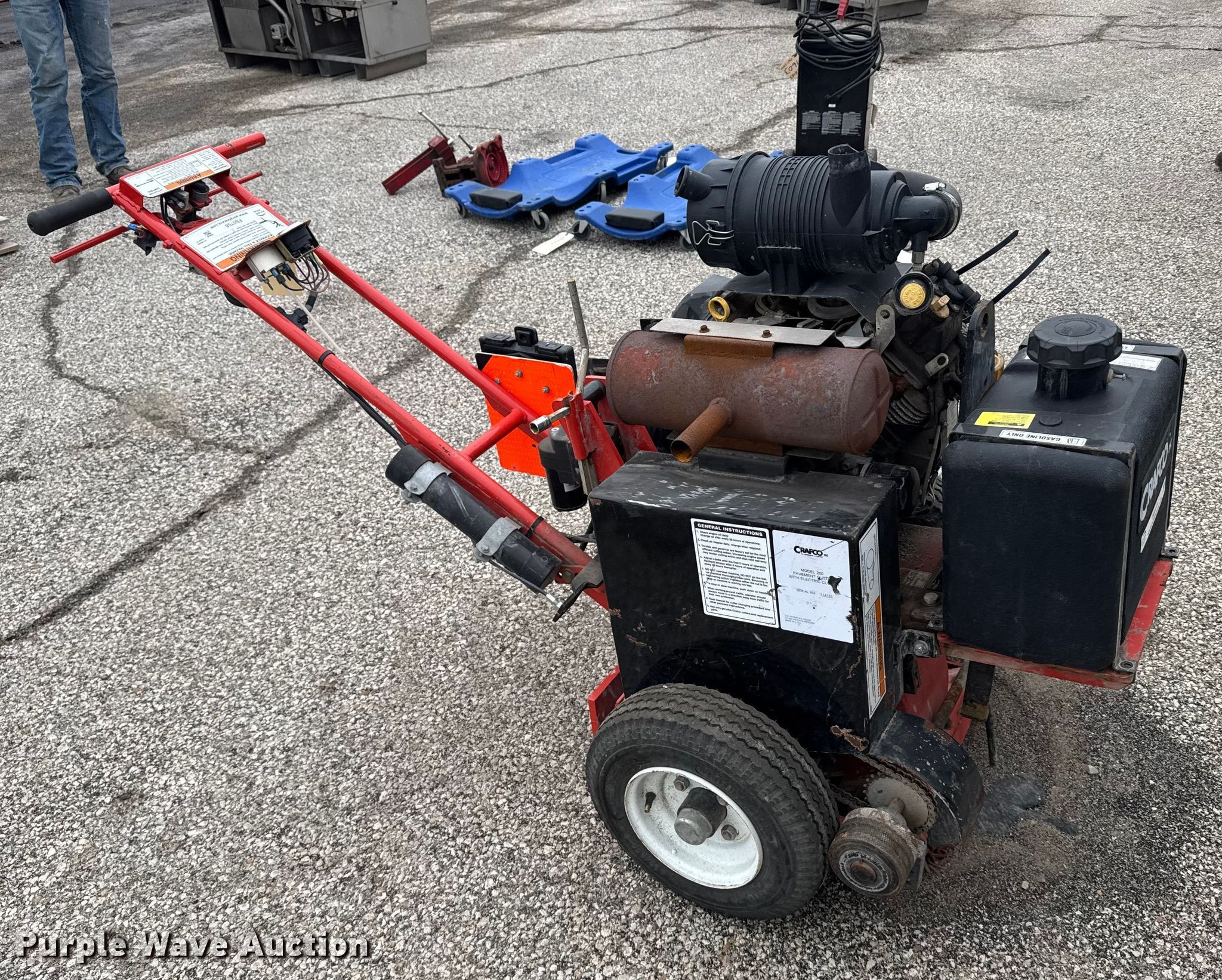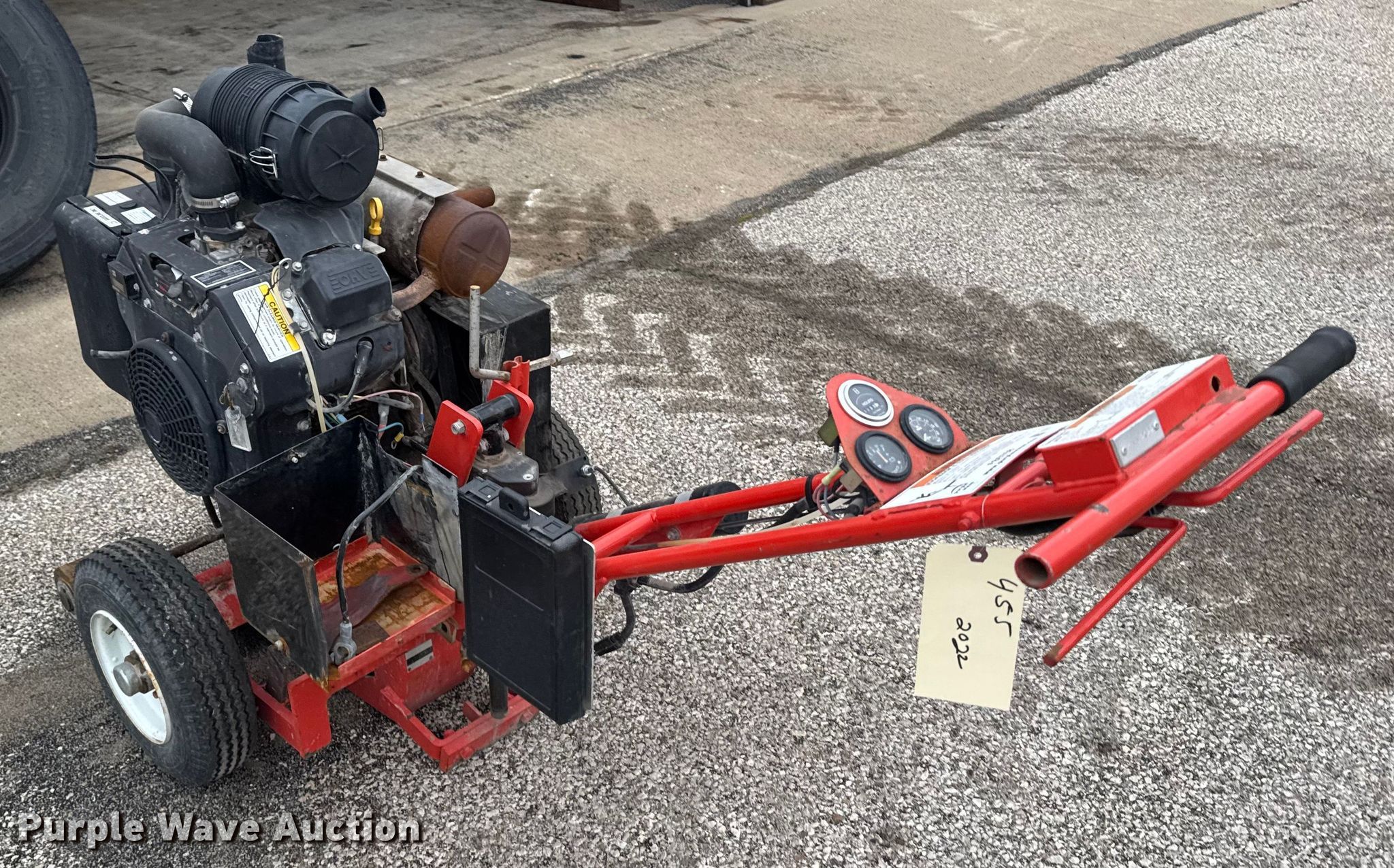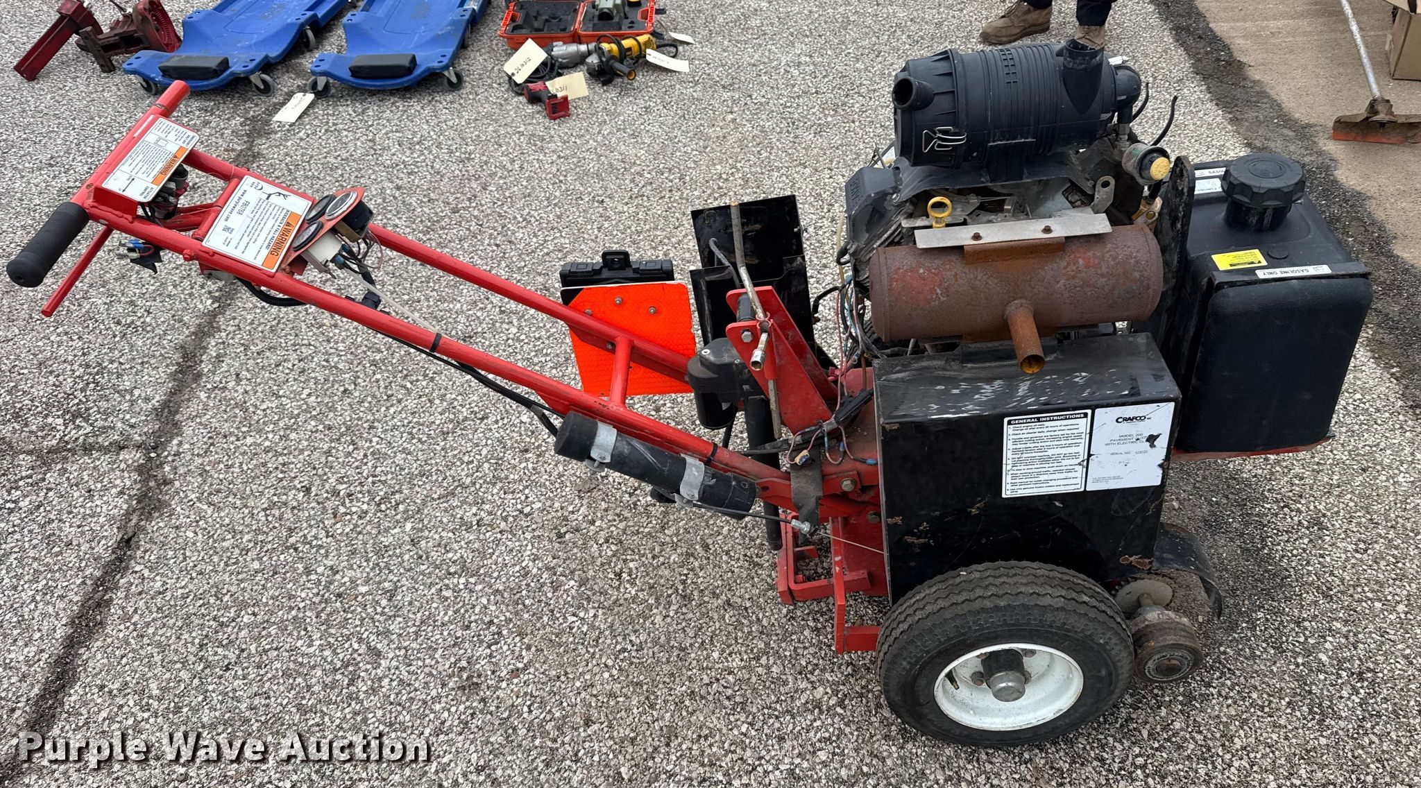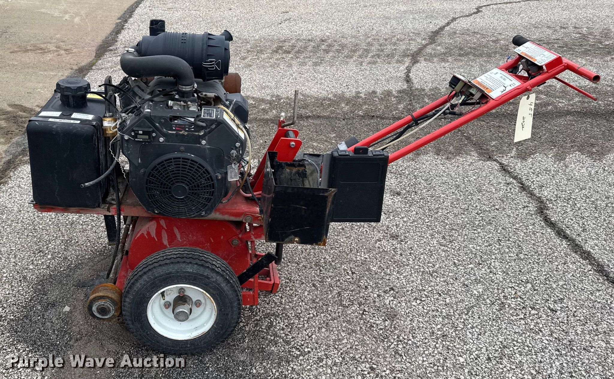 Purple Wave is selling a used Concrete Equip. or Acces. in Kansas. This item is a Grafco concrete router with the following: KDOT ID: 455-2022, Non-operational engine, blown, Fuel tank not secured, Key switch missing, Battery missing, Non-operational unit