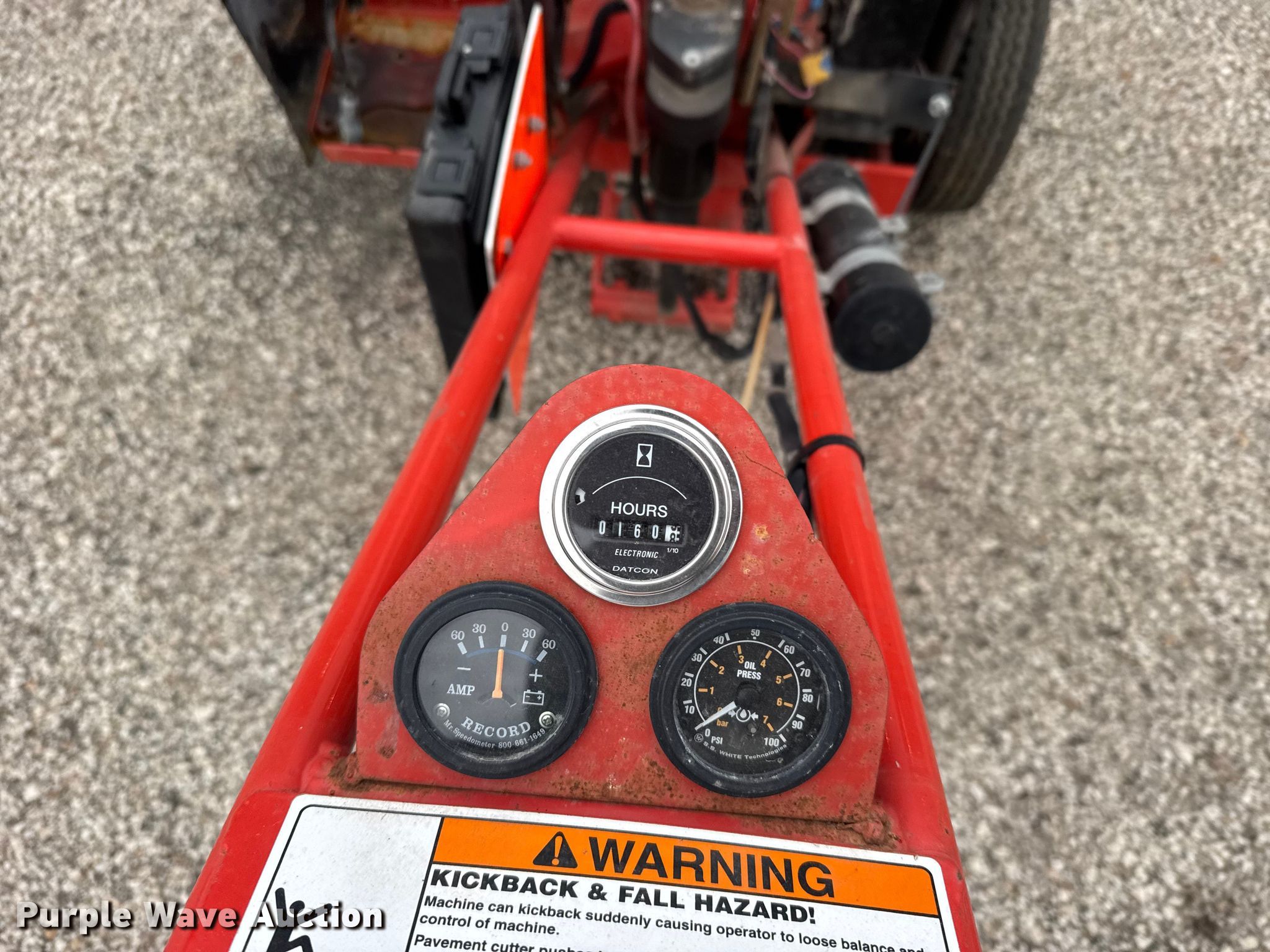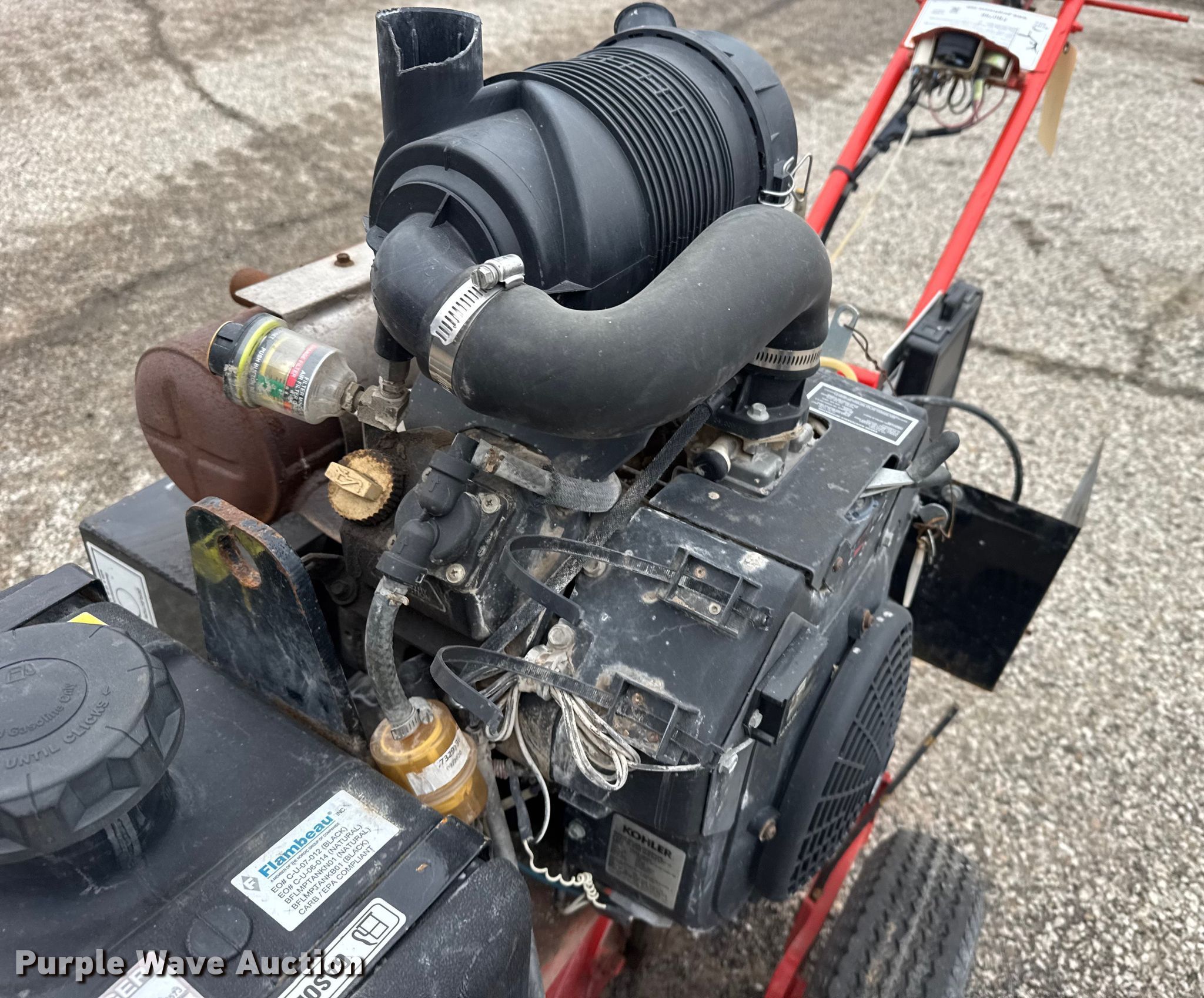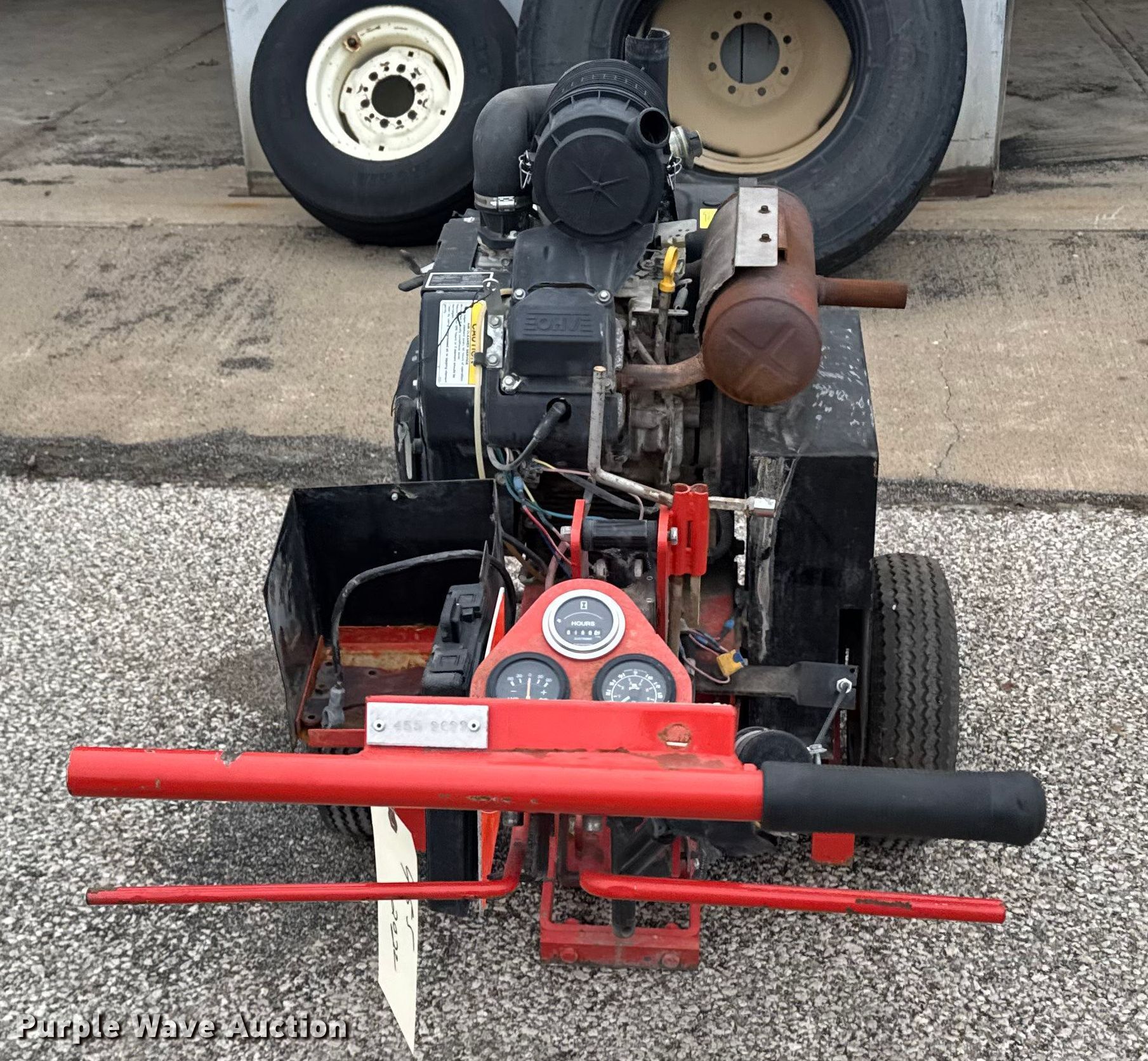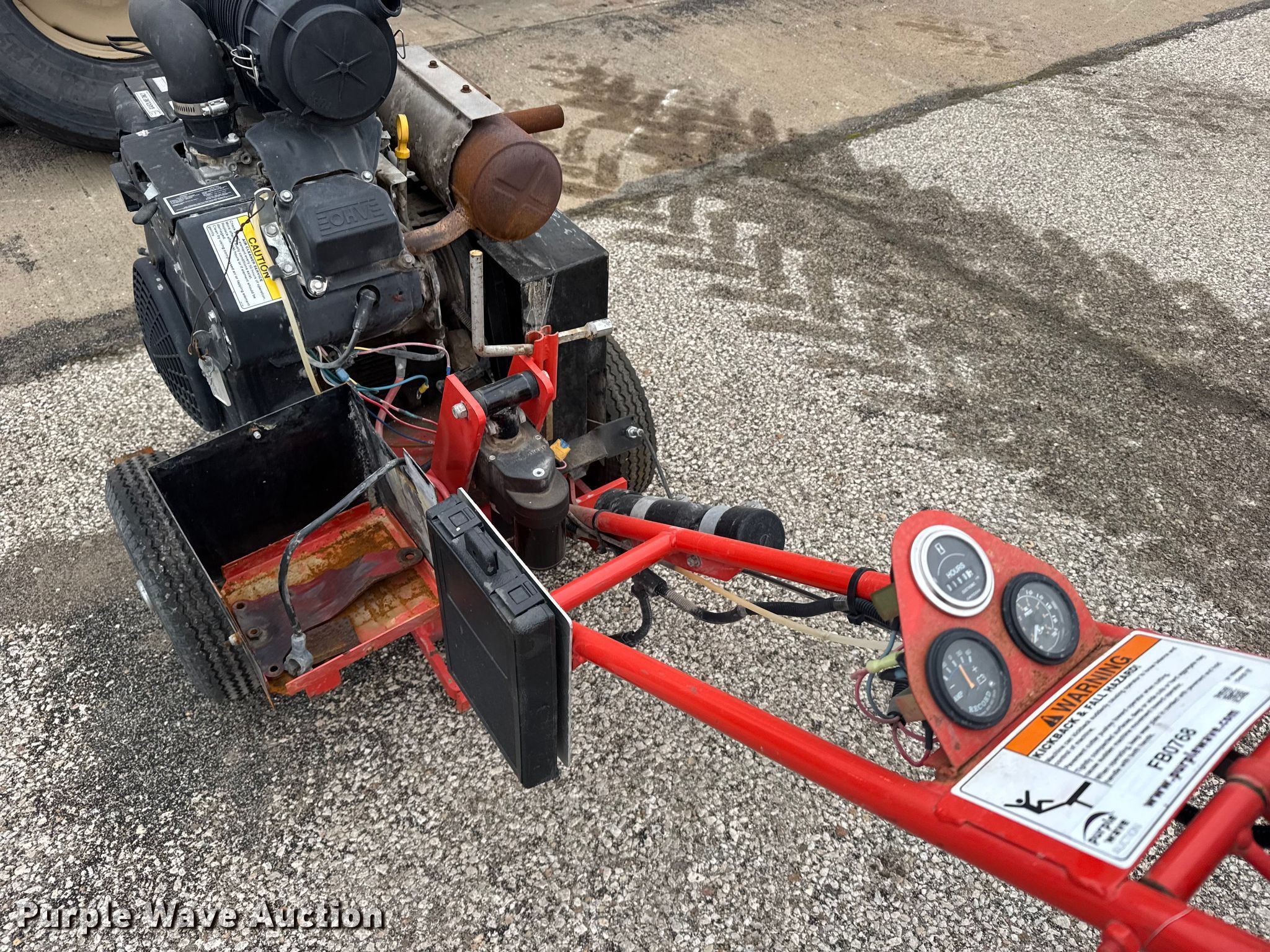 Grafco concrete router. KDOT ID: 455-2022, Non-operational engine, blown , Fuel tank not secured, Key switch missing, Battery missing, Non-operational unit. Kansas Department of Transportation. Salina, KS 67401