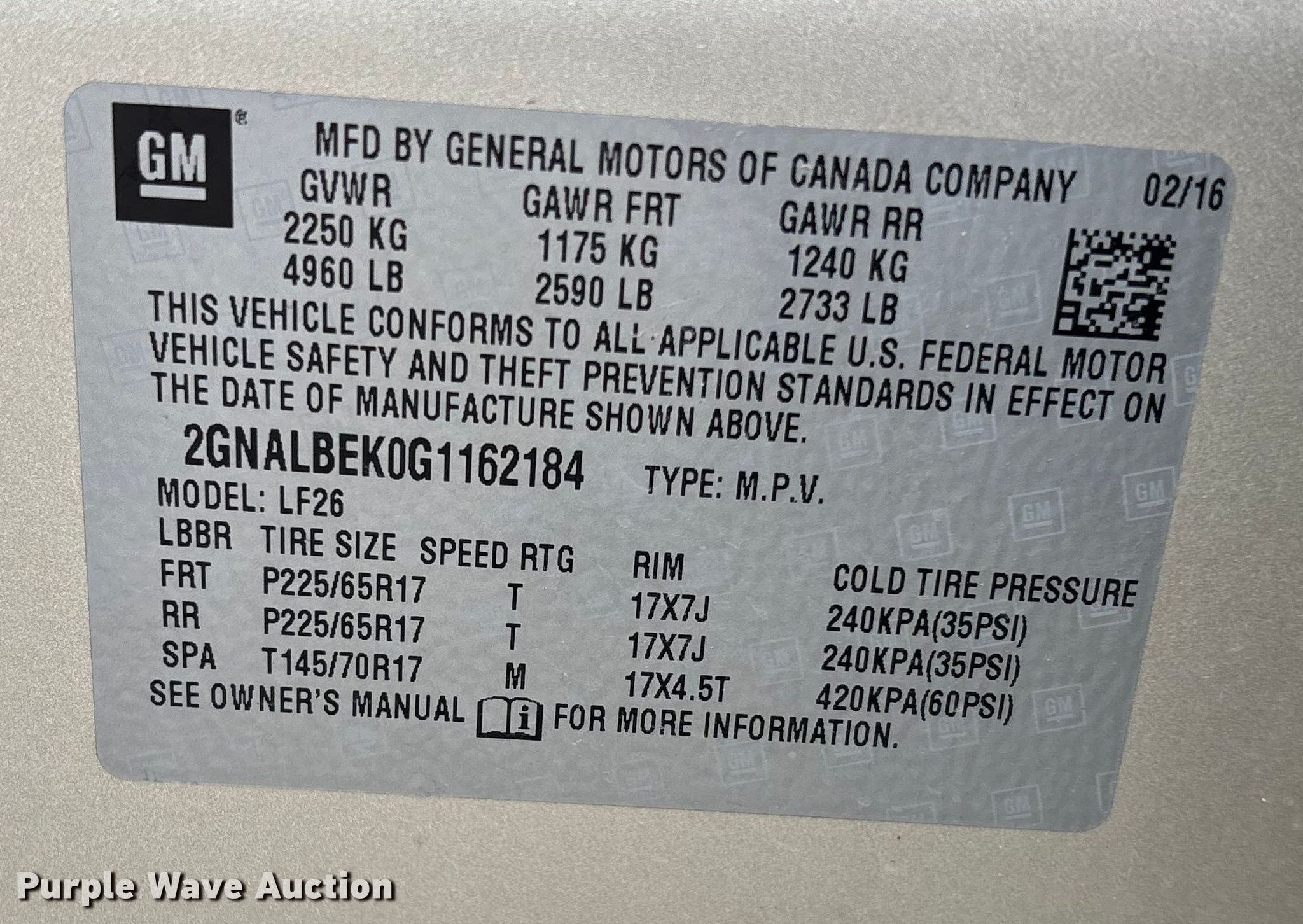 - VIN: 2GNALBEK0G1162184