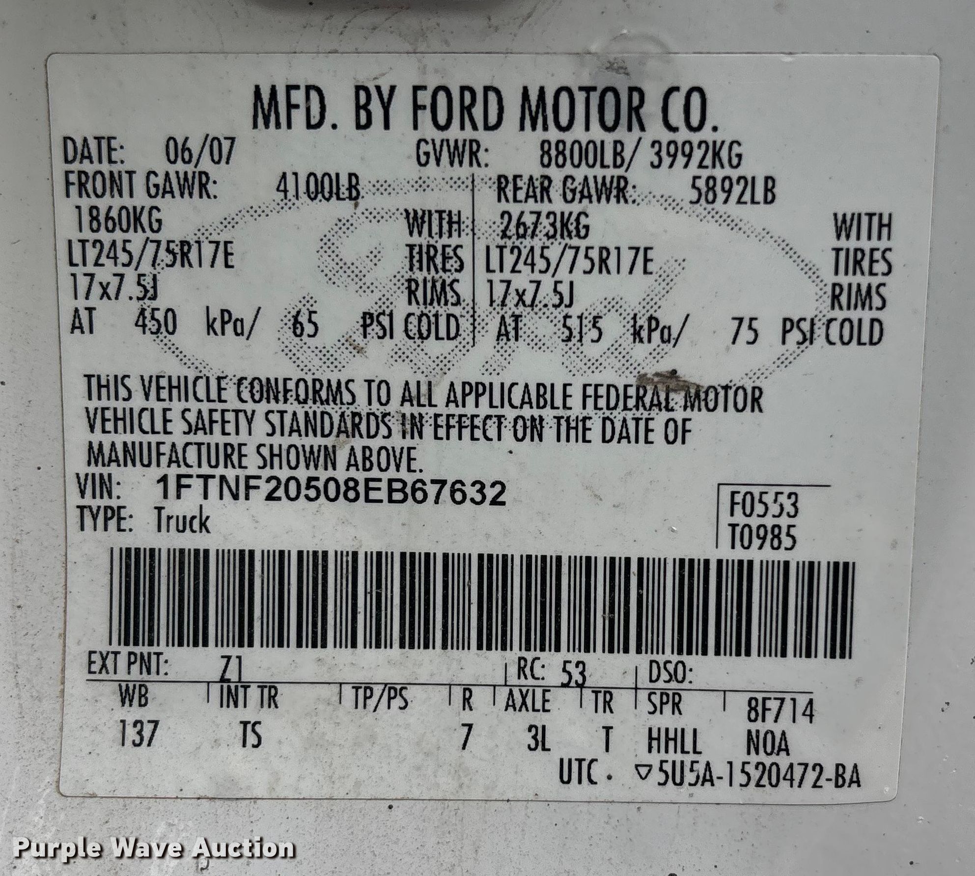 Purple Wave is selling a used 3/4 or 1 Ton Pickup or Van in Kansas. This item is a 2008 Ford F250 Super Duty pickup truck with the following: Miles: 232,642 on odometer, VIN: 1FTNF20508EB67632, KDOT ID: 153-2027