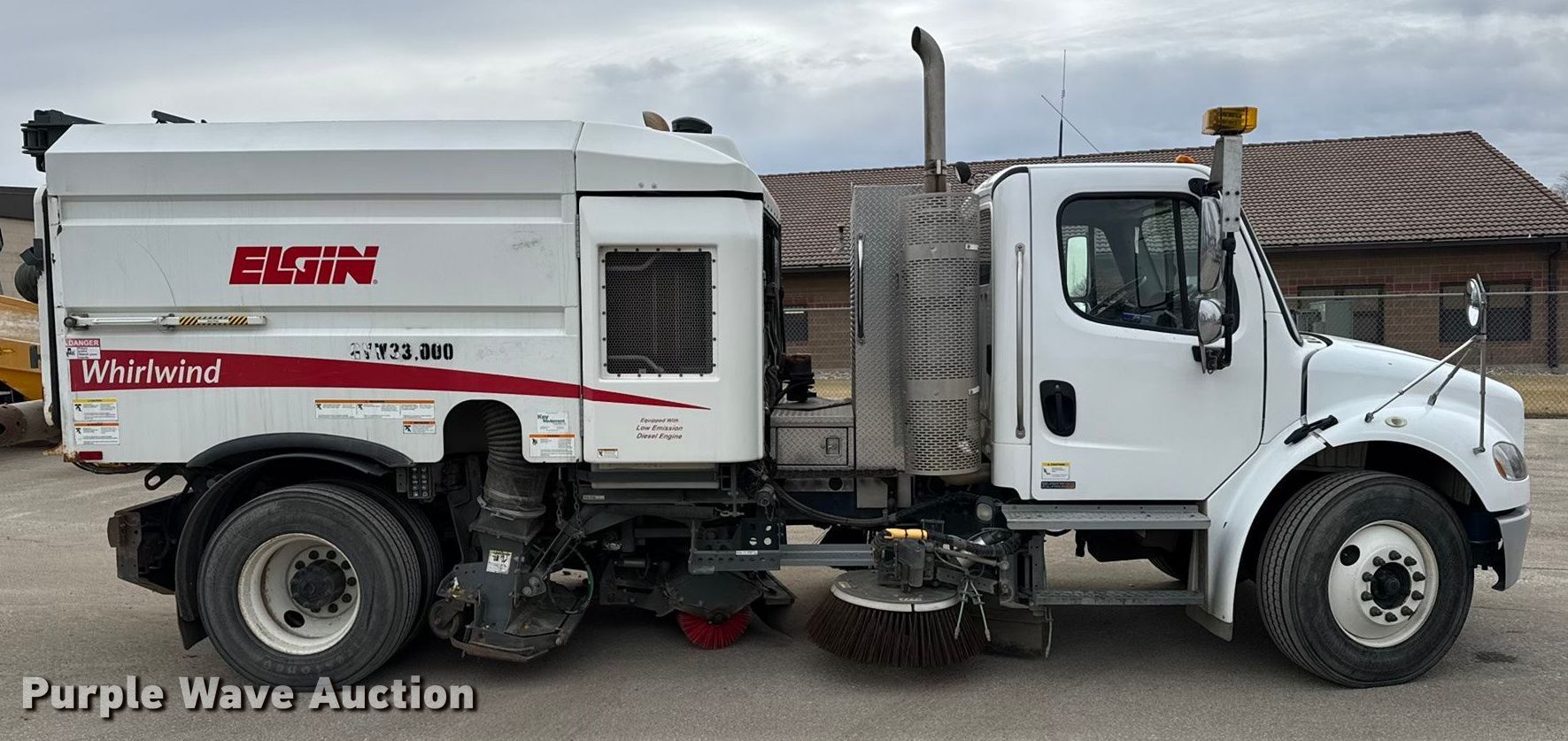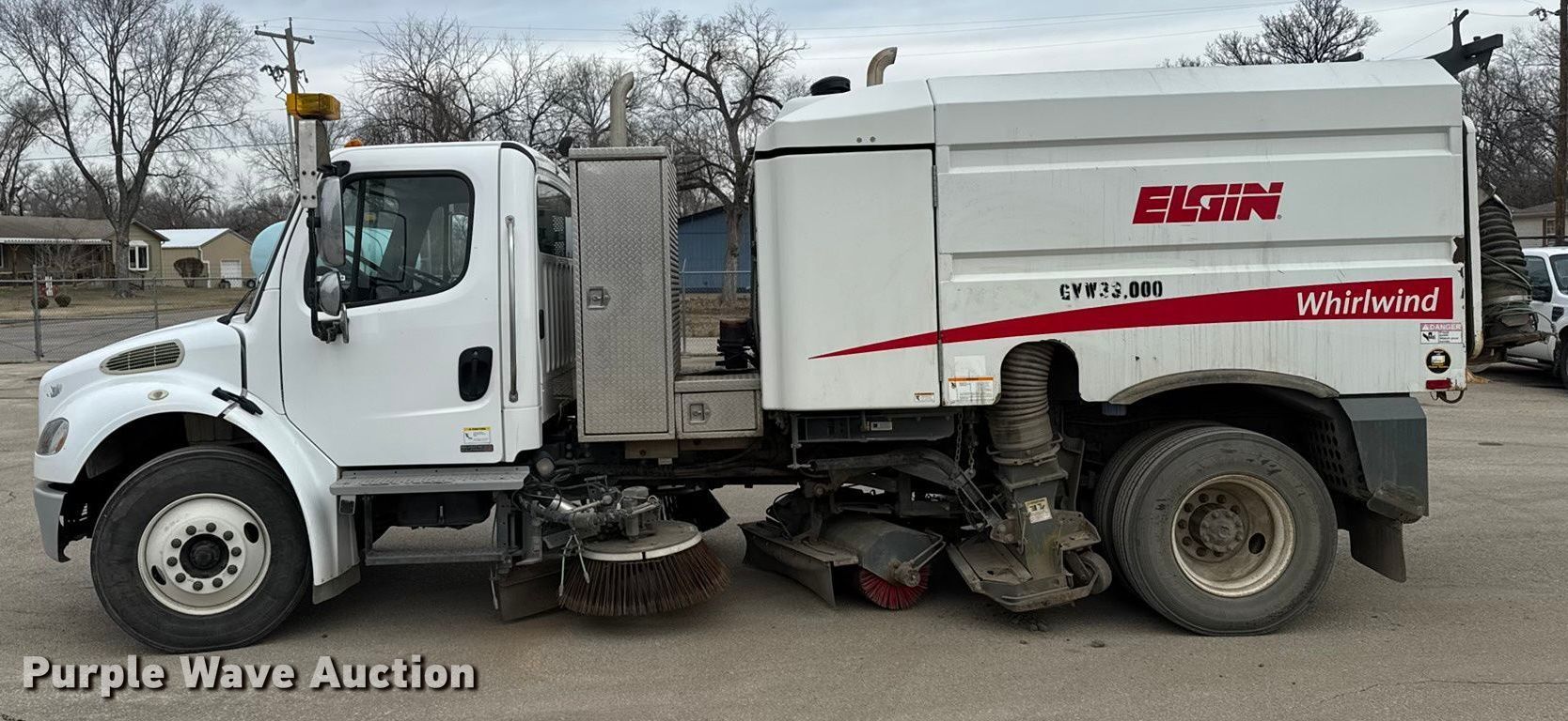 2010 Freightliner M2 street sweeper truck. Miles: 51,397 on odometer, Hours: 2,540 on meter, Hours: 1,407 on second meter, VIN: 1FVACXDT9AHAR2115, Serial: VV3210D, KDOT ID: 688-2019. Engine Cummins ISB, Displacement: 6.7L, Cylinders: 6, Fuel type: Diesel. Transmission Automatic. Chassis Suspension: Air, Brakes: Hydraulic, GVWR: 33,000 lbs. Operators station AC, Heat, Dual operating station, Video monitoring system. Features Bed Sweeper bed, Elgin Whirlwind, Serial: VV3210D, Sweeper bed type: Vacuum, Broom Width: 60", Left gutter broom Diameter: 32", Right gutter broom Diameter: 32", Water spray system, Auto lube, Engine Cylinders: 4. Tires Size: 295/75R22.5. Notes Batteries need replaced, Non-operational center broom. Titles will be distributed after confirmation of payment and removal. Kansas title. Title distribution may be delayed up to 30 days from verification of funds. Kansas Department of Transportation. Salina, KS 67401