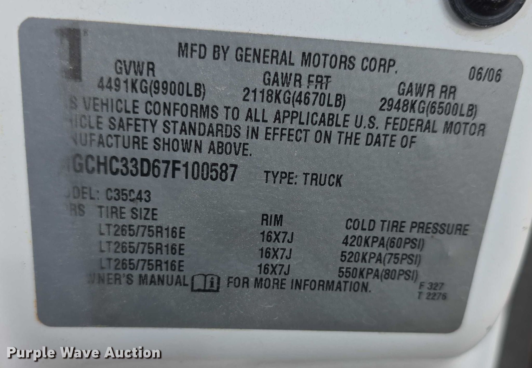 Purple Wave is selling a used 3/4 or 1 Ton Pickup or Van in Kansas. This item is a 2007 Chevrolet Silverado 3500 Crew Cab pickup truck with the following: Miles: 284,224 on odometer, VIN: 1GCHC33D67F100587, KDOT ID: 162-1017