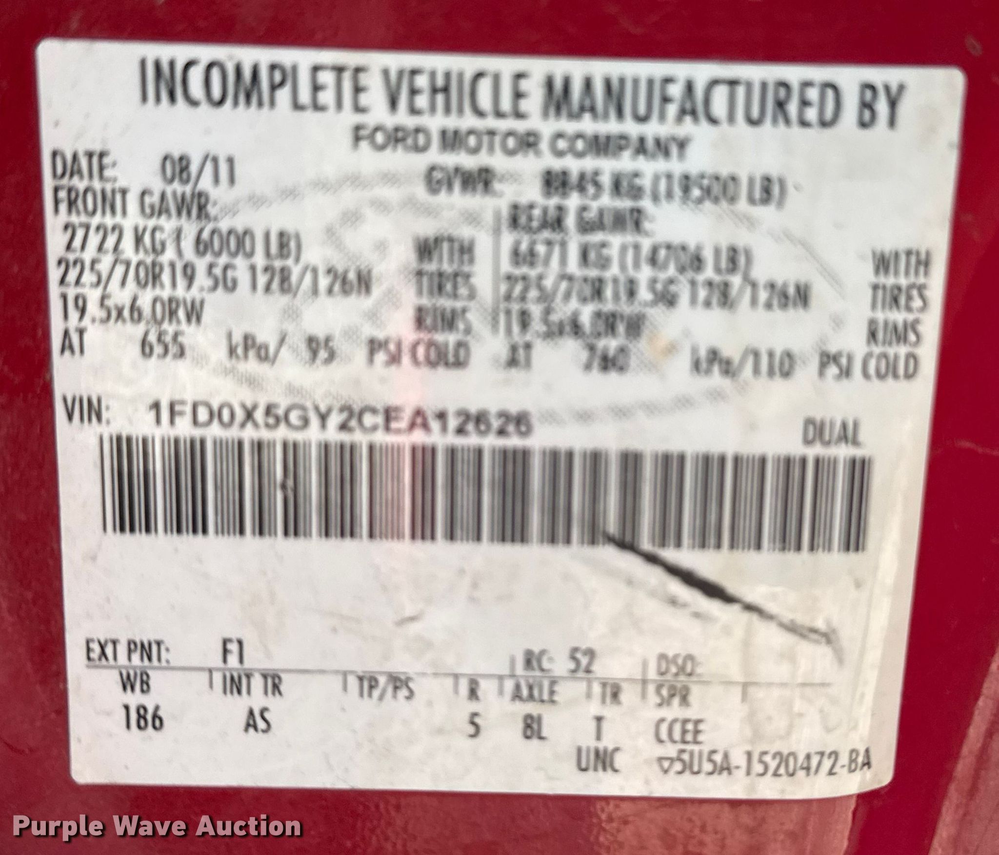 - VIN: 1FD0X5GY2CEA12626