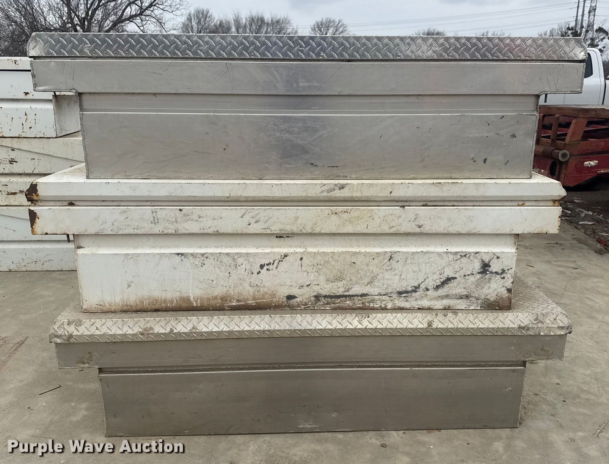 Purple Wave is selling a used Automotive Parts or Acces. in Oklahoma. This item is a (6) toolboxes with the following: 80" L x 27" W x 18" H