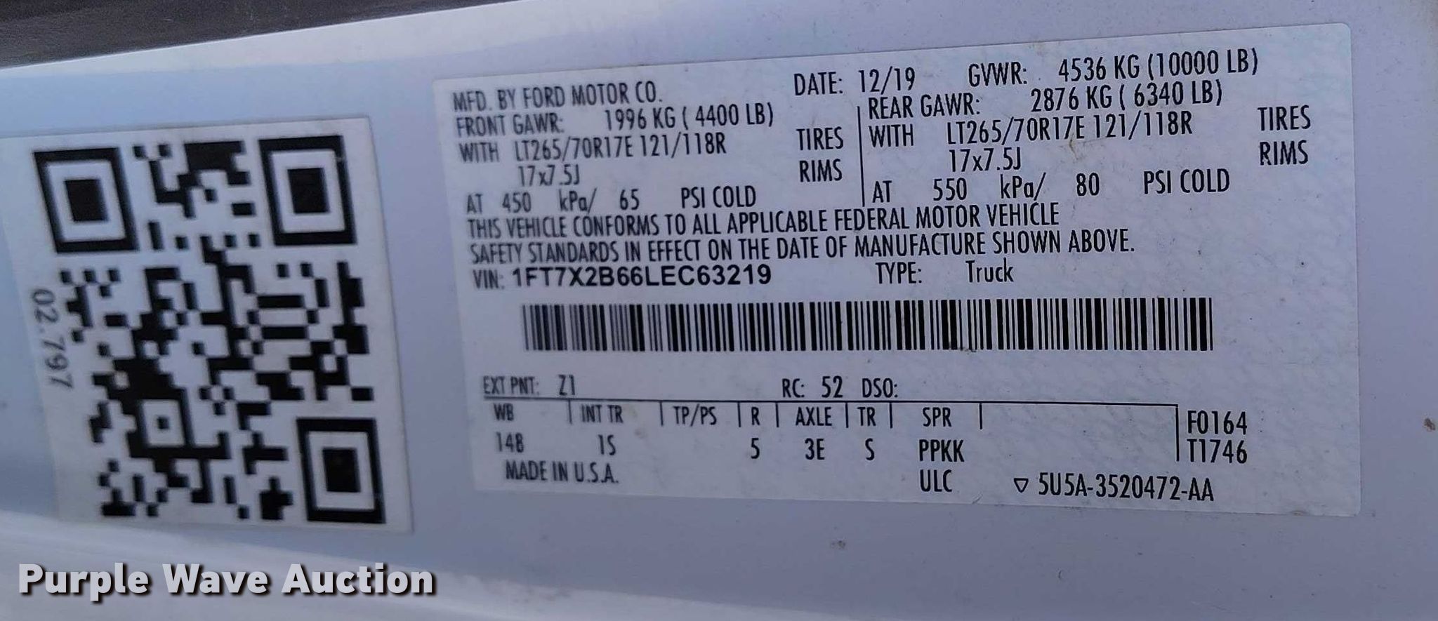 Purple Wave is selling a used 3/4 or 1 Ton Pickup or Van in Colorado. This item is a 2020 Ford F250 Super Duty Ext. Cab pickup truck with the following: Miles: 145,722 on odometer, Hours: 7,497 on meter, VIN: 1FT7X2B66LEC63219, Unit #: 2.797