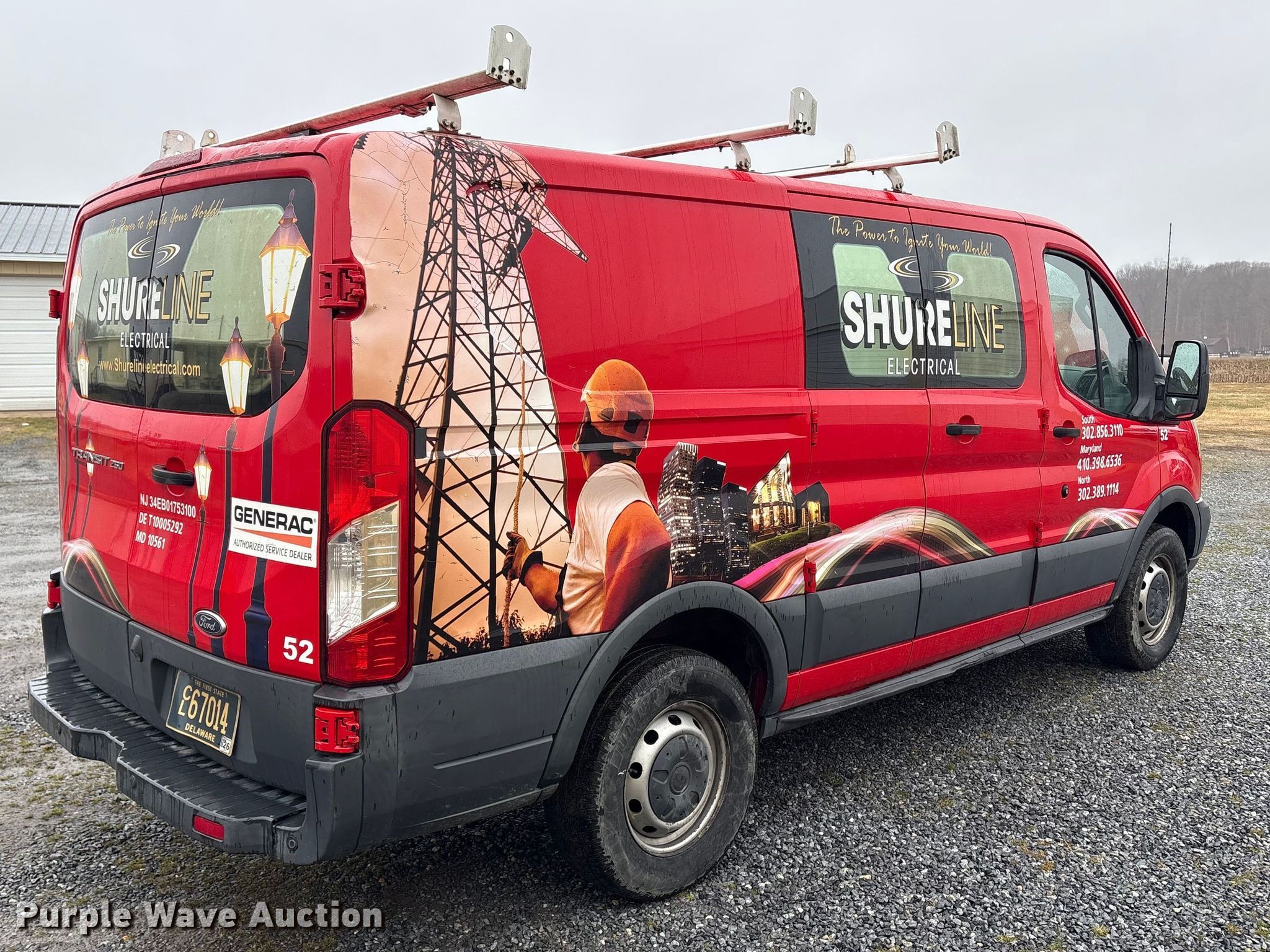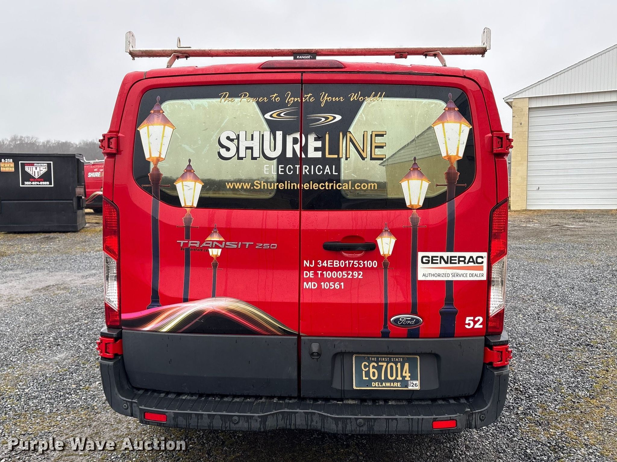 2016 Ford Transit 250 van. Miles: 253,498 on odometer, VIN: 1FTYR1ZMXGKA28049. Engine Displacement: 3.7L, Cylinders: 6, Fuel type: Gas. Transmission Automatic. Interior AC, Heat, Power windows, Power locks, Backup camera. Tires Size: 235/65R16. Notes Dash warning indicator: TPMS, Airbag, Windshield chipped or cracked, Possible oil leak. Delaware title. Title distribution may be delayed up to 14 days from verification of funds. Shure Line Electric. Dover, DE 19904