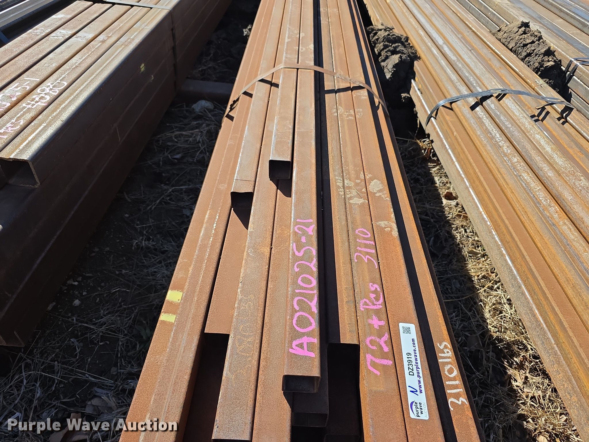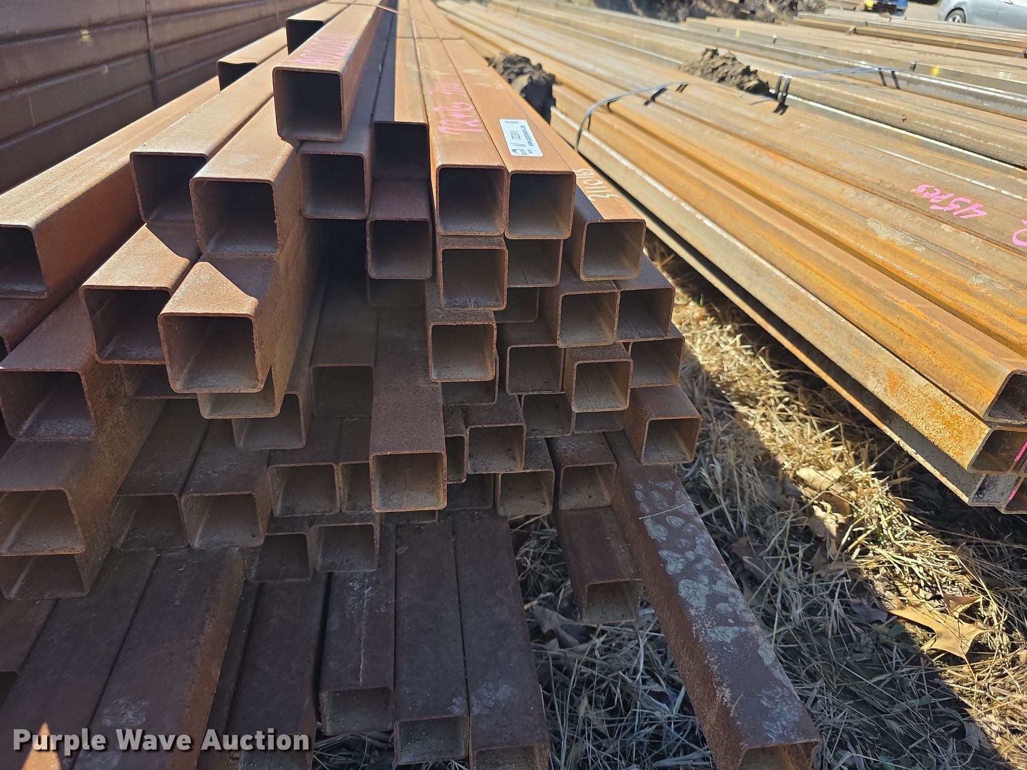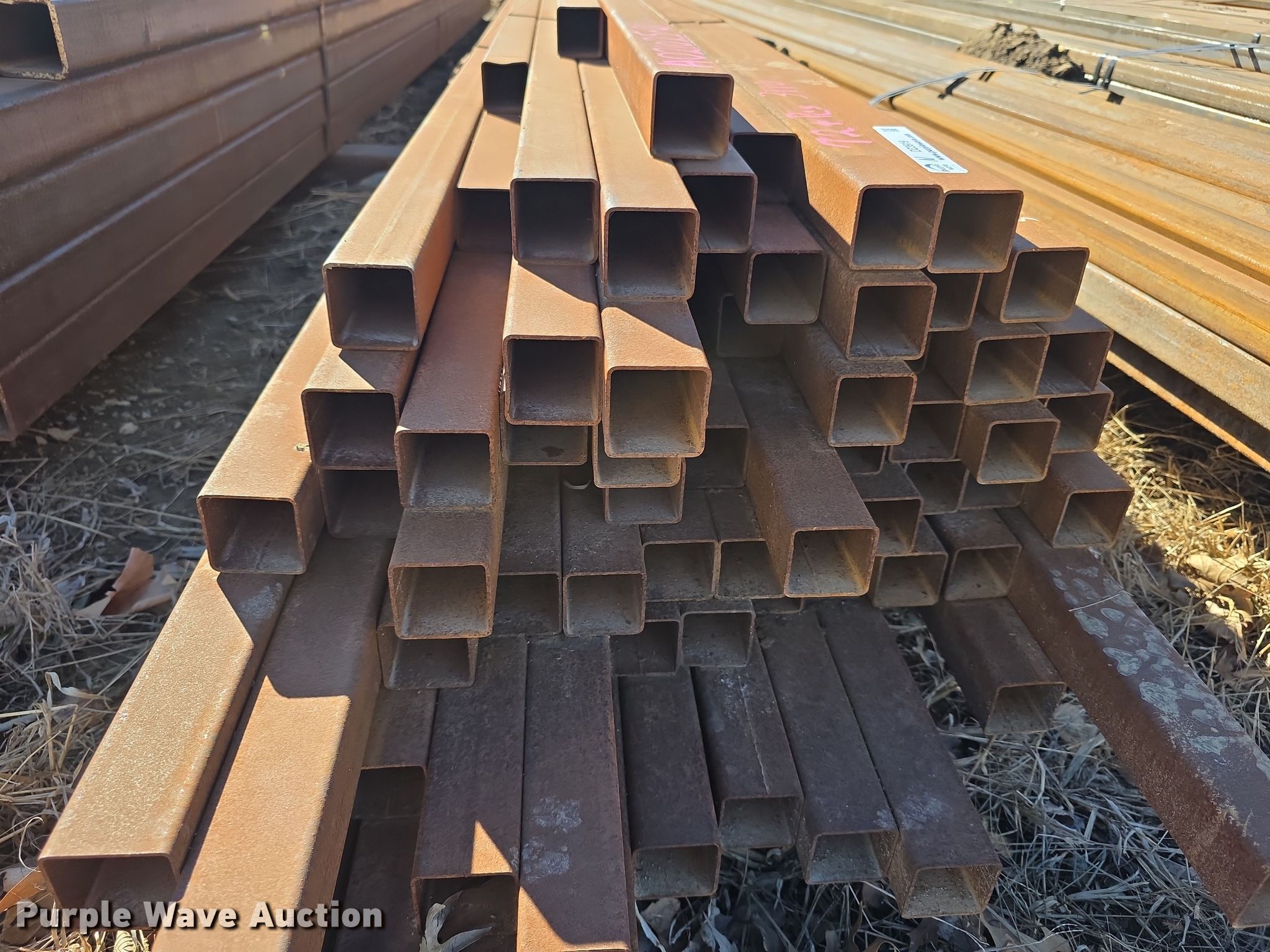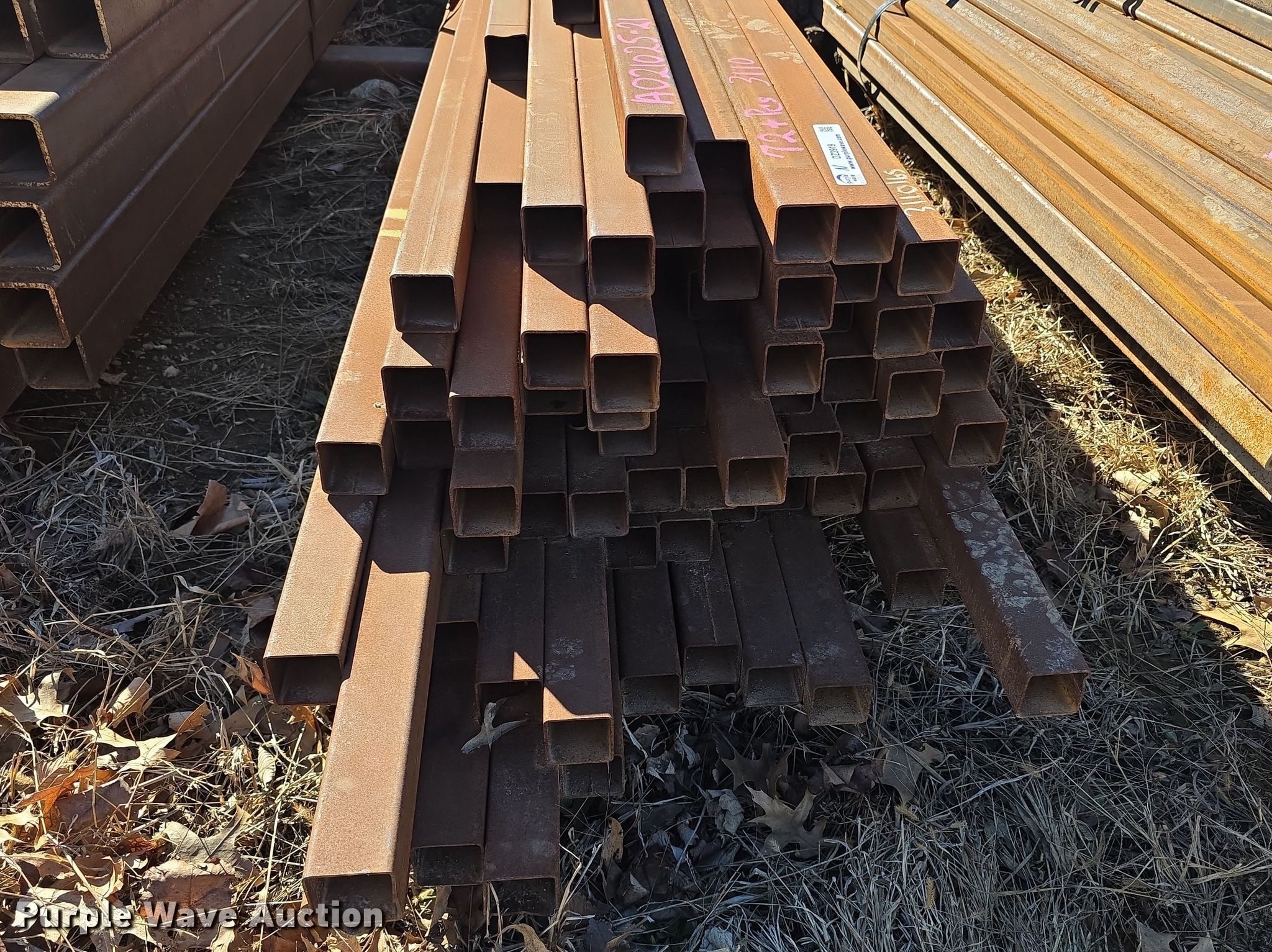 Purple Wave is selling a used Building Materials in Kansas. This item is a Approximately 72 pieces of tubing with the following: Dimensions: 2" x 2", Gauge: 11, Weight: 3,110 lbs, Serial: A021025-21, Unit #: N