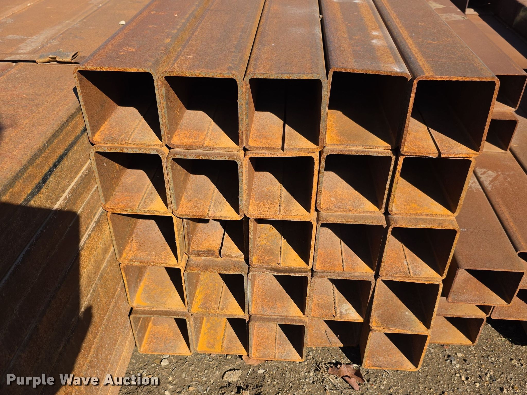 Purple Wave is selling a used Building Materials in Kansas. This item is a Tubing with the following: Dimensions, 4" x 4", Thickness, 3/16", 1/4",, Length: Approx. 25', Weight: 5,400 lbs, Serial: 100324-18, Unit #: R
