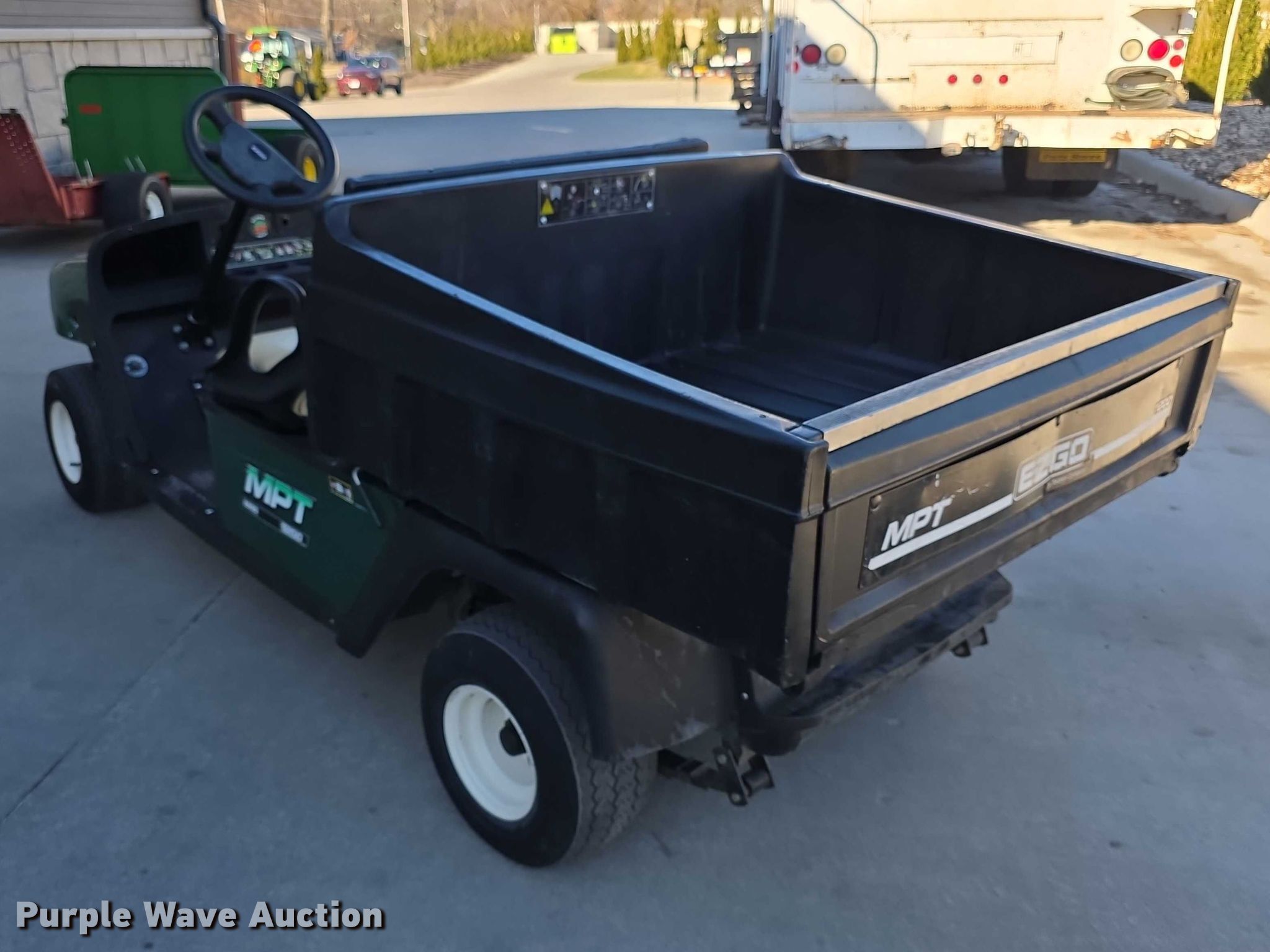 2004 EZ GO MPT 1200 golf cart. Serial: 2207027. Engine Robin, Serial: 1003637, Cylinders: 2, Fuel type: Gas. Transmission Hydrostatic. Features Dump bed 36" L x 43" W, Dump bed type: Manual. Tires Size: 18x8 50-8. Notes Ignition switch missing. Transfer of ownership documentation will be a bill of sale. Milburn Country Club. Overland Park, KS 66204