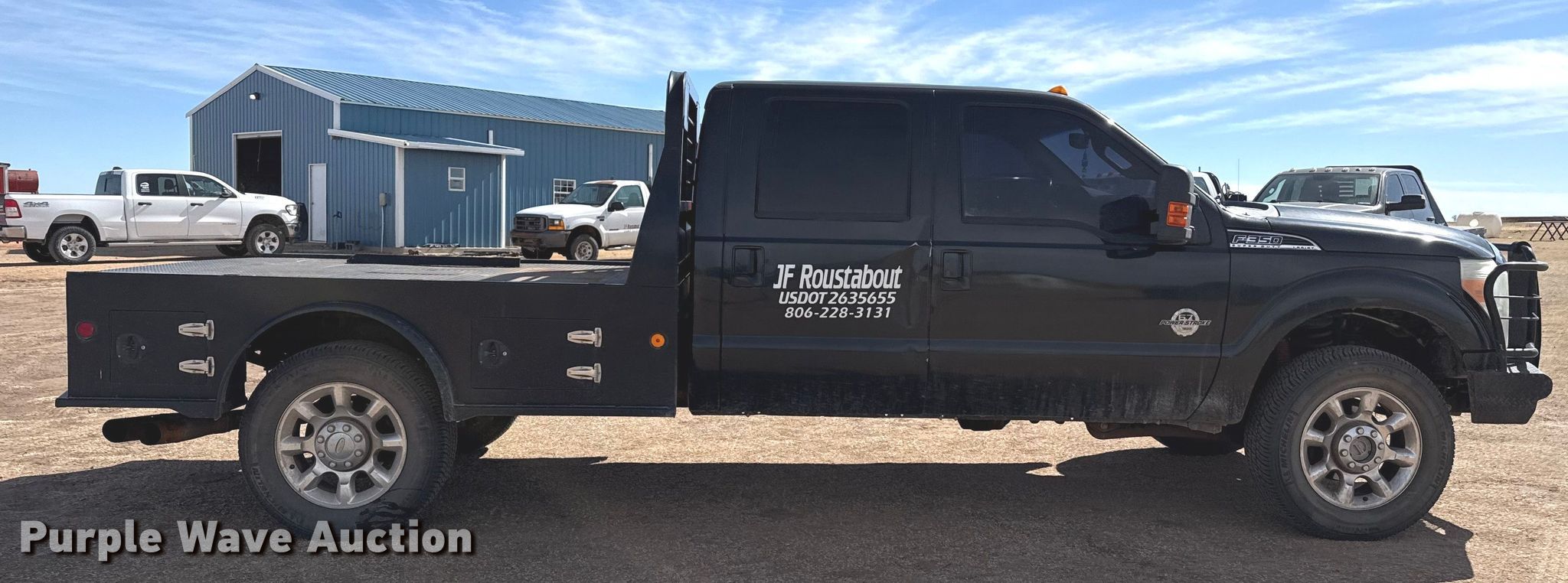2012 Ford F350 Super Duty Crew Cab flatbed pickup truck. Miles: 278,635 on odometer, VIN: 1FT8W3BT8CEB30304. Engine Displacement: 6.7L, Cylinders: 8, Fuel type: Diesel. Transmission Automatic, Four wheel drive. Interior AC, Heat, Seat: Power driver, Power windows, Power locks, Cruise control. Features Bed Flatbed, Length: 8' 4", Width: 80", Hitch: Gooseneck. Tires Size: 275/65R20. Notes Dash warning indicator: Check engine, TPMS, ABS, Traction control, DPF deleted, DEF deleted, EGR deleted. Oklahoma title. Title distribution may be delayed up to 14 days from verification of funds. JF Roustabout Services. Beaver, OK 73932