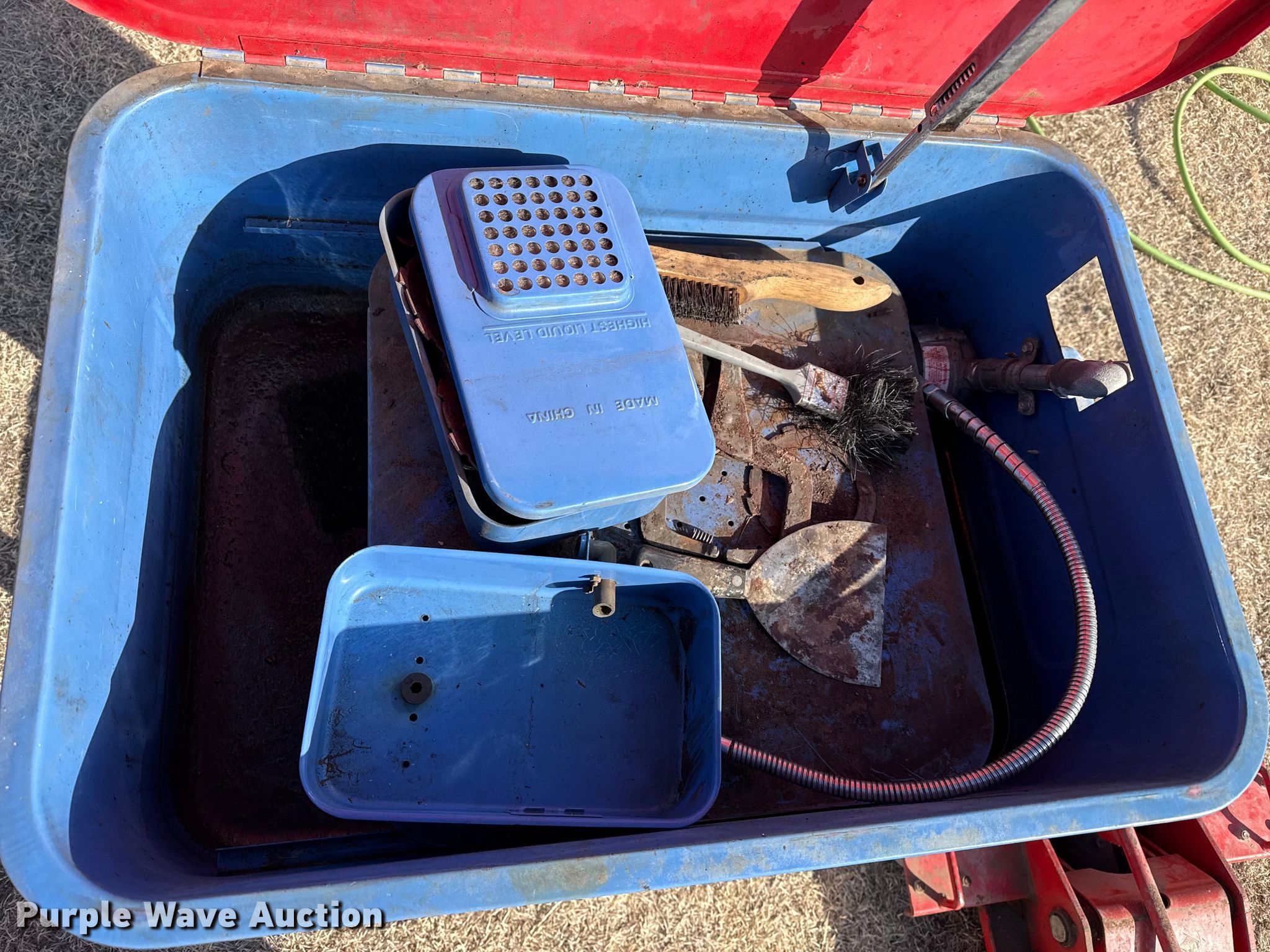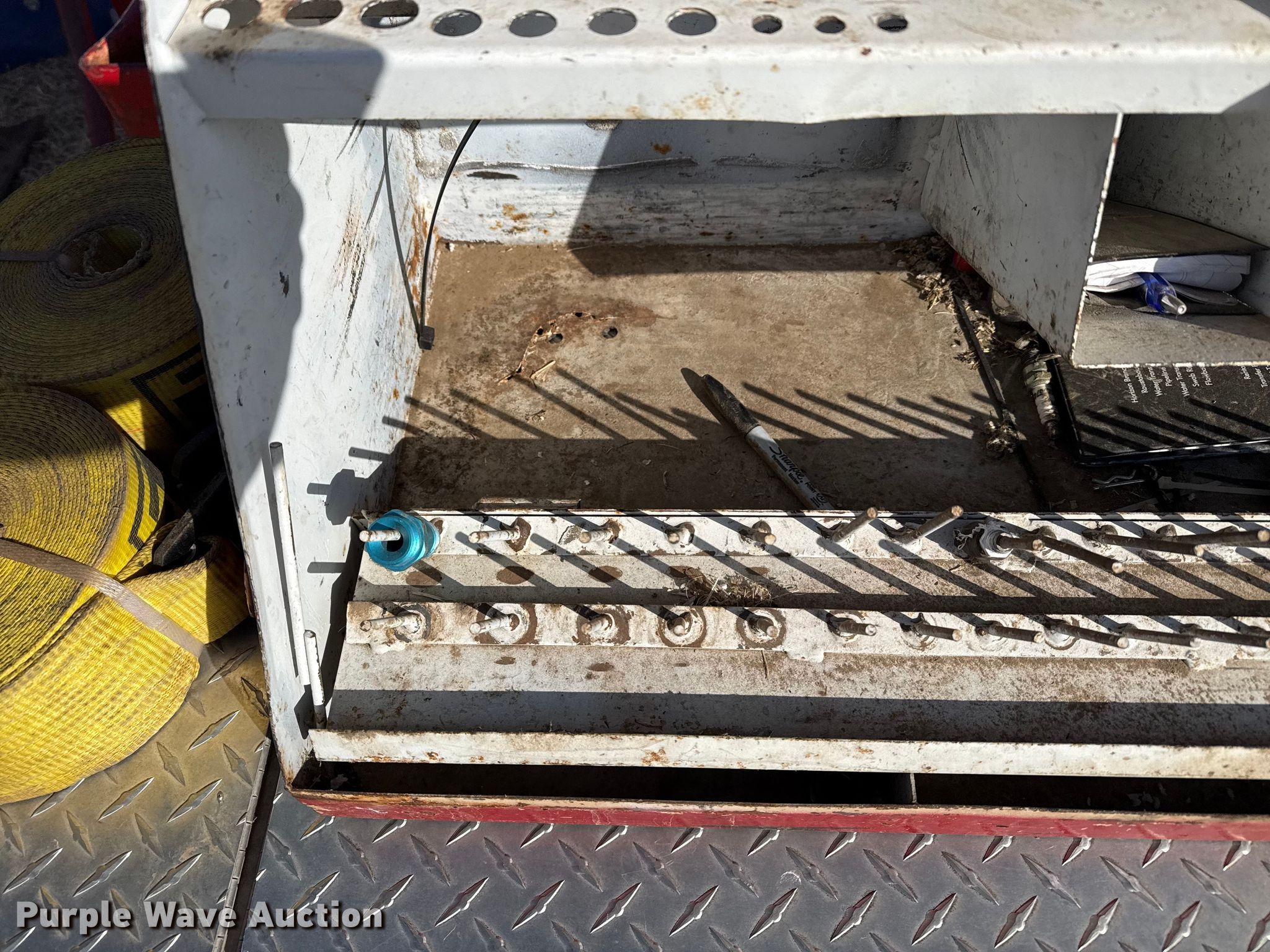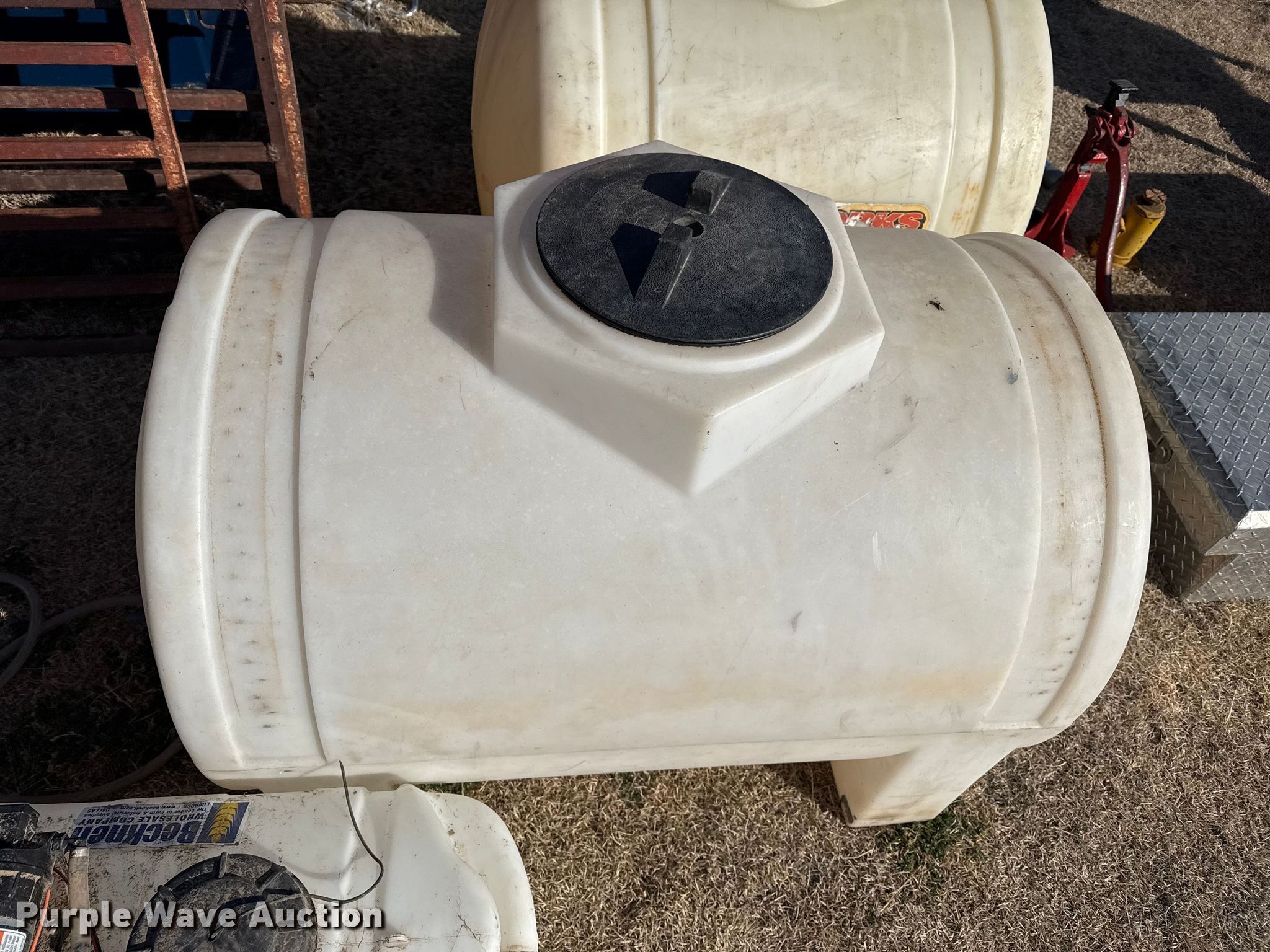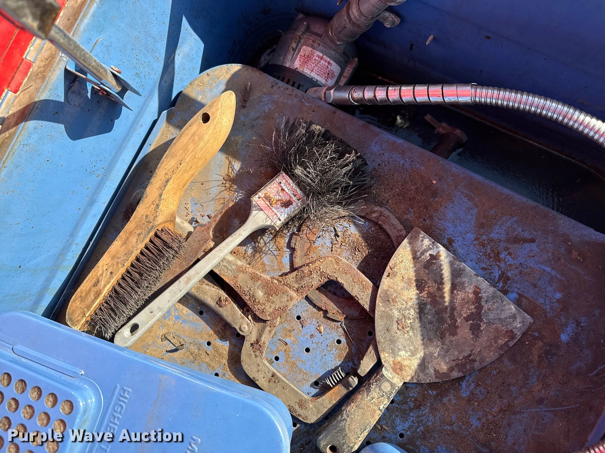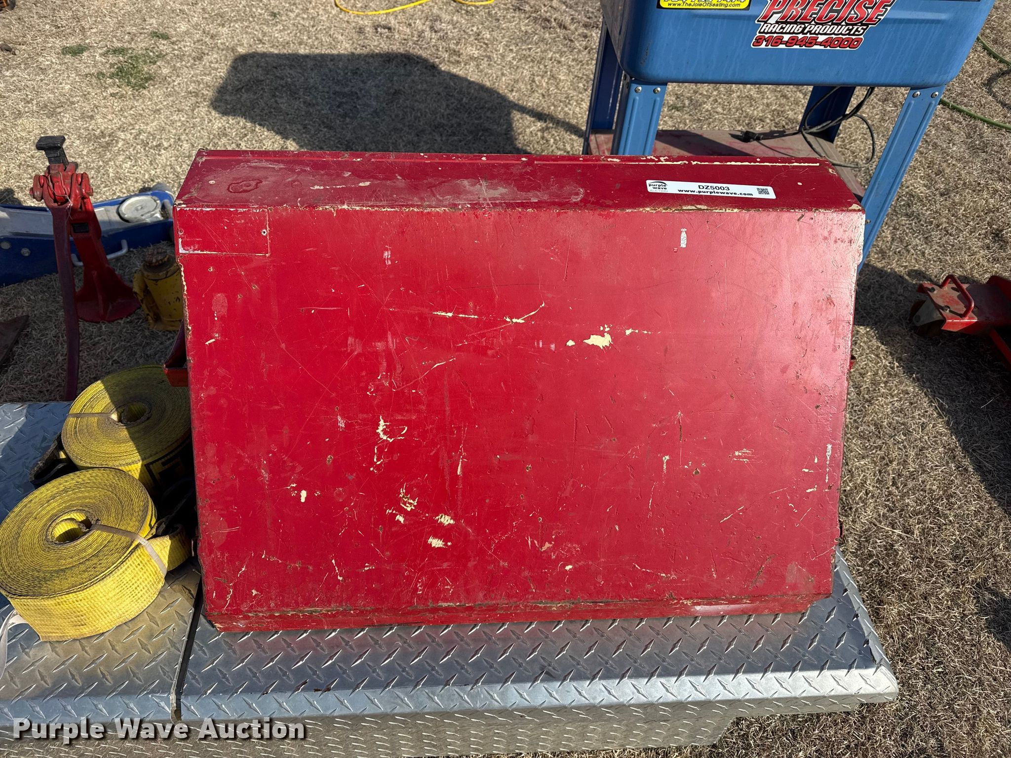 Purple Wave is selling a used Tools in Kansas. This item is a Tools with the following: Transmission jack, Bottle jack, Floor jack, Toolboxes, Tanks, Sprayer, Jack stand, Receiver hitches, Table saw, Lube pumps