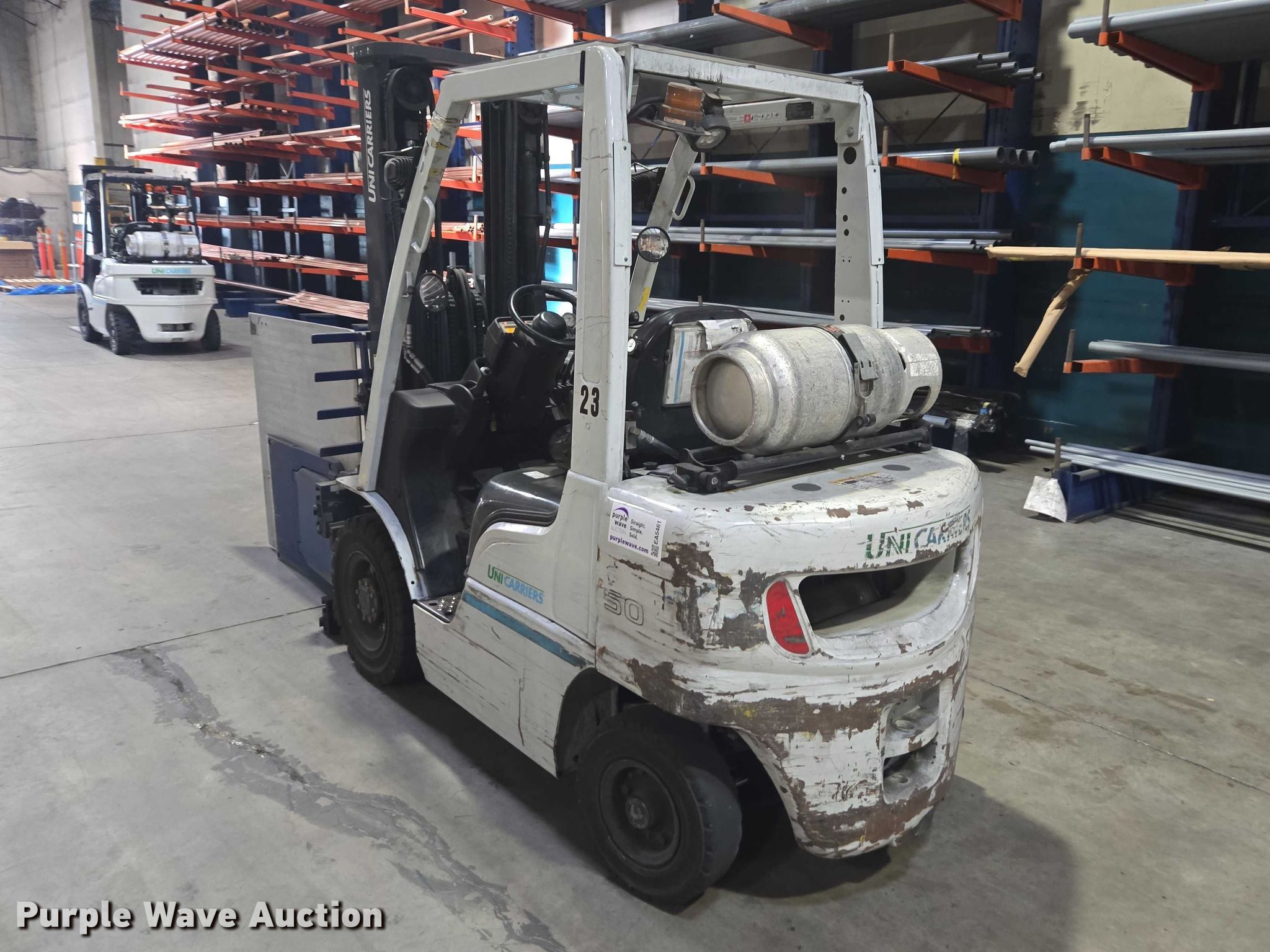 Take a look at this used 2017 UniCarriers PF50 forklift being sold on March 25th, 2026 in the Wednesday March 25 Vehicles and Equipment Auction made by UniCarriers. Take a look at all of the item information below or take a look at similar auctions for Cushion Tire or Pneumatic Forklift.